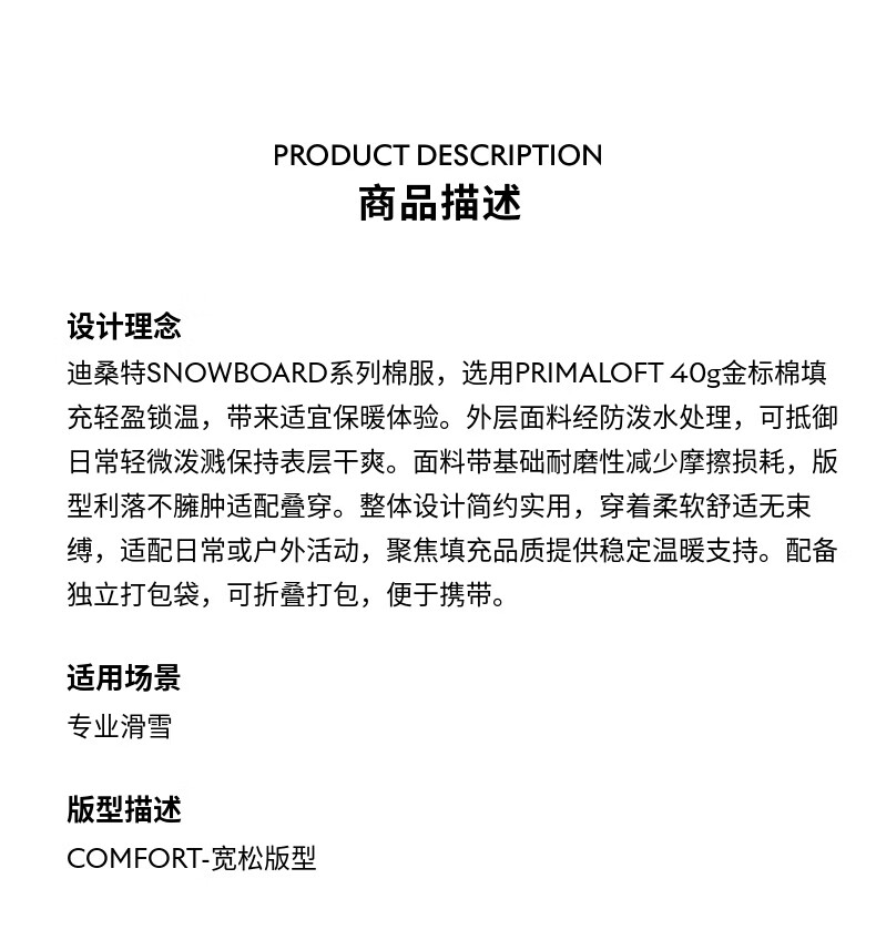 DESCENTE Desante SNOWBOARD series of cotton-padded clothes for men and women BK-black L (175/96A)