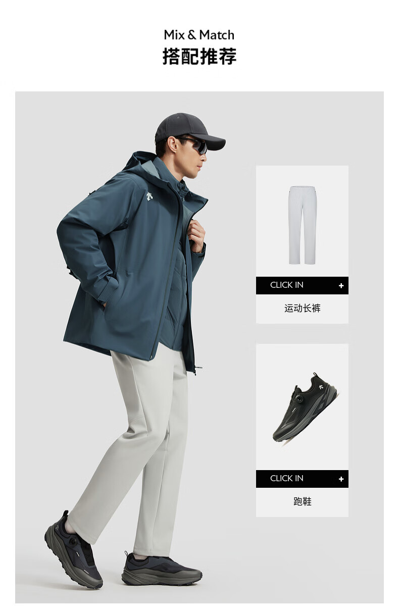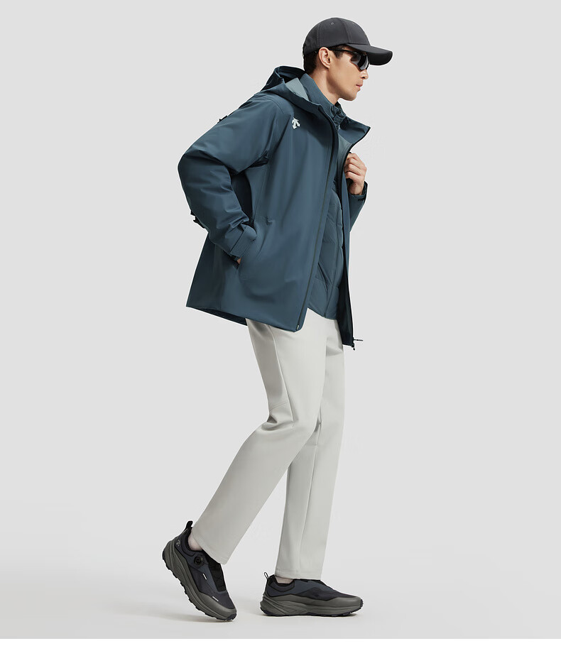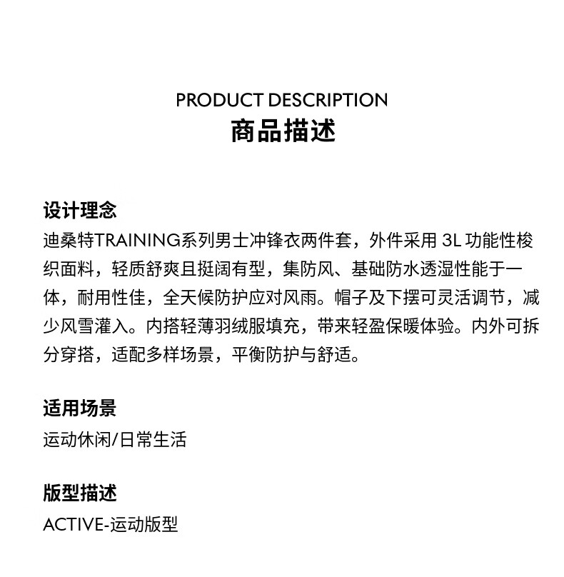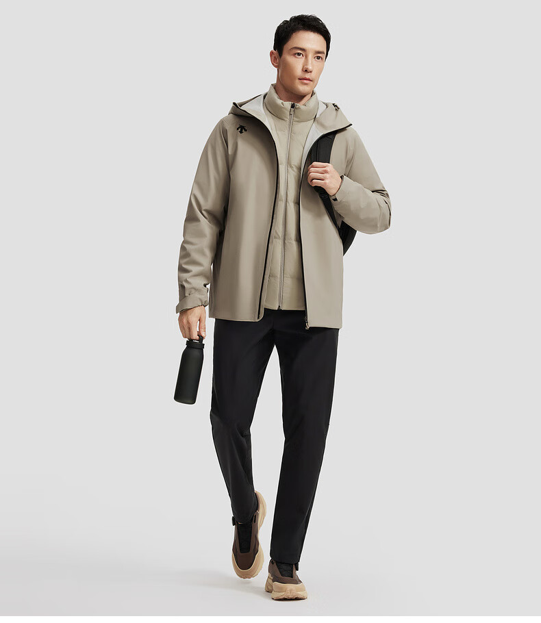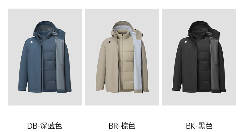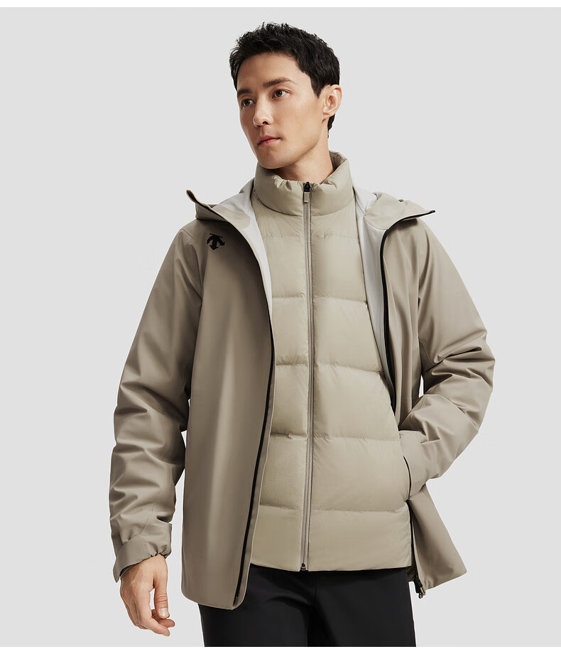 迪桑特(DESCENTE)迪桑特综训训练运动健身男士羽绒内胆三合一冲锋衣两件套 BR-棕色 L (175/96A)