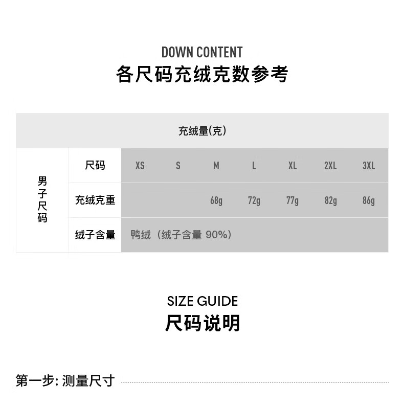 China (cm) 165 / 88-90 170 / 96-98 175 / 108-110 180 / 118-122 185 / 126-130