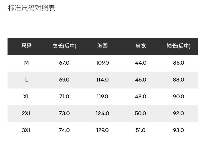 China (cm) 160-165/84-86 165-170 / 88-90 167-172 / 92-96 168-173 / 98-102 170-176 / 106-110