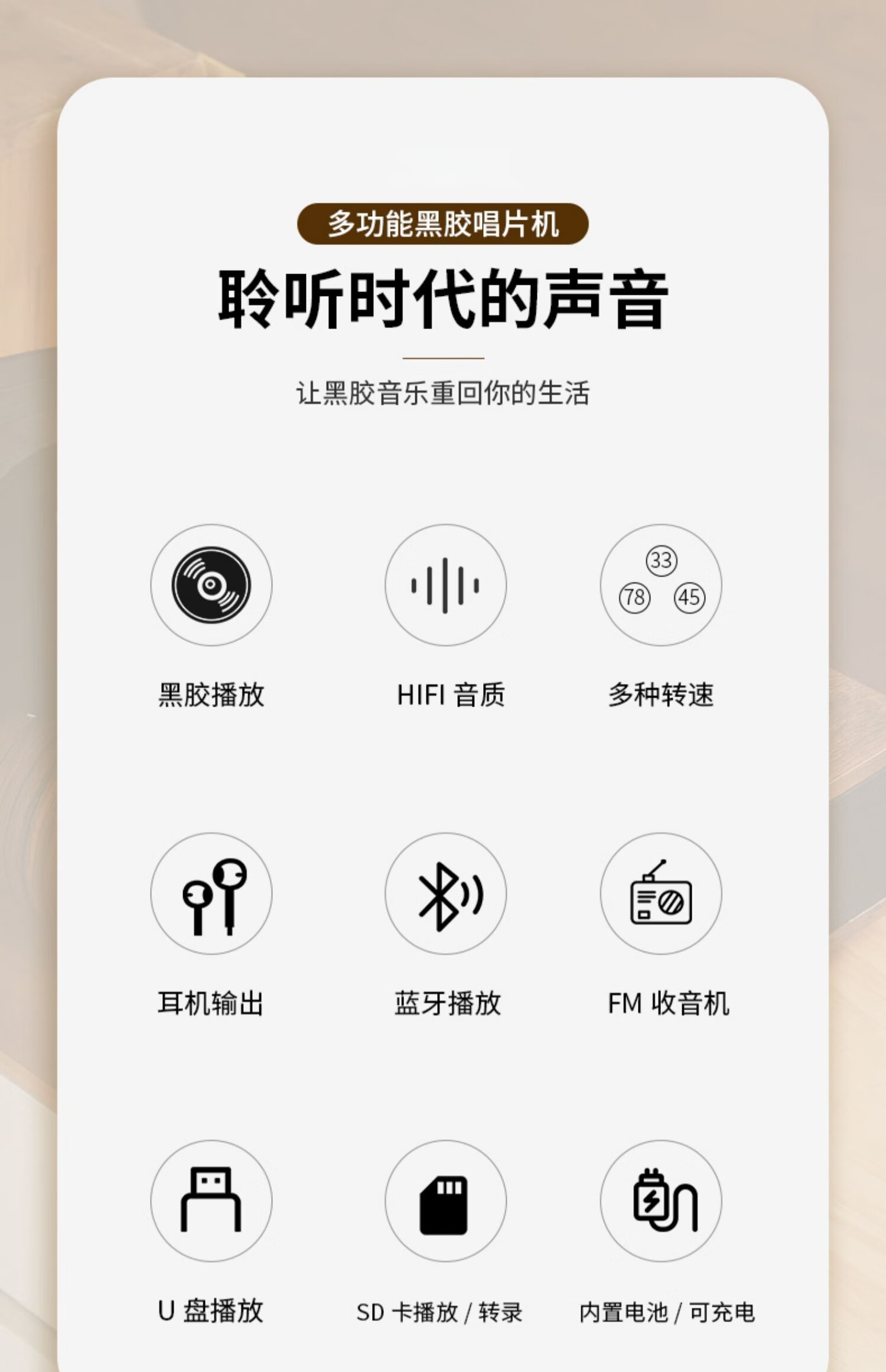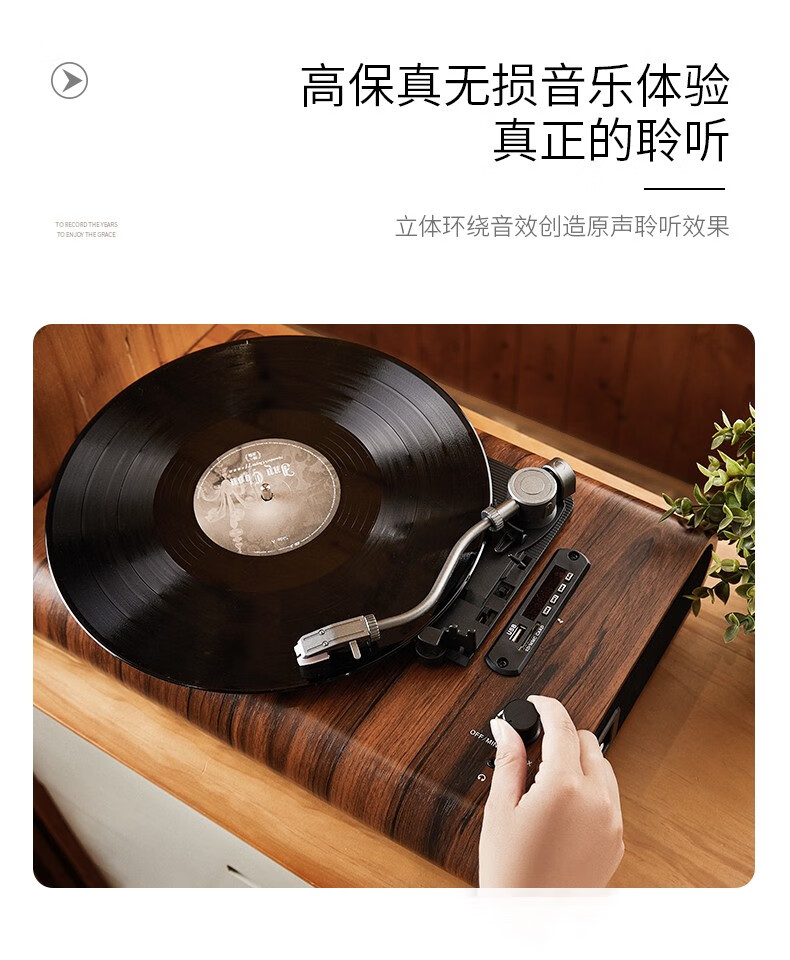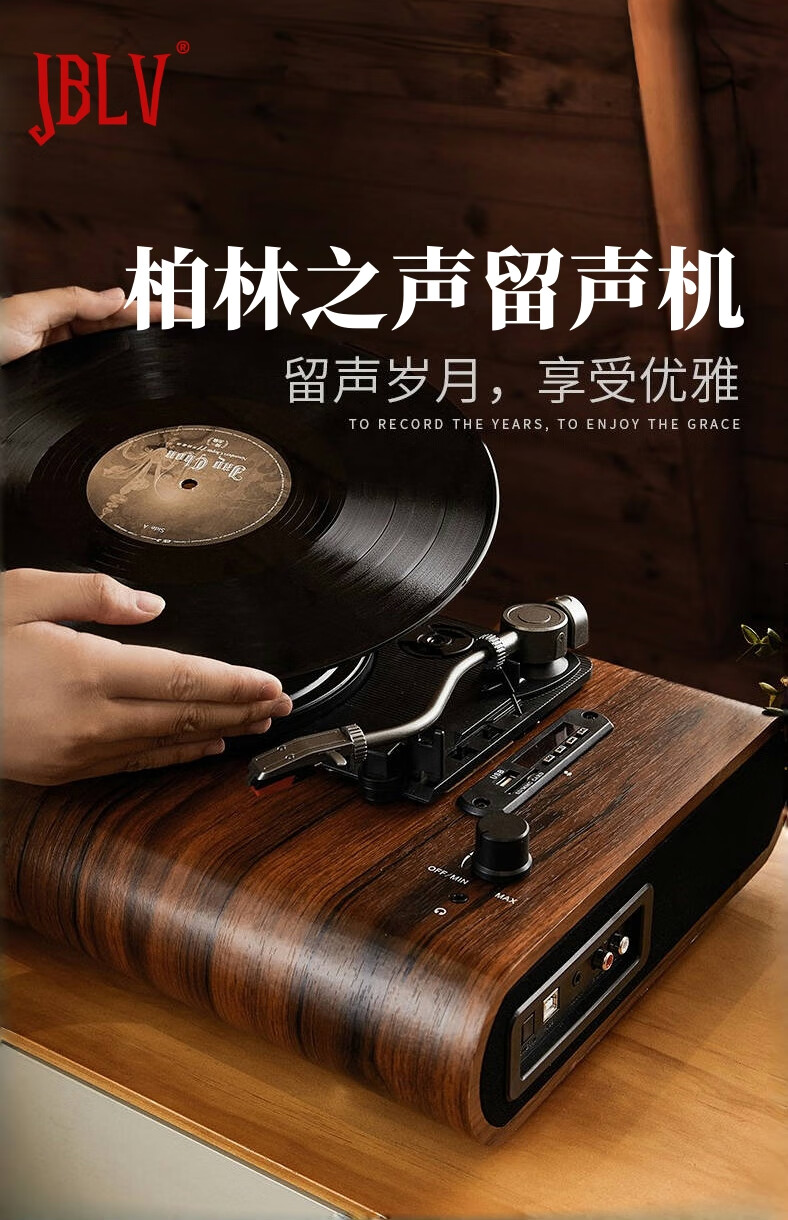 JBLV Sound of Berlin high-end gramophone retro Bluetooth wired connection vinyl record player all-in-one audio built-in battery living room ornaments birthday gift for boyfriend and girlfriend best friend wood color SF/2-year warranty