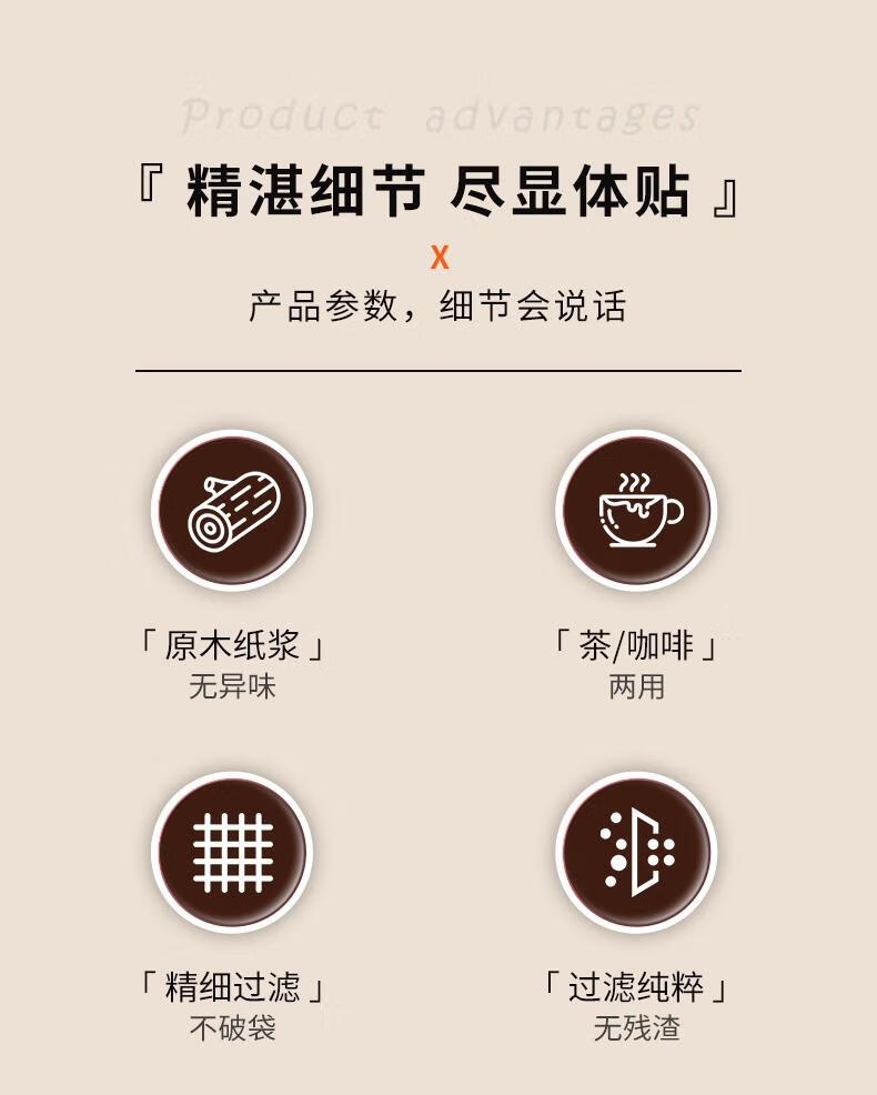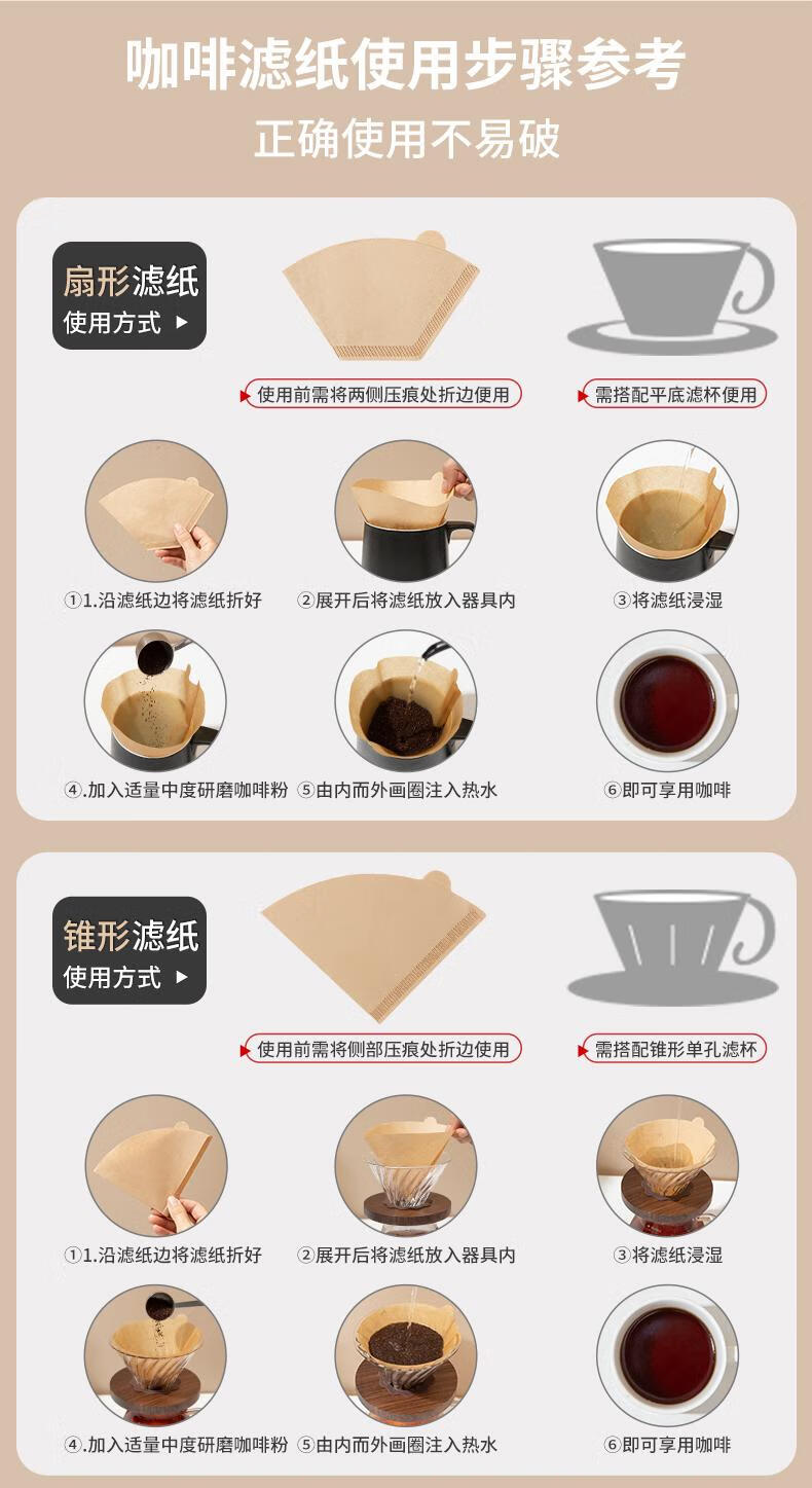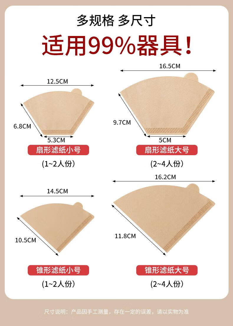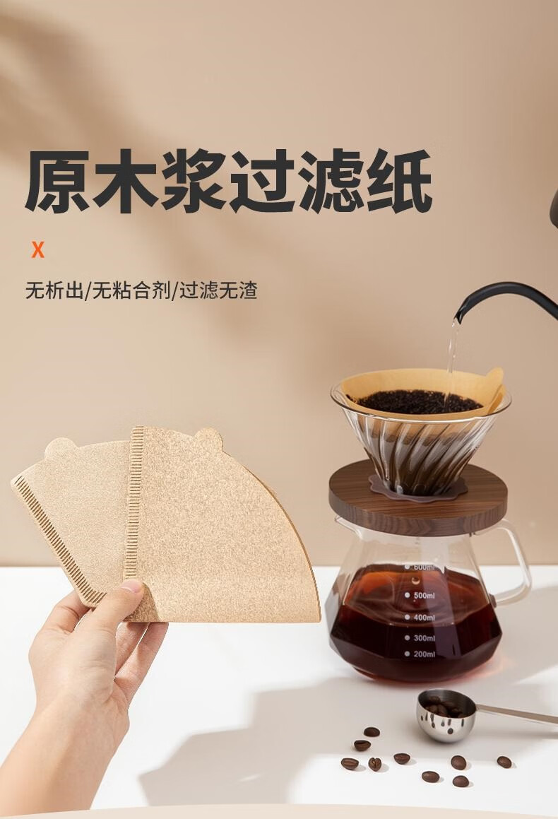 Food grade coffee filter paper American coffee machine fan-shaped conical log filter paper hand-drew drip filter paper 101 natural color V-shaped 100 pieces/pack 1-2 people no Specifications