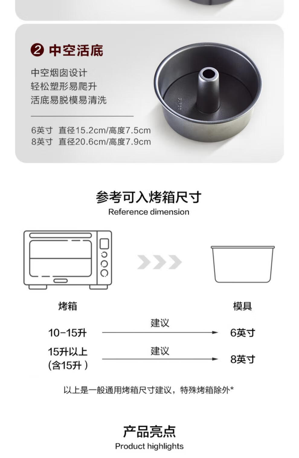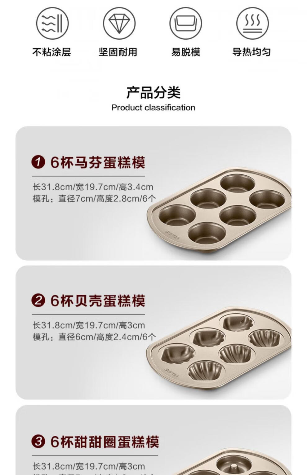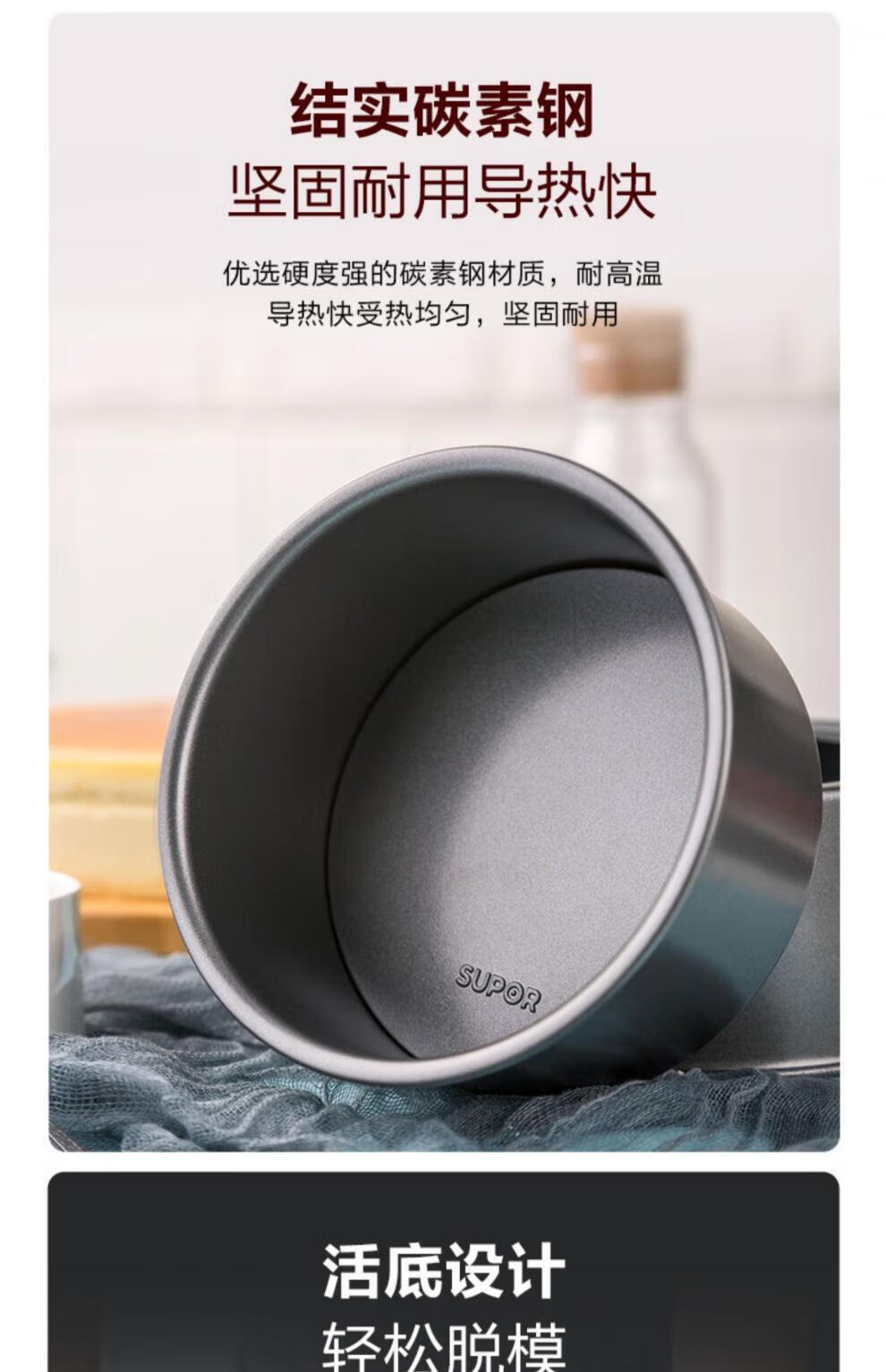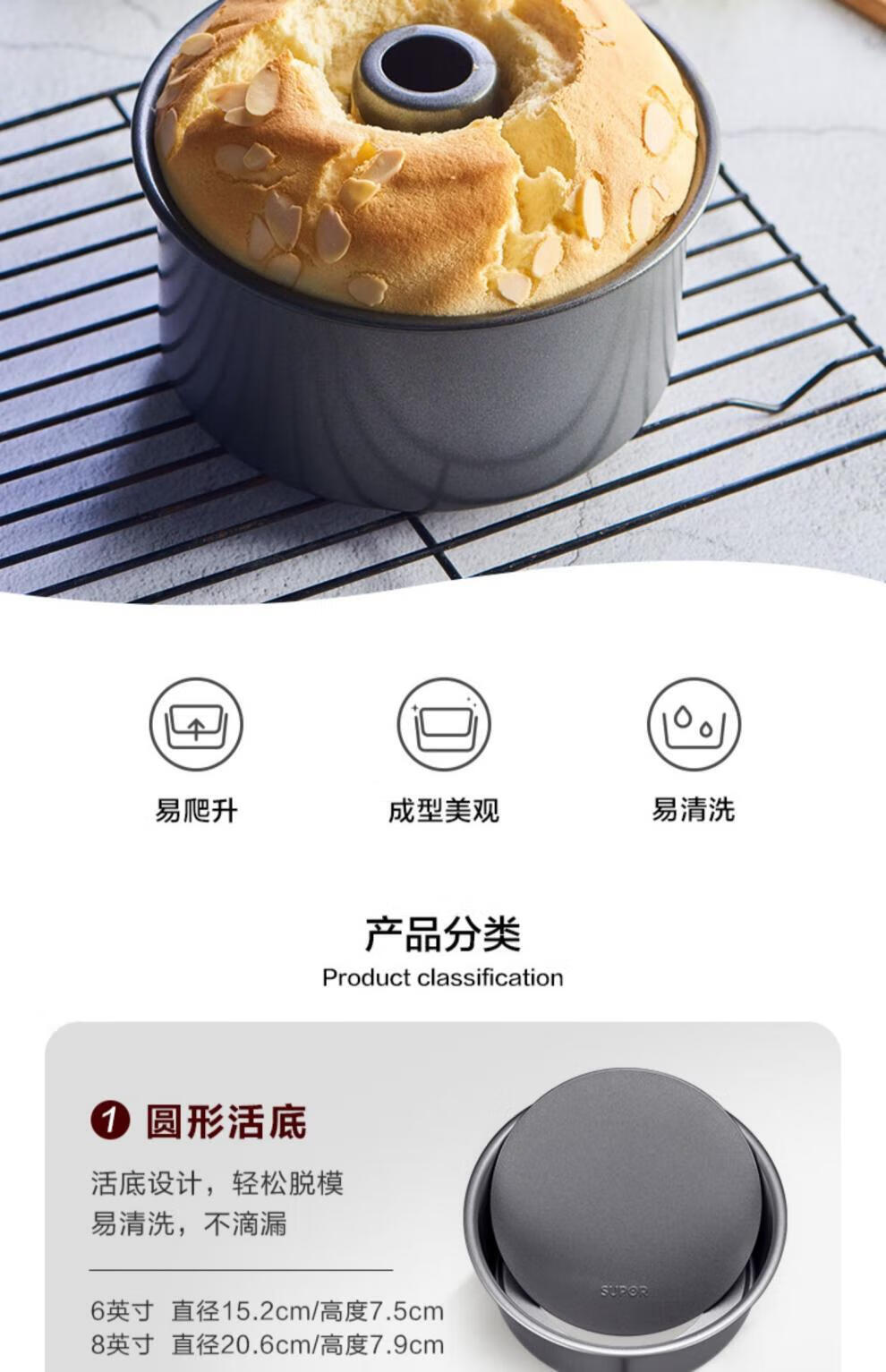 SUPOR cake mold 6-inch baking tool household 86-inch chiffon cake pan live-bottom bread mold 6-inch live-bottom cake mold (champagne gold)
