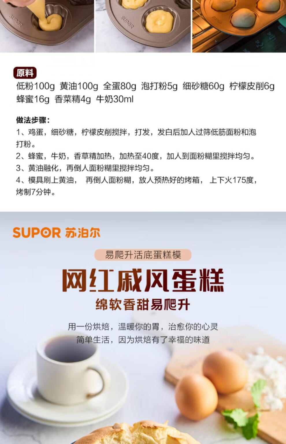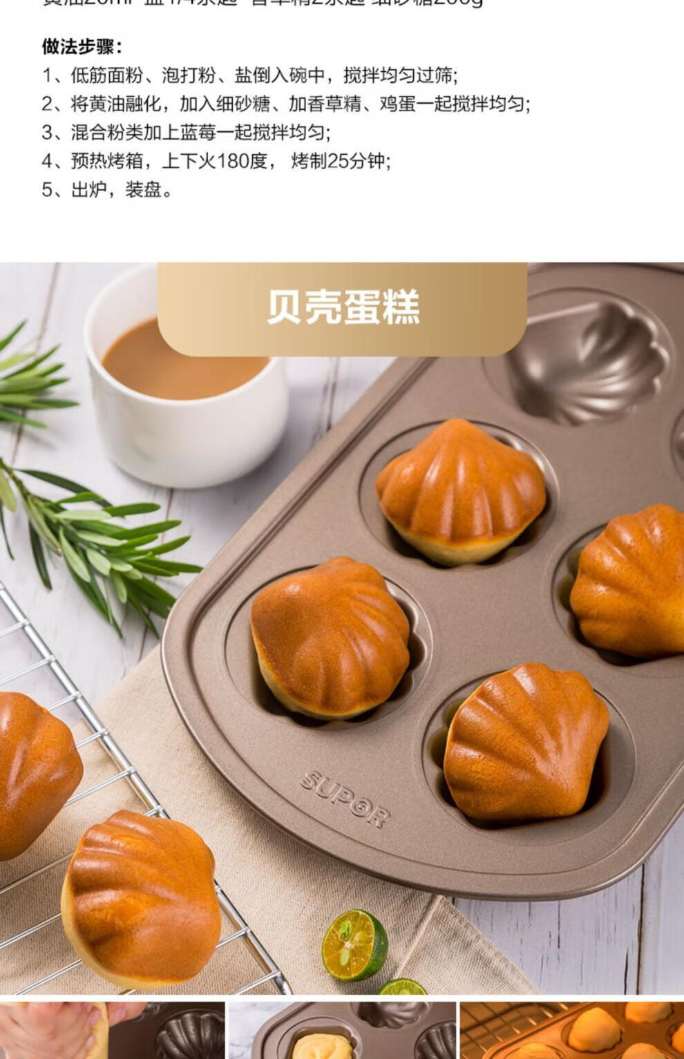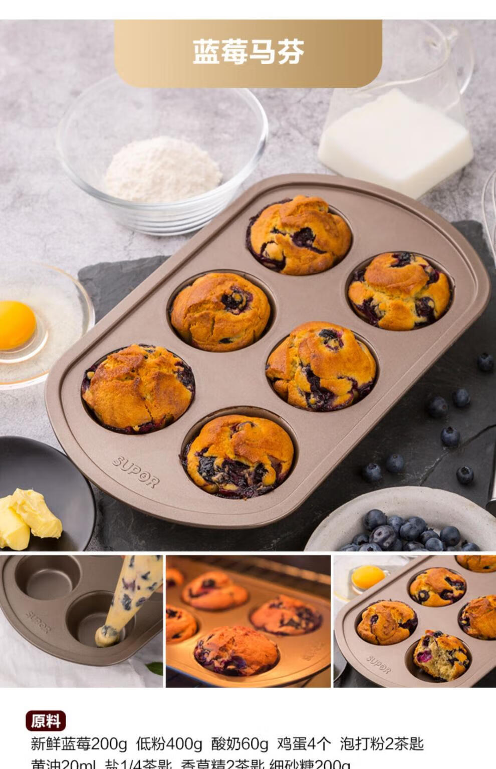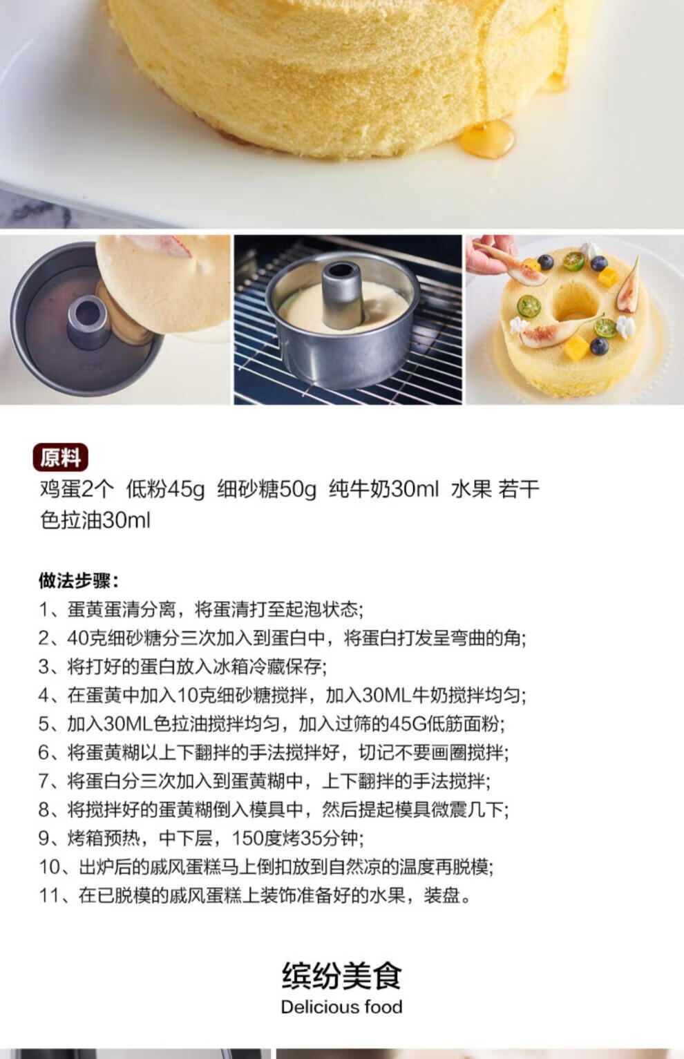 SUPOR cake mold 6-inch baking tool household 86-inch chiffon cake pan live-bottom bread mold 6-inch live-bottom cake mold (champagne gold)