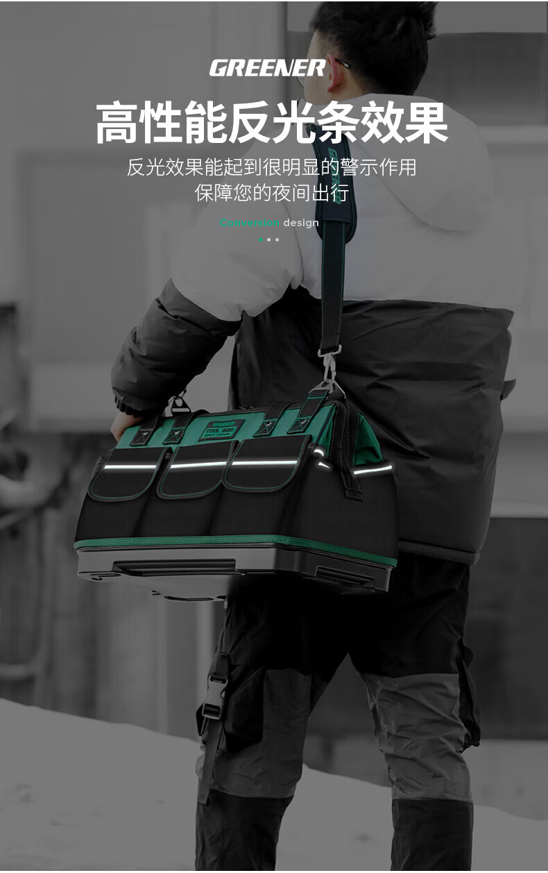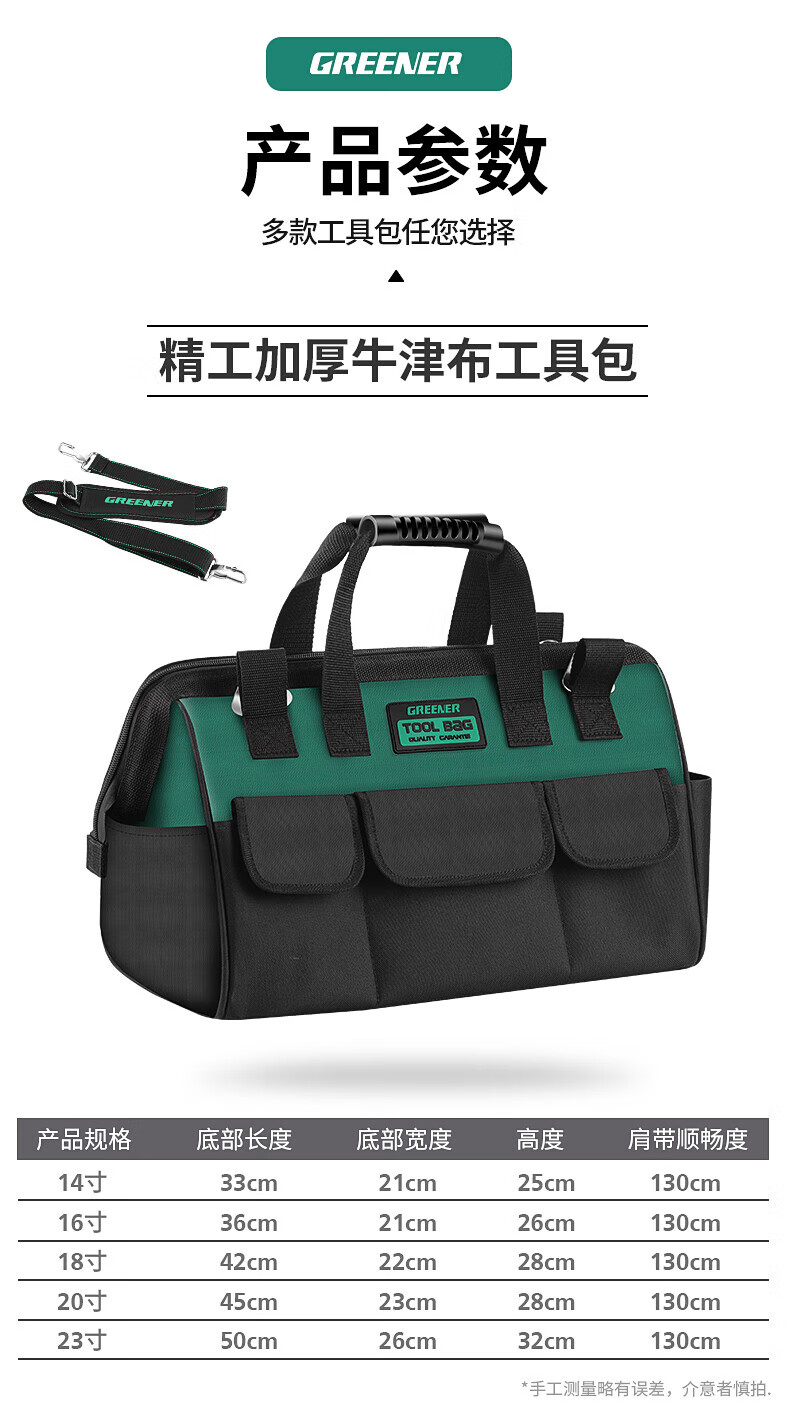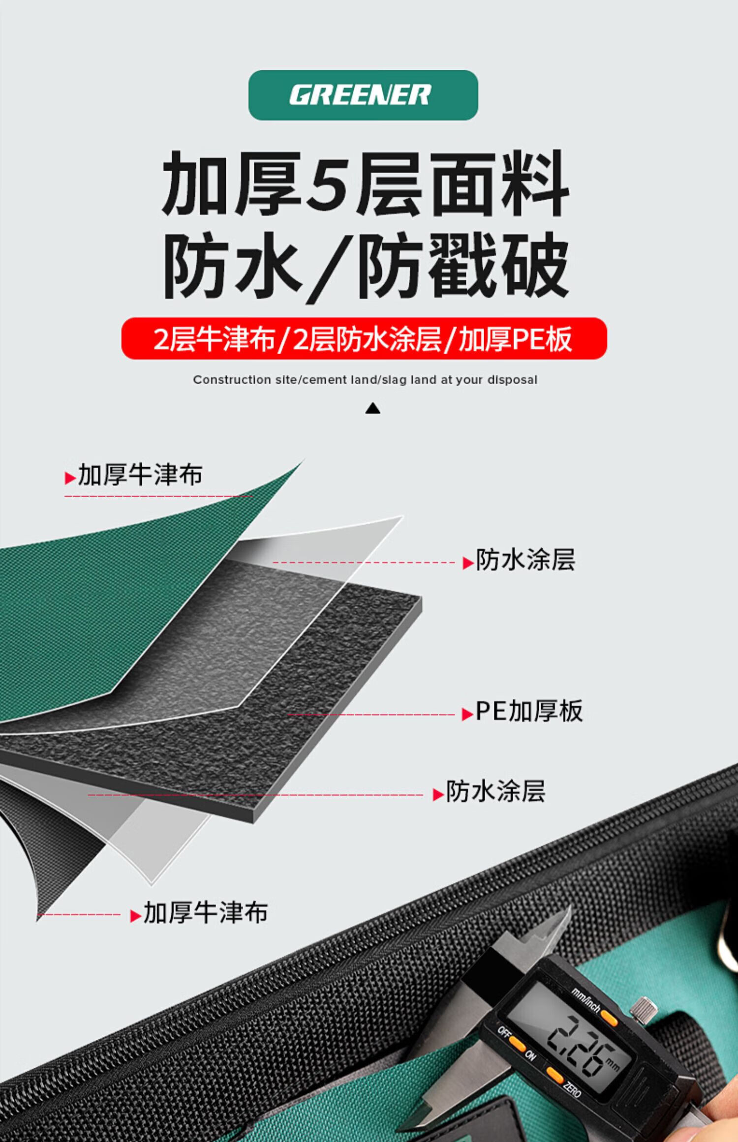 GREENER large-capacity tool bag repair and installation waterproof tool bag water, electricity and woodworking thickened Oxford cloth portable storage bag upgraded thickened 20-inch tool bag + strap