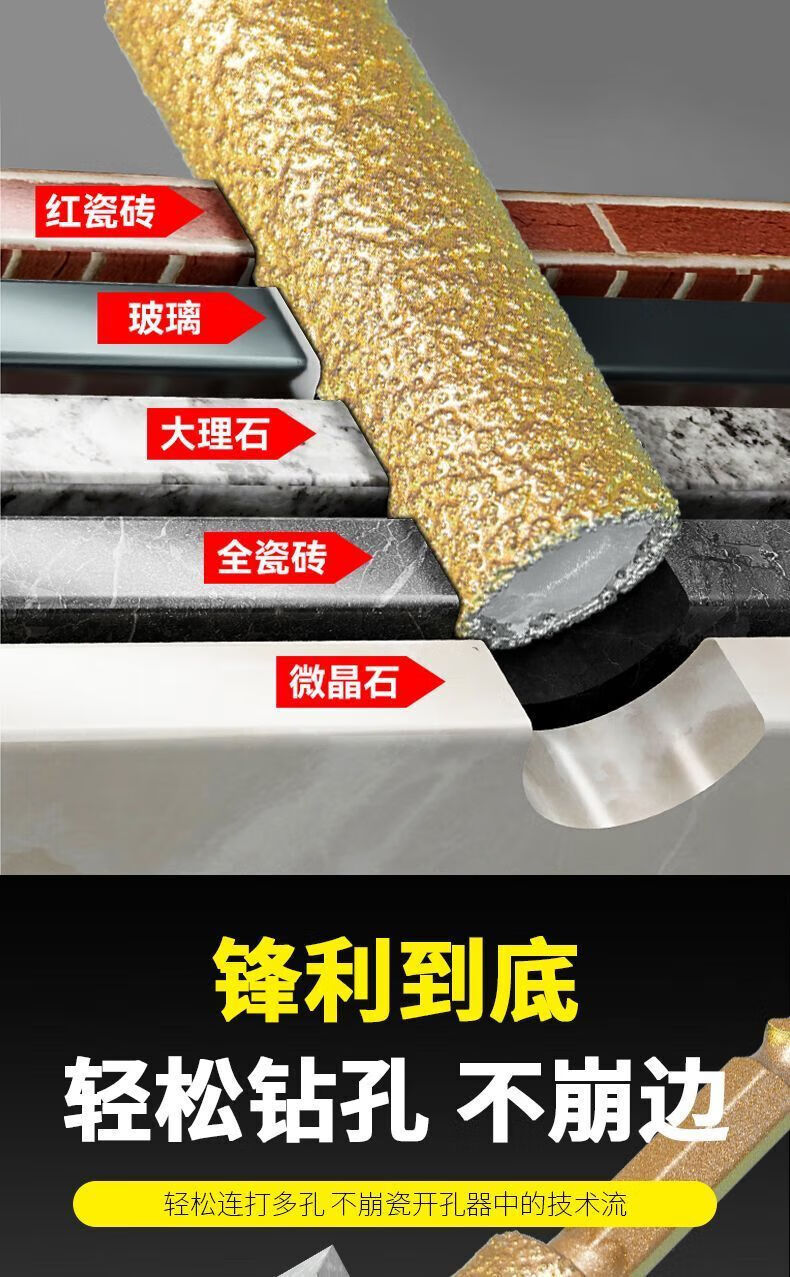 Chengzhou's new full sand blade brazing drill bit hole opener ceramic tile punching expansion grinding head trimming dry glass drill (6mm) 5-pack