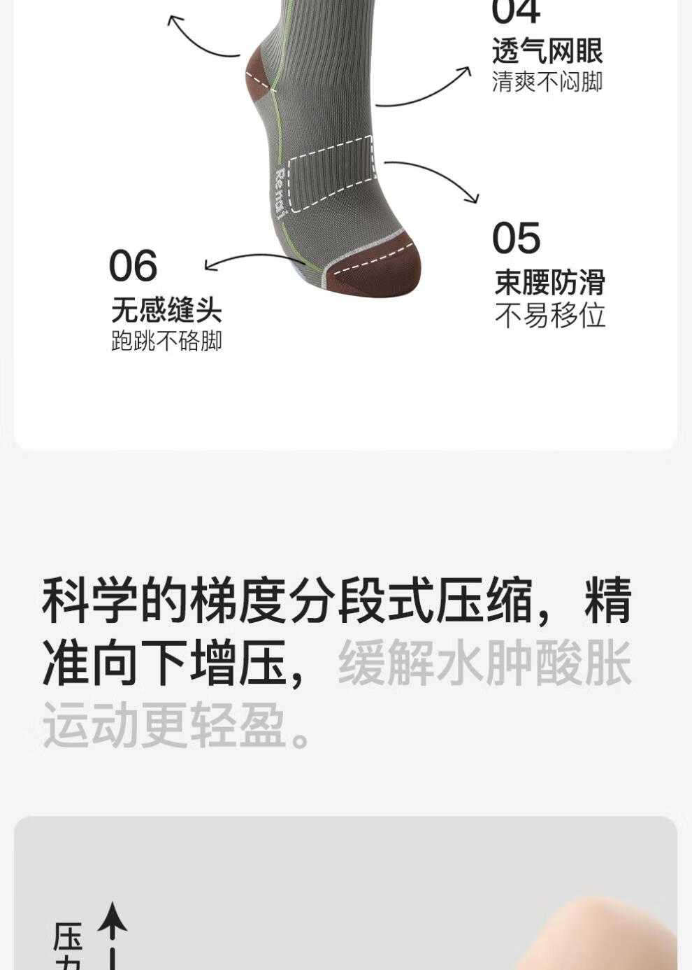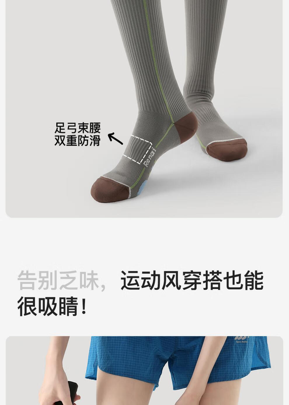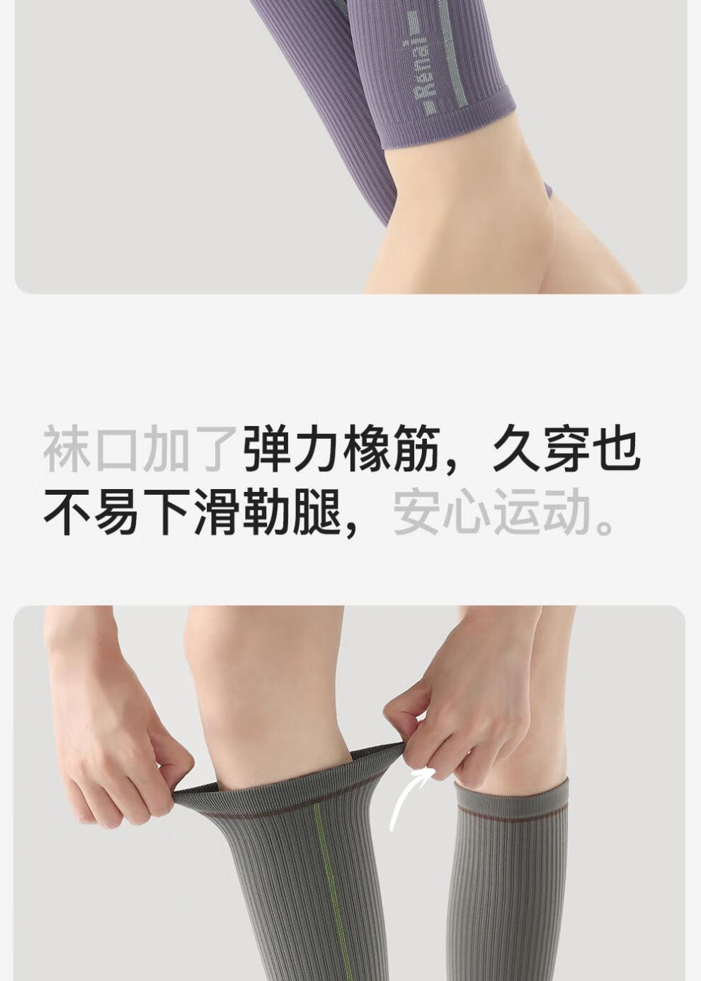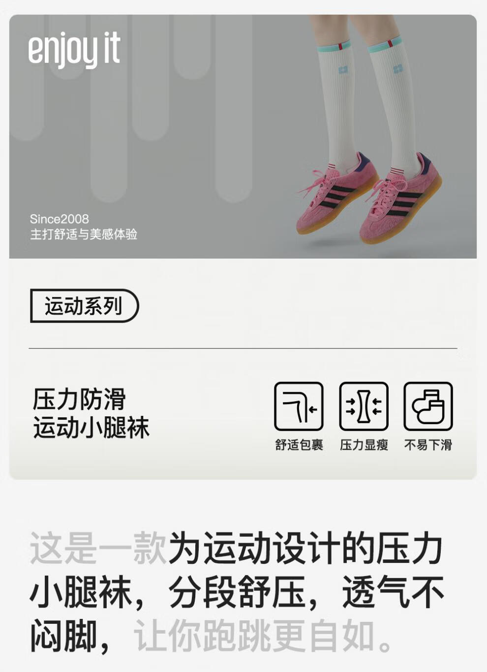 enjoy it运动压力袜女防滑加压瑜伽跑步登山骑行长筒袜子 S0026浅灰 均码 【肌能压力运动袜】