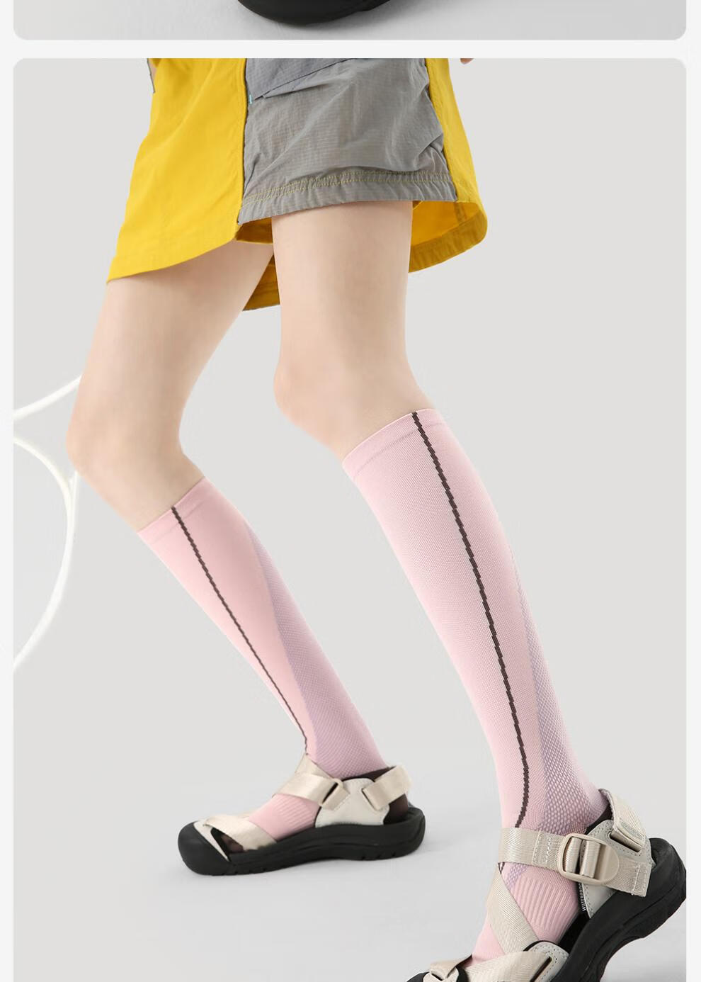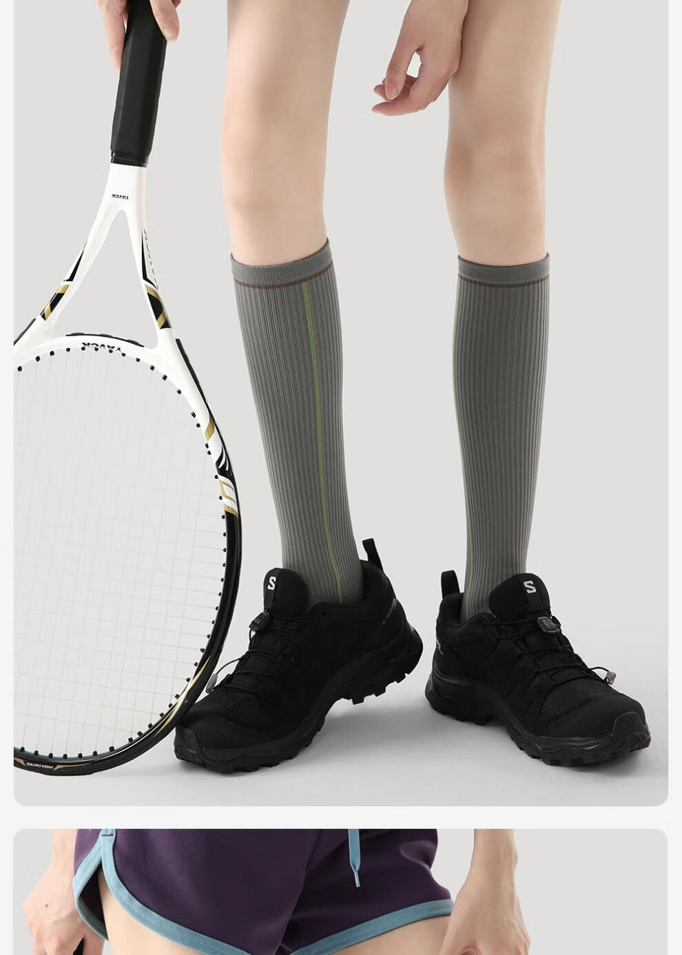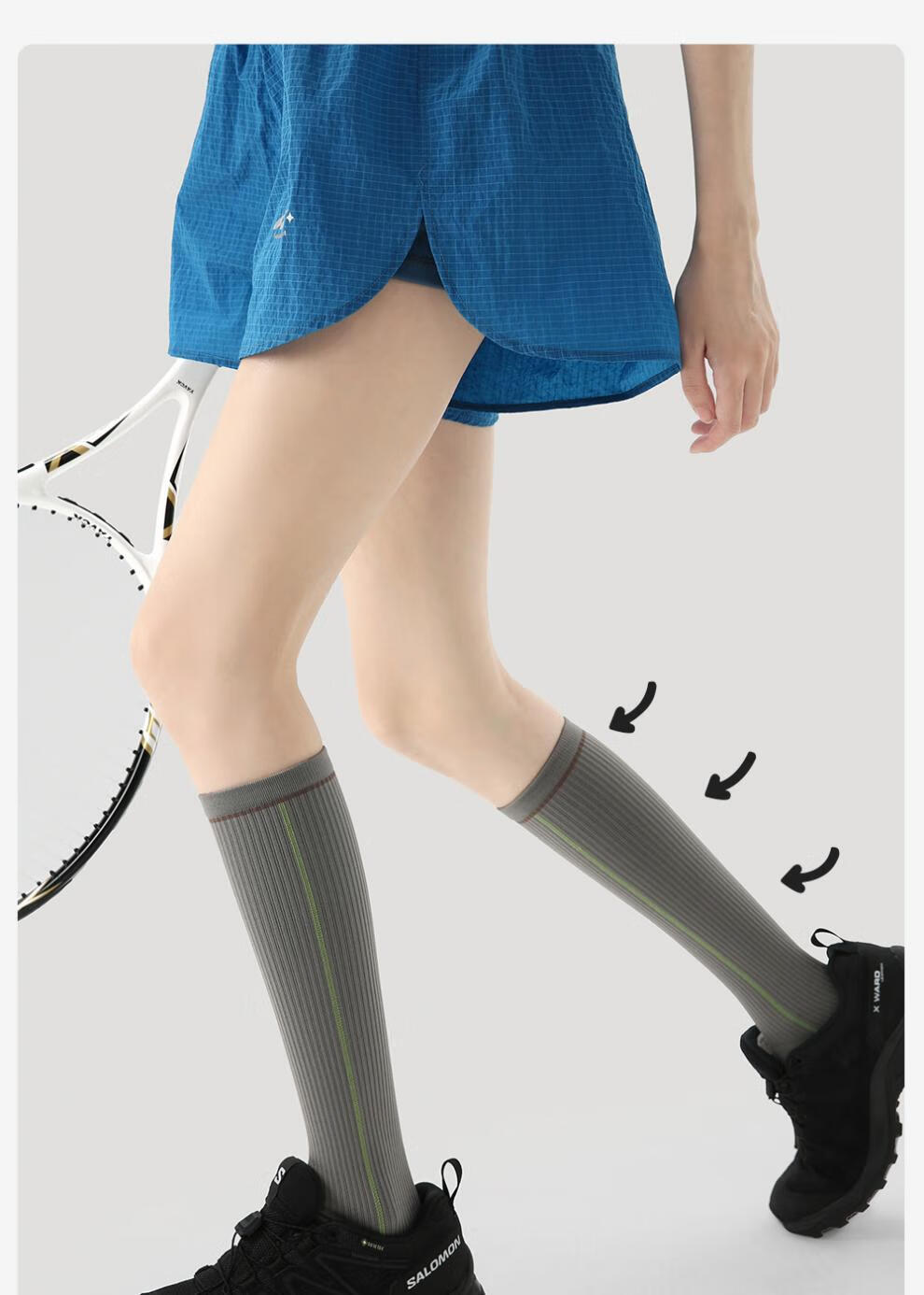 enjoy it运动压力袜女防滑加压瑜伽跑步登山骑行长筒袜子 S0026浅灰 均码 【肌能压力运动袜】