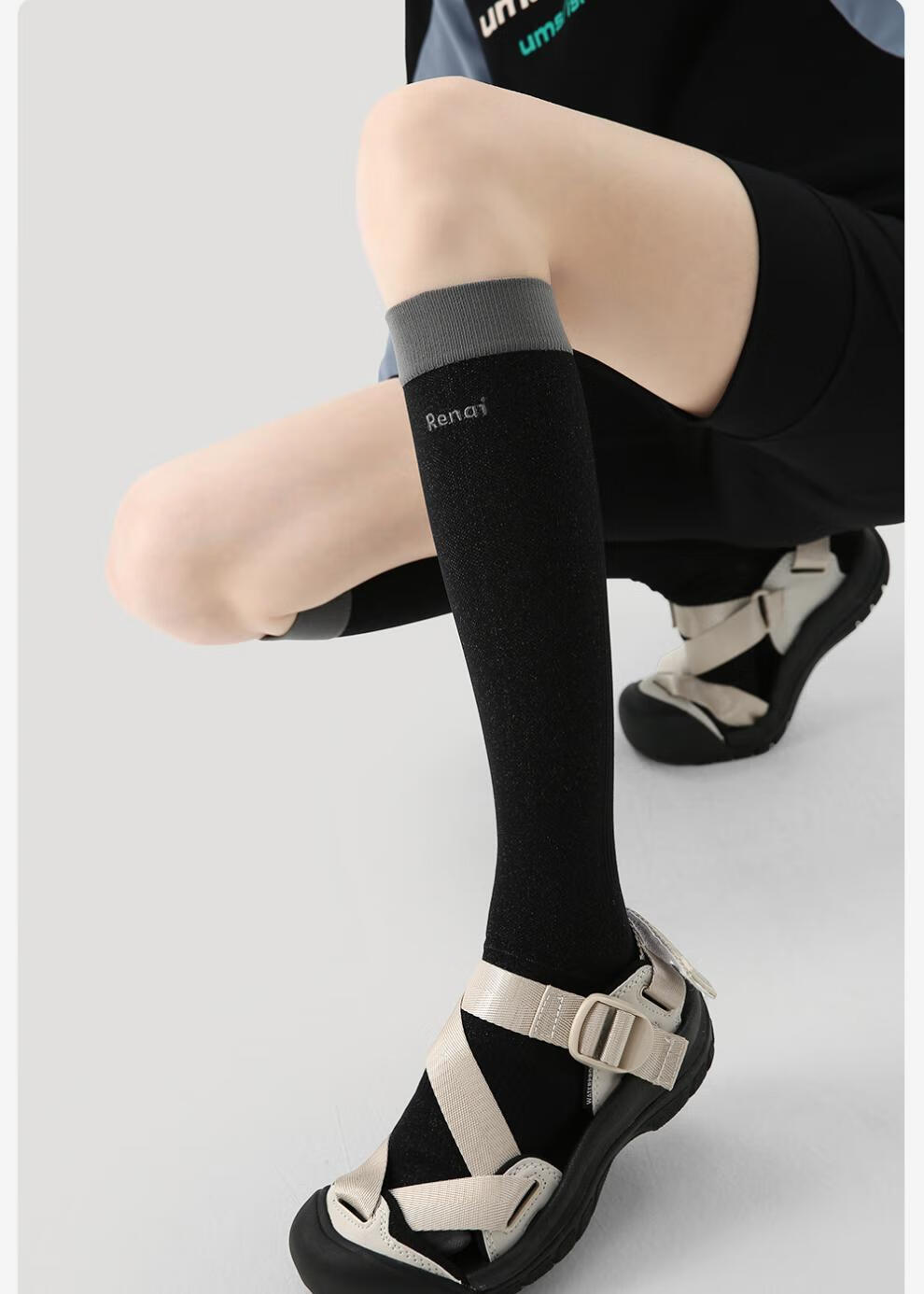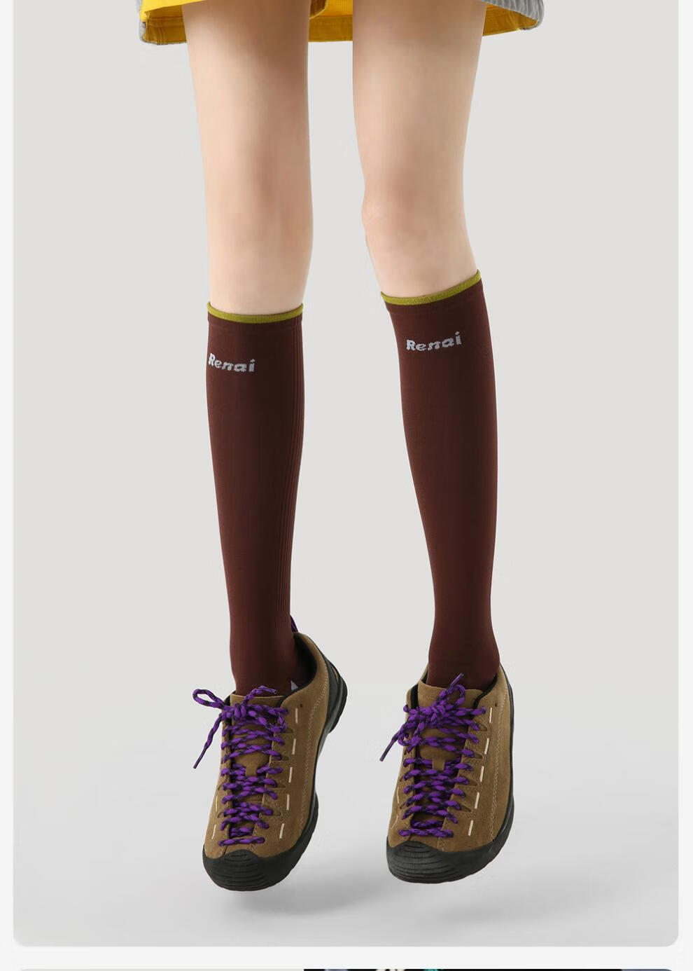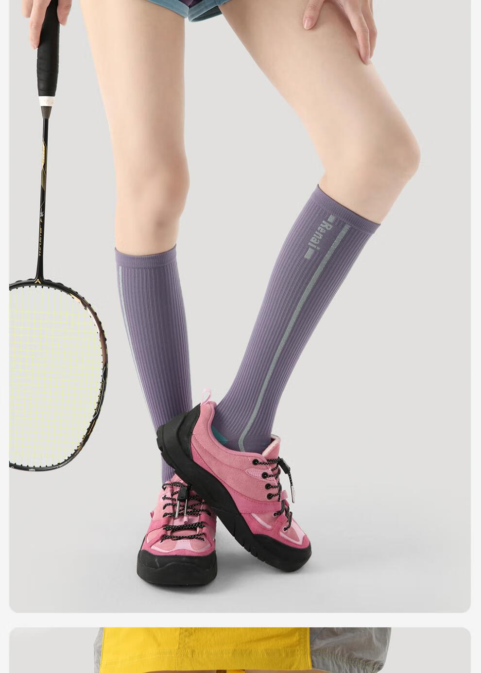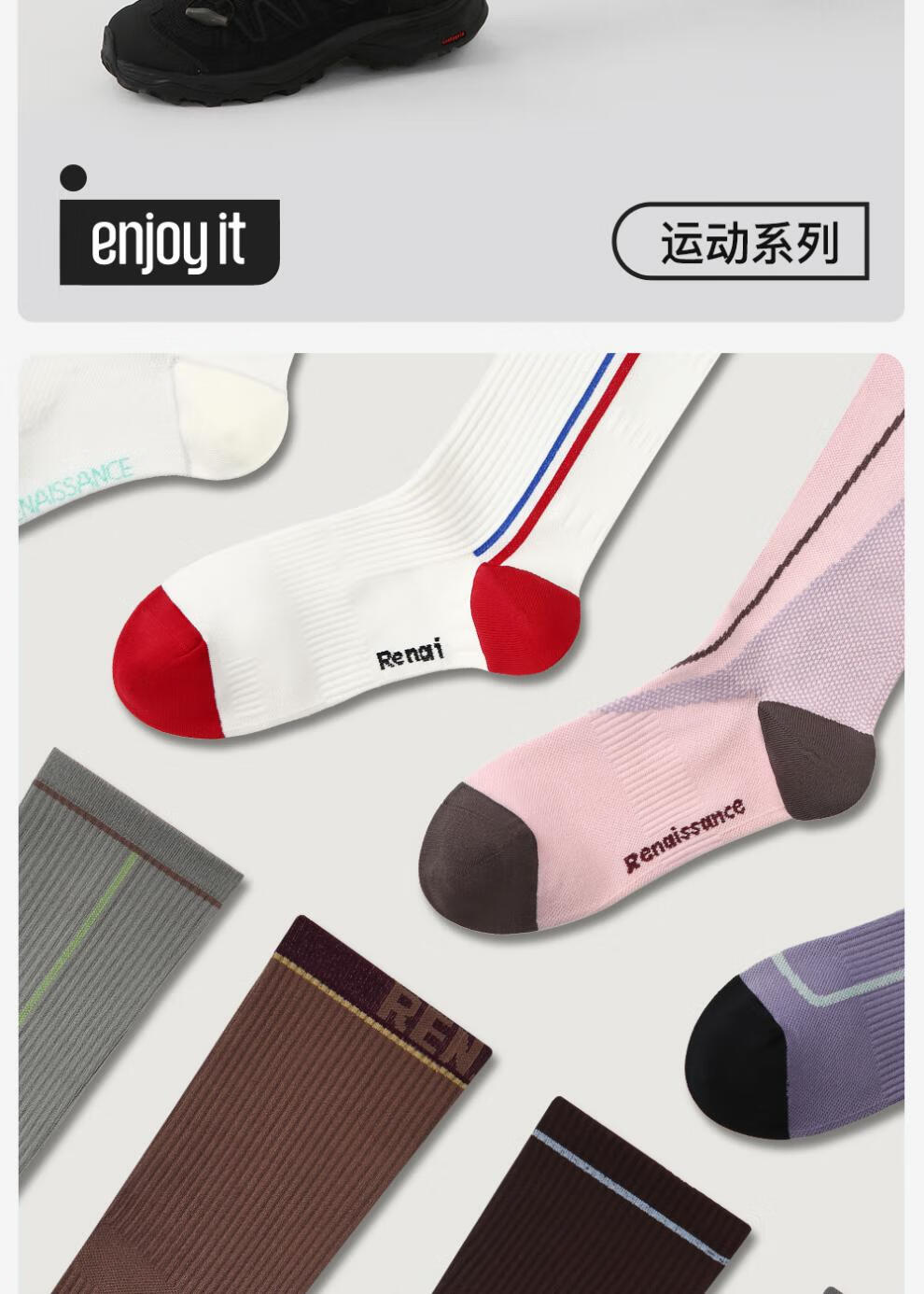 enjoy it运动压力袜女防滑加压瑜伽跑步登山骑行长筒袜子 S0026浅灰 均码 【肌能压力运动袜】