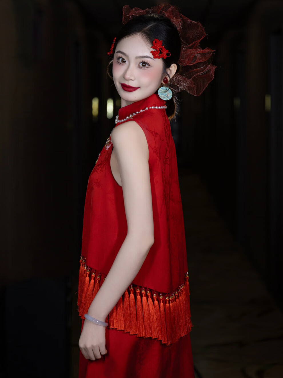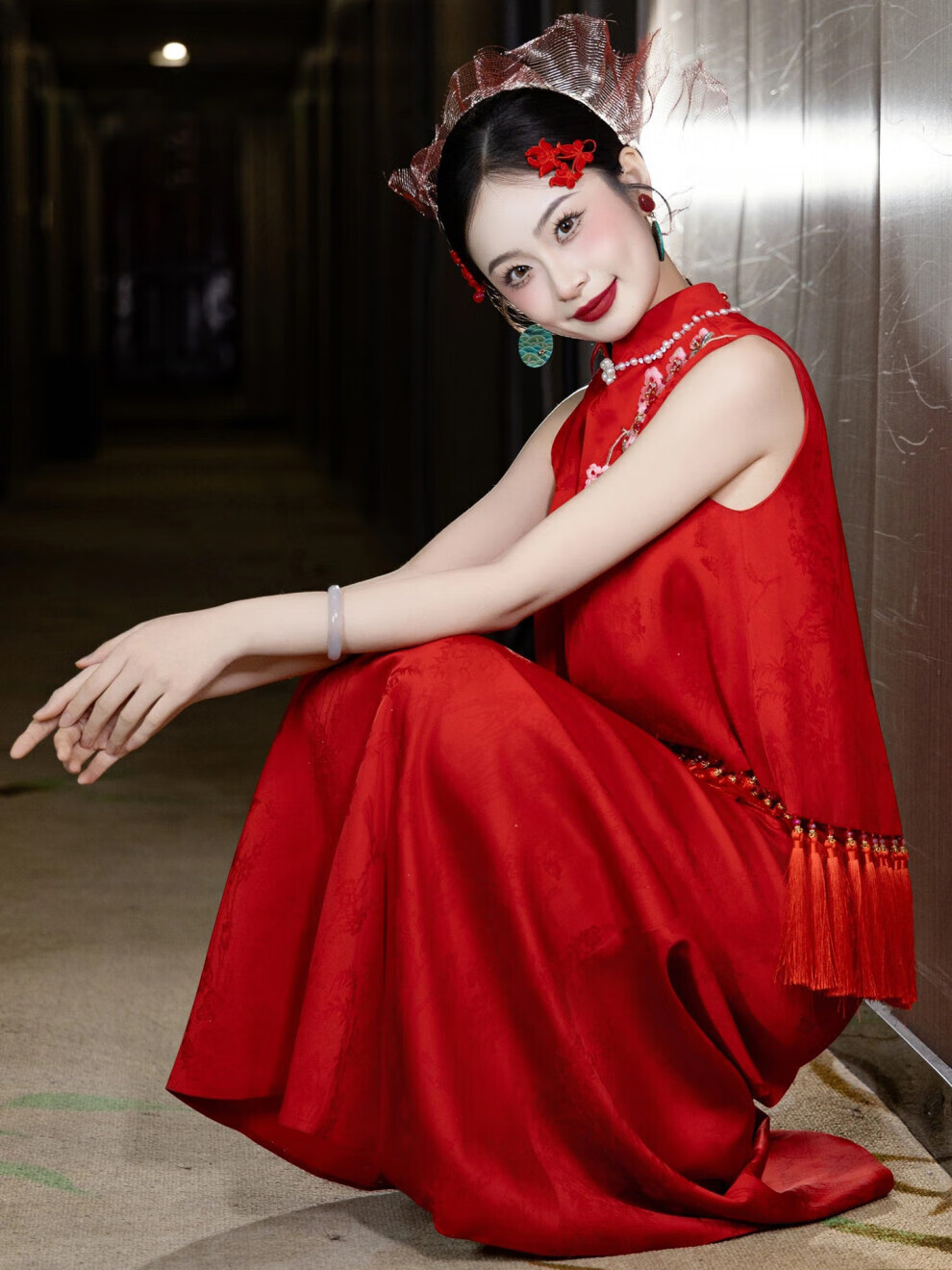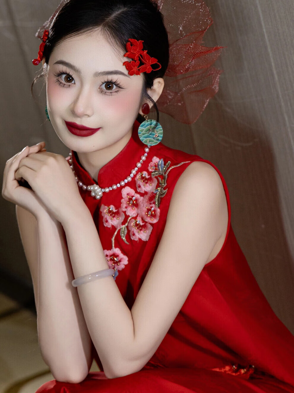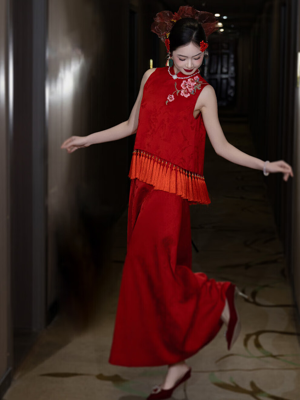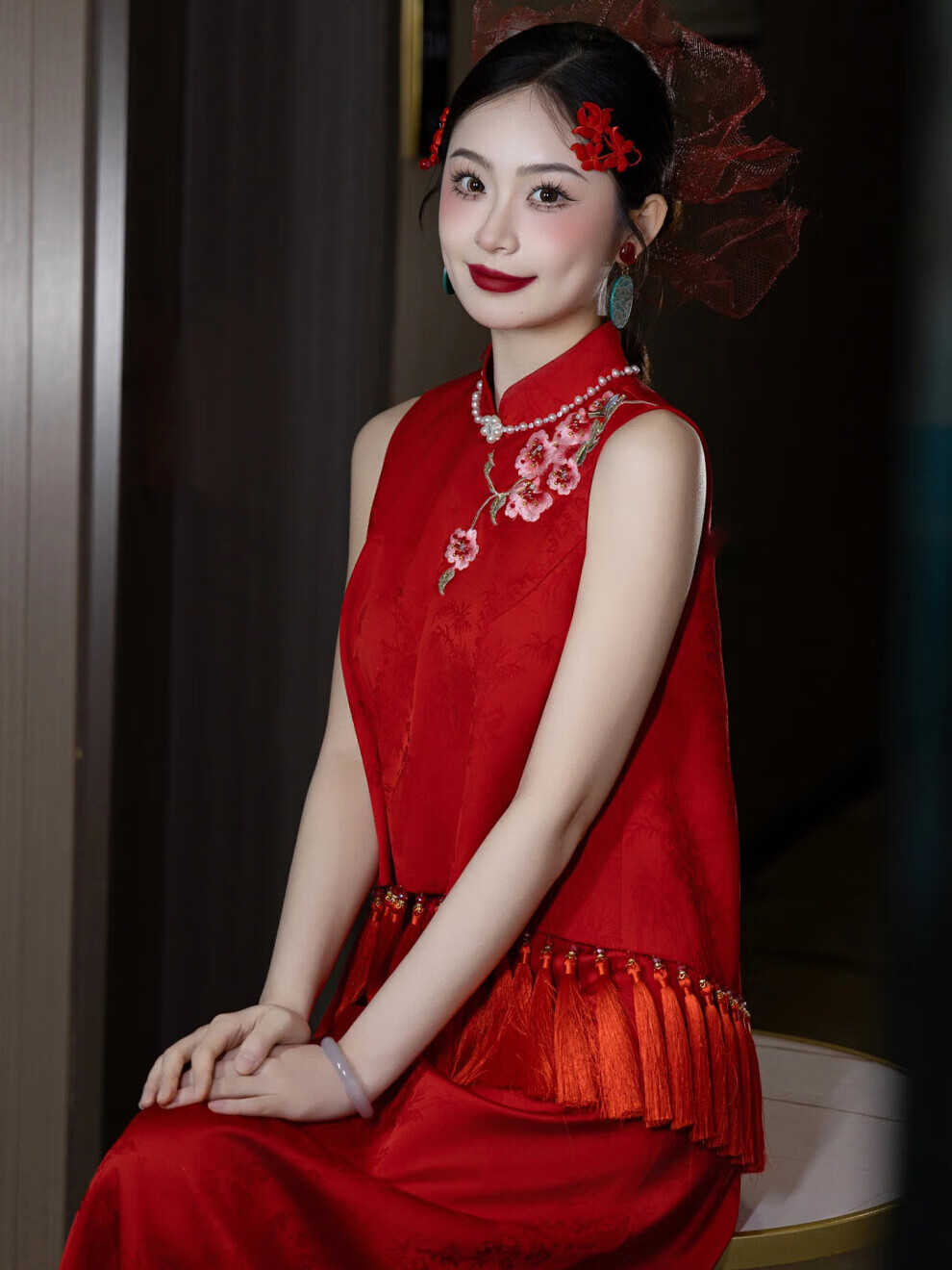 Fei Hao engagement clothes women's new Chinese cheongsam toasting suit two-piece suit high-end burgundy bride wedding morning shoot S