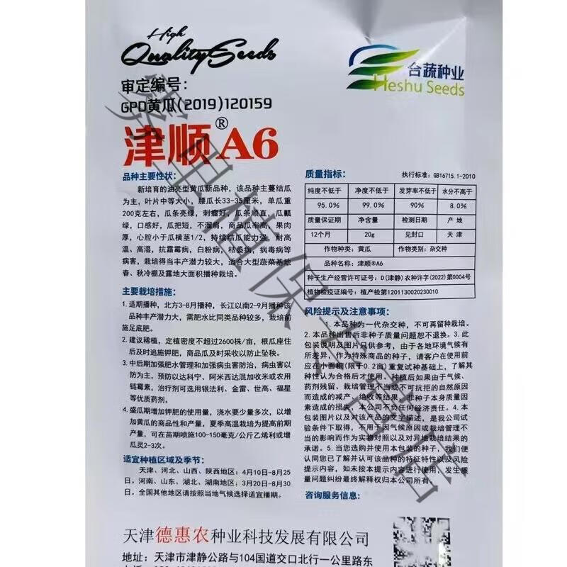 Green-fleshed, sweet, crispy melons with many cucumber seeds, shiny, straight, short-handled, densely thorned, high-yielding, disease-resistant, spring and autumn sowing cucumber seeds, Jinshun A6 original 500 grains per bag