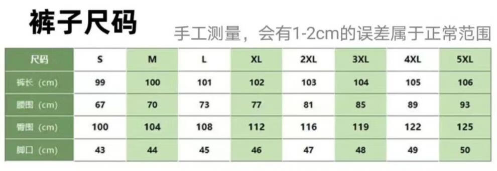 Outseam (cm) 99 cm 101.5 cm 104 cm 106.5 cm 109 cm