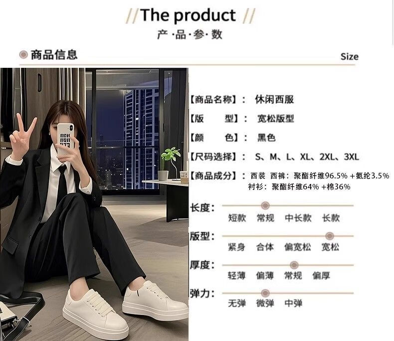 FANAOGE Korean style black suit suit for female college student defense suit black jacket teaching job interview professional formal wear 4-piece suit tie + suit + white shirt + pants M Recommended 95-110 Jin Jin equals 0.5 kg Urgent items will be sent on the same day - contact customer service for SF Express