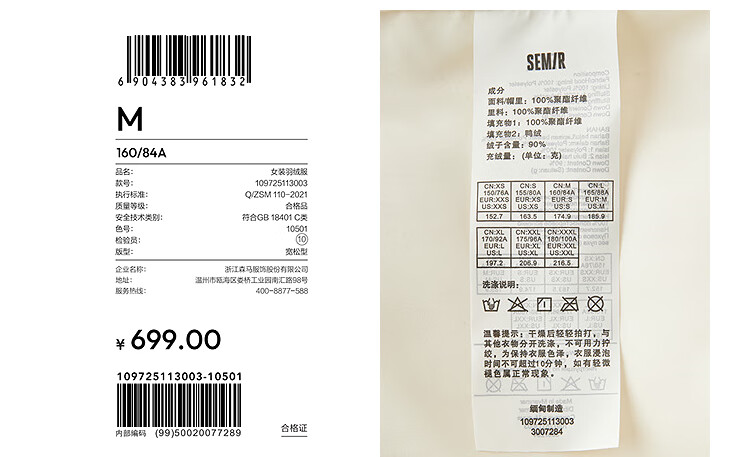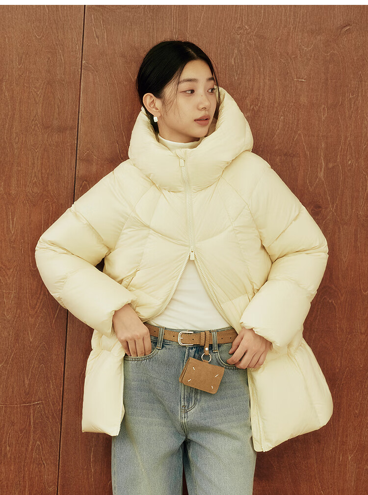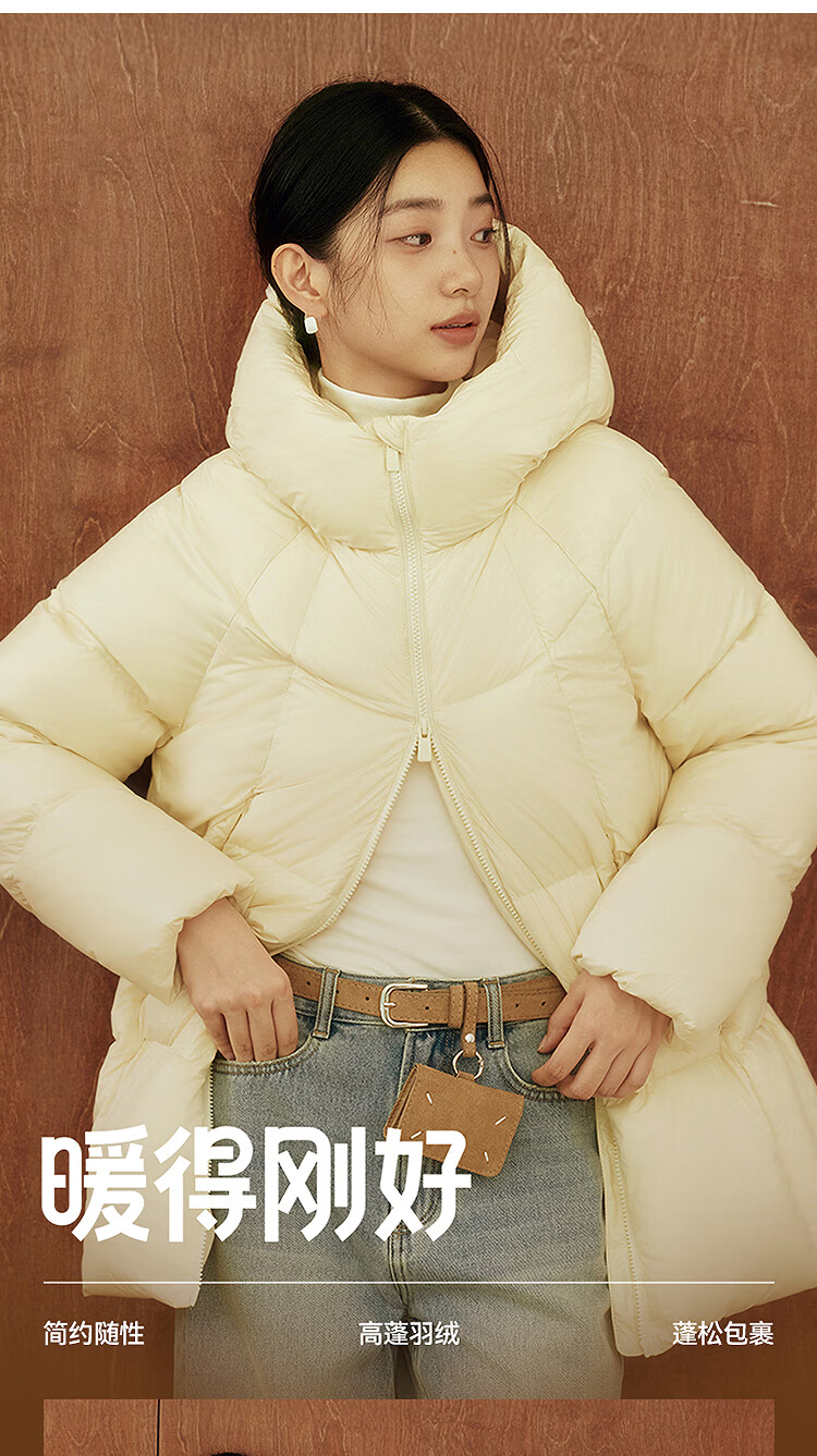 Semir Easy | Down Jacket Women's Winter Mid-Length 90 Down Thick Three-proof Turtle Back Raglan 2025 New Jacket Milk White (White Duck Down) 10501 M