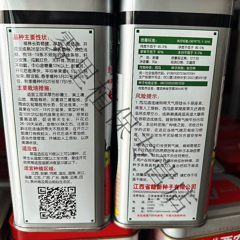 No. 1 No. 2 watermelon seeds, larval watermelon seeds, thin skin, early maturity, high temperature resistance hybrid generation, Jingxin No. 1 canned 50g