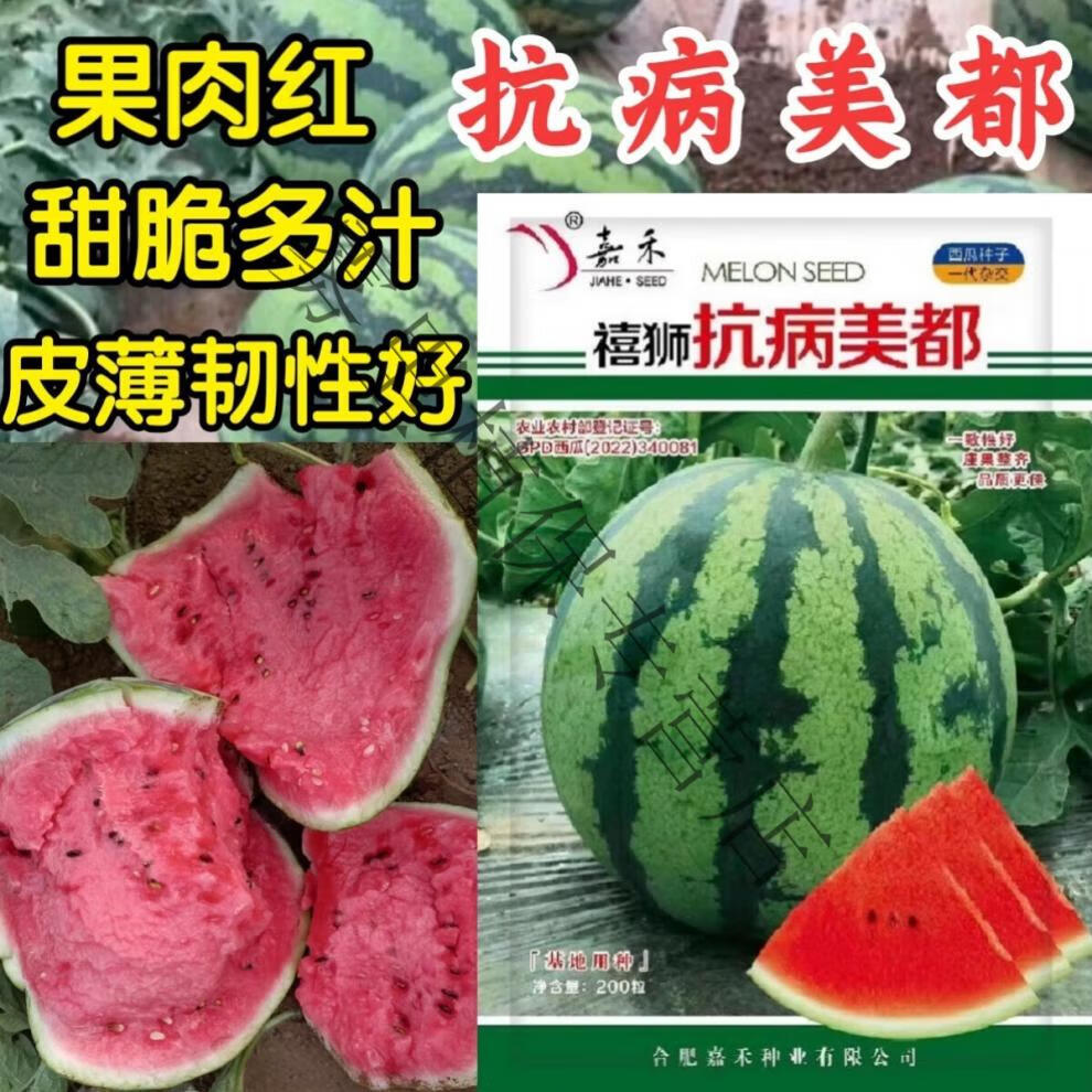Meidu watermelon seeds, disease-resistant, thin-skinned, crack-resistant, sweet, crispy, red flesh, super 8424 Jingxin round watermelon seeds, 1000 grains, large package, disease-resistant Meidu, 3 bags