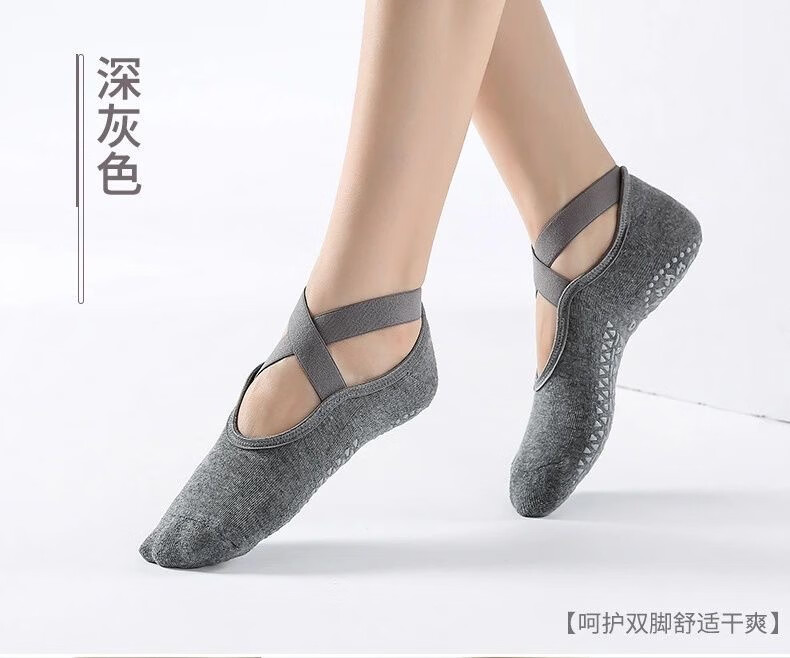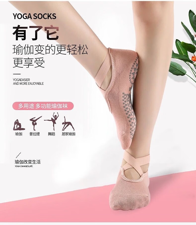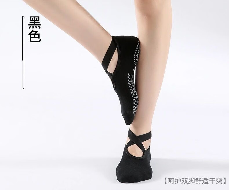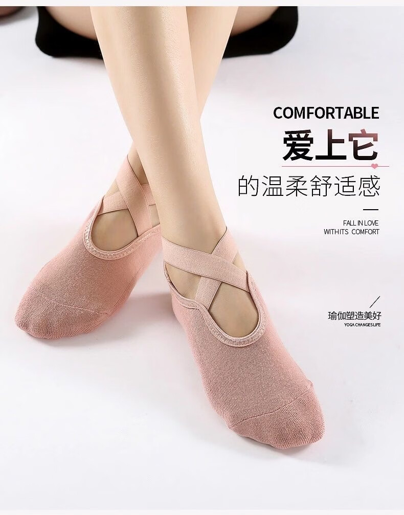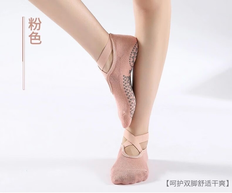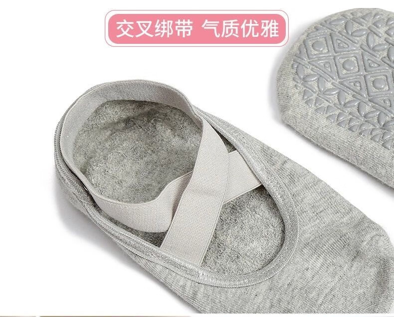 Spring and summer new beginner women's professional yoga socks with cross-belt terry thickened anti-slip dotted Pilates socks, 3 pairs in random colors, one size fits all