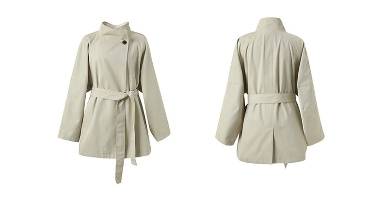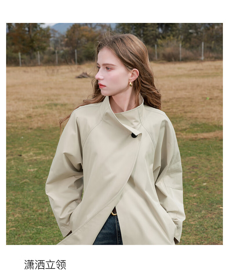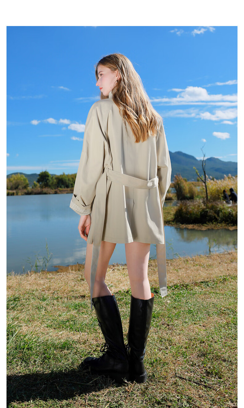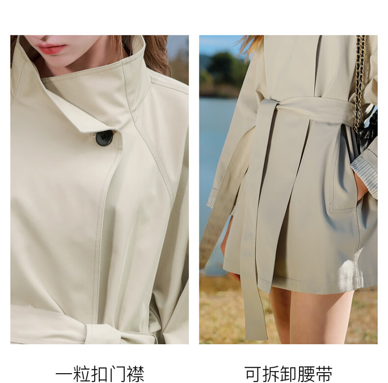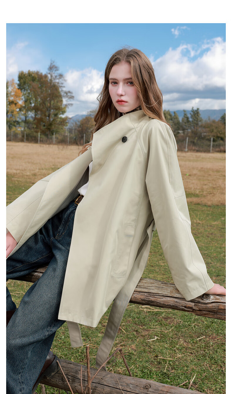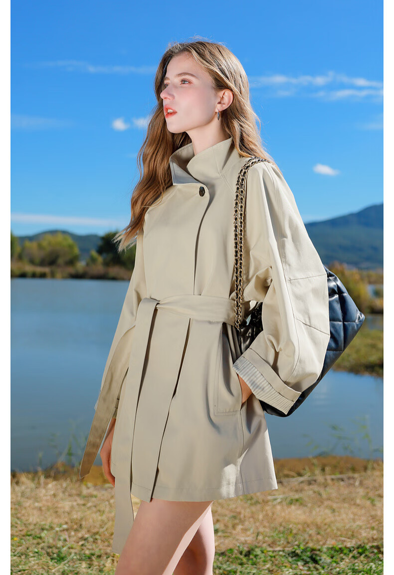 Sancai 2025 Autumn New Stand Collar Windbreaker One Button Belt Silhouette Jacket Casual Temperament M Apricot S 155/80A