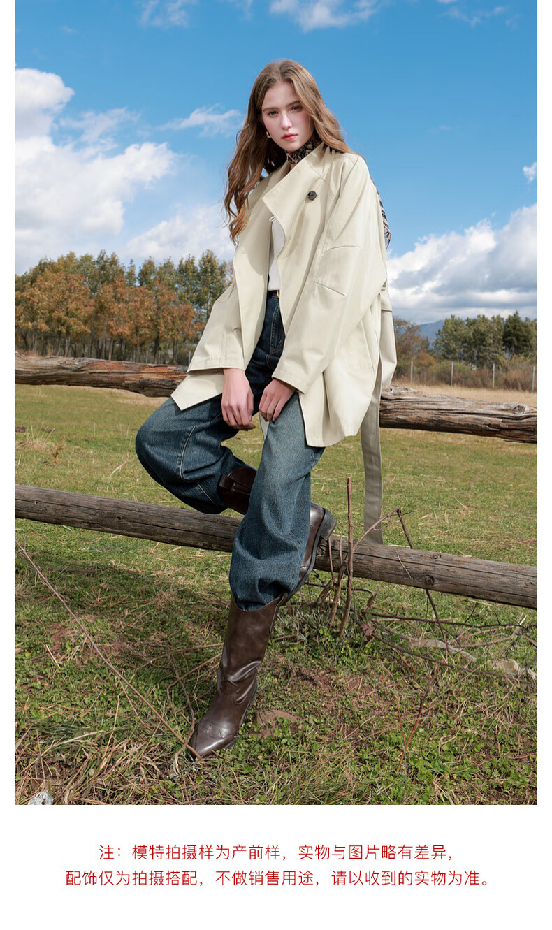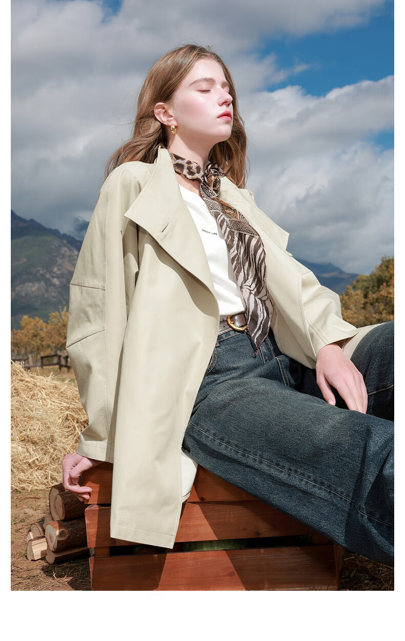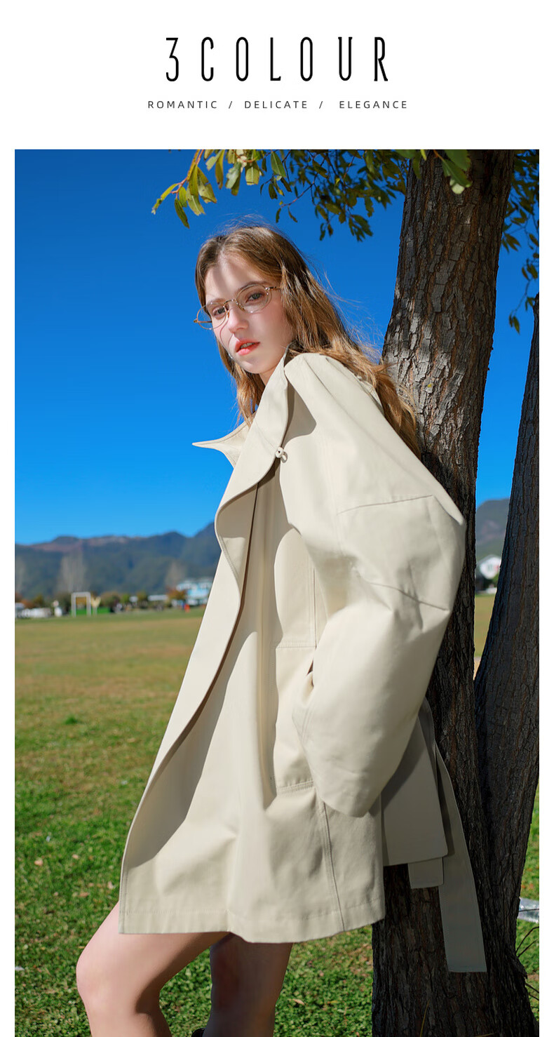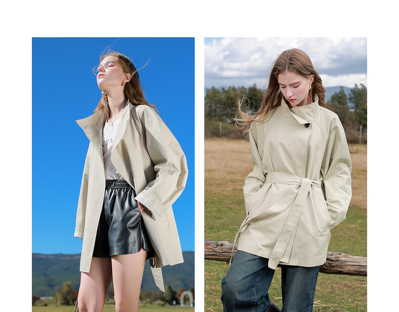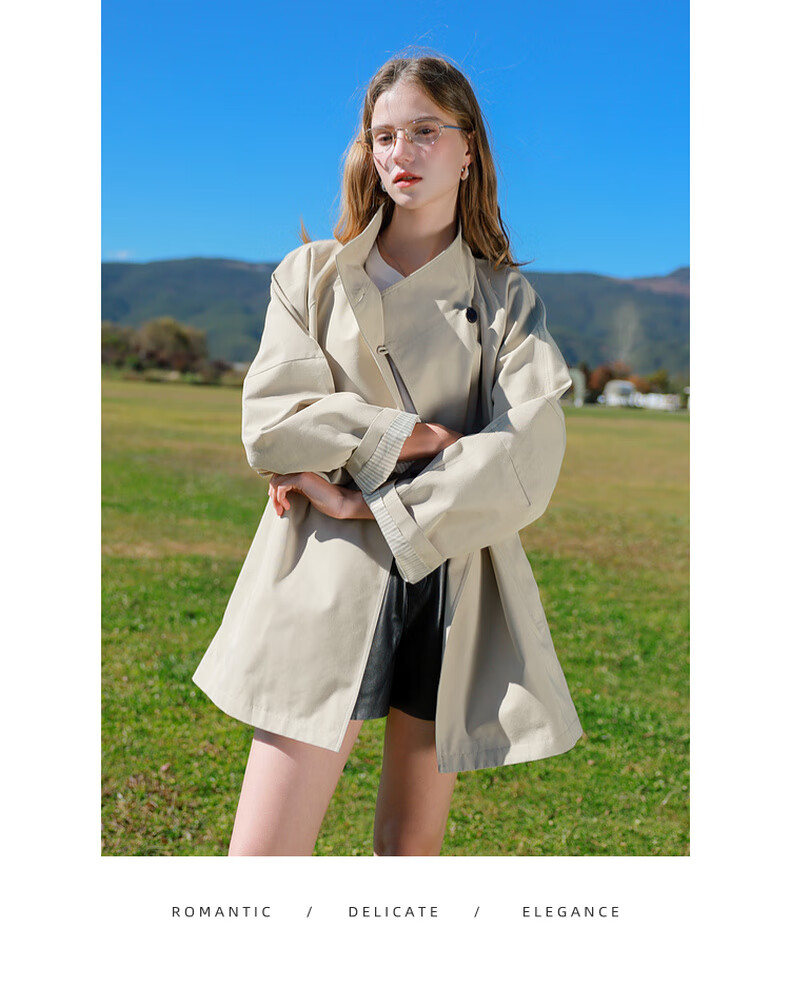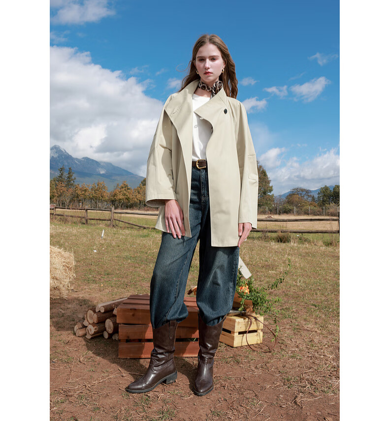 Sancai 2025 Autumn New Stand Collar Windbreaker One Button Belt Silhouette Jacket Casual Temperament M Apricot S 155/80A