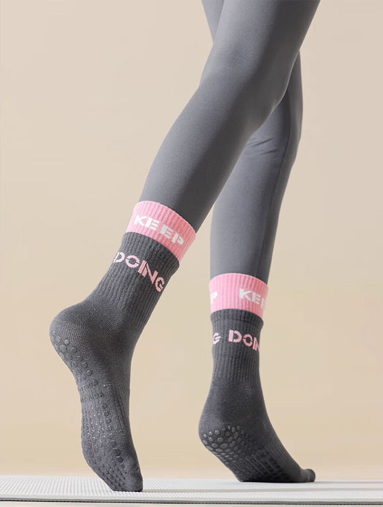 Pilates sports yoga socks professional non-slip mid-calf floor socks dance indoor fitness running black and white four seasons mixed color 7 pairs one size
