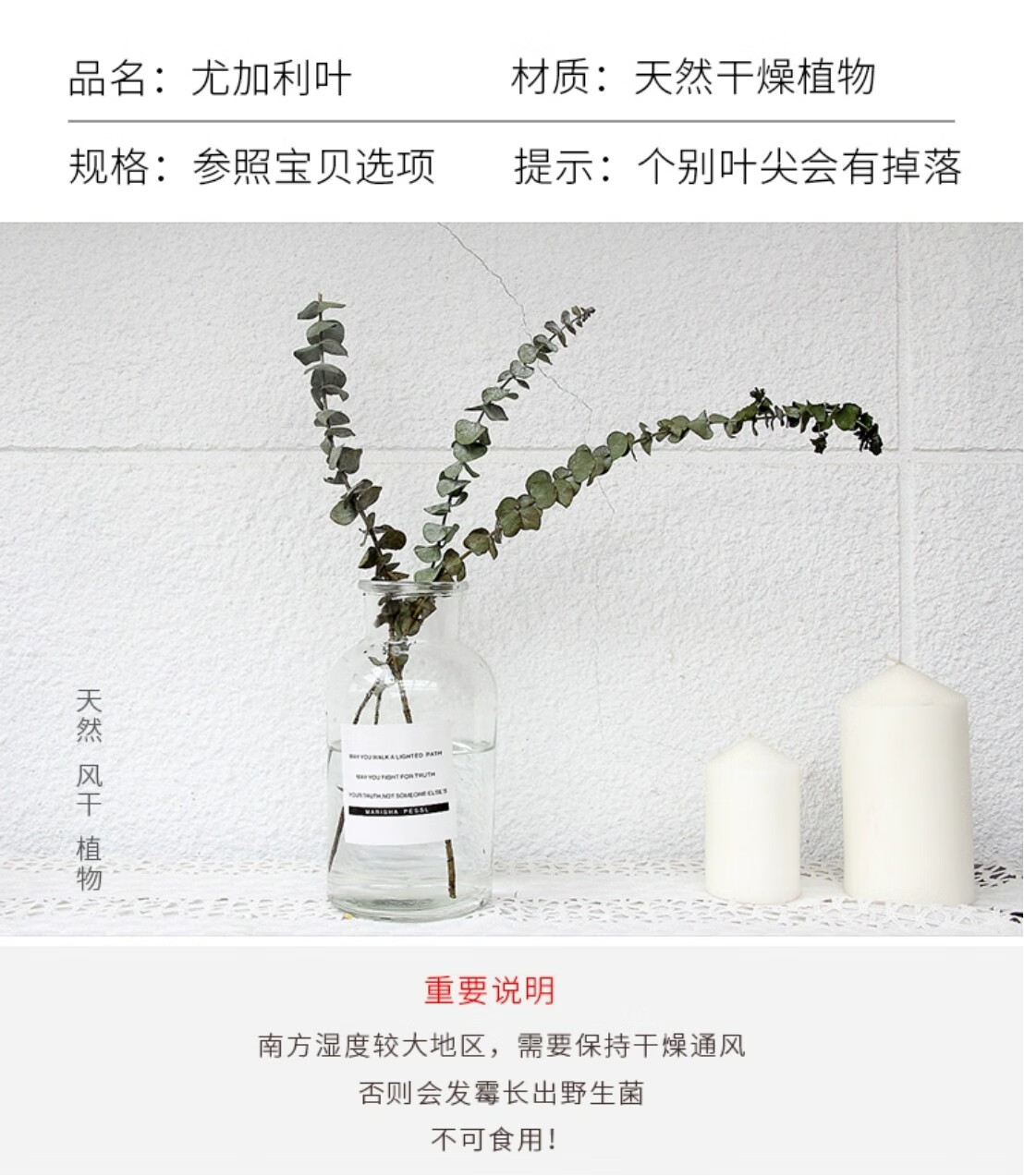 Eucalyptus leaf dried flower bouquet, natural air-dried branches, light luxury creative DIY decorative material ornaments, original color eucalyptus