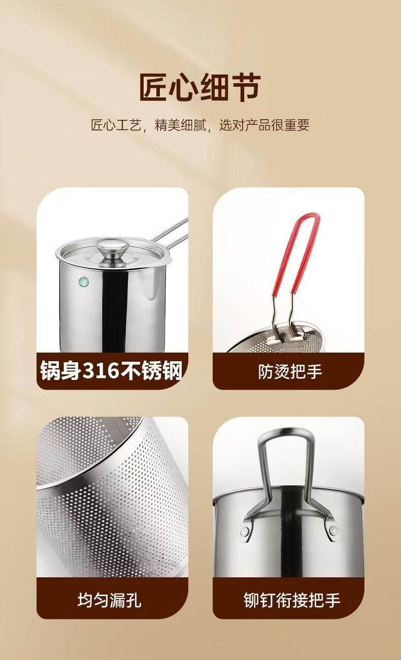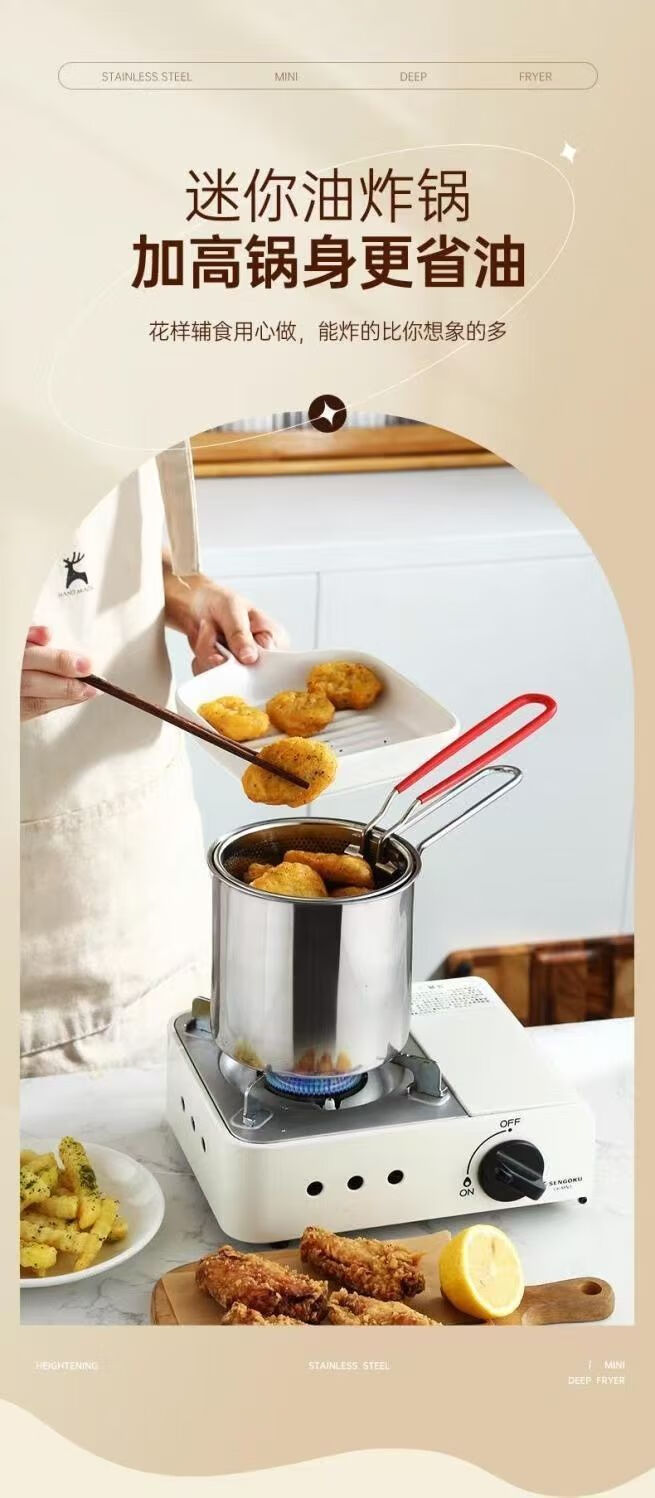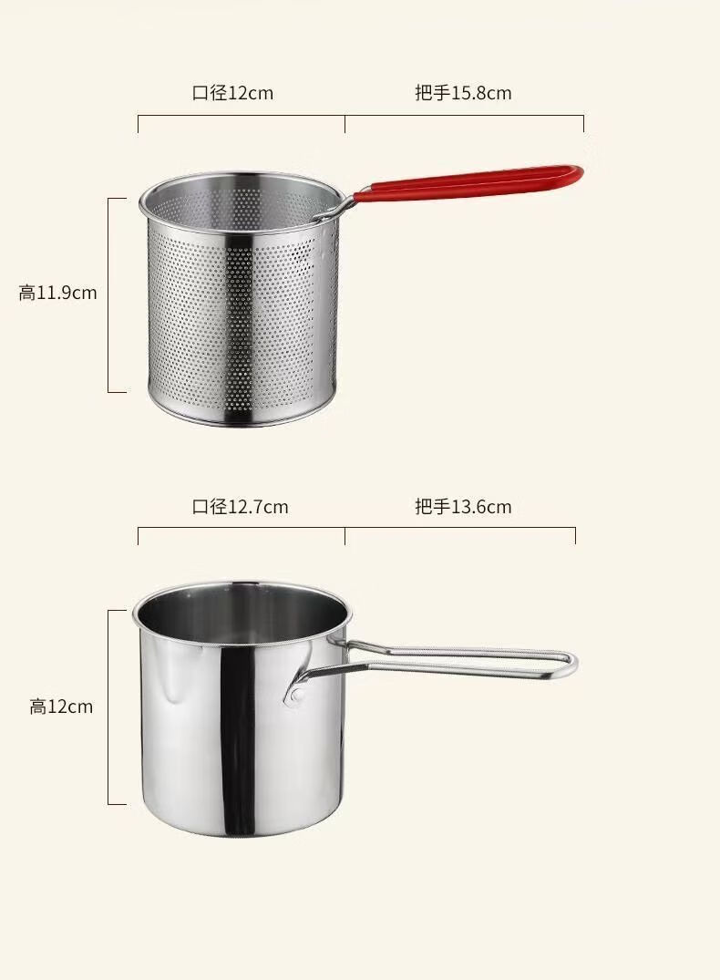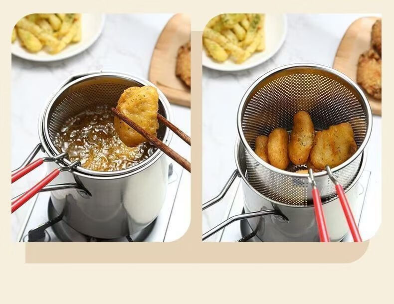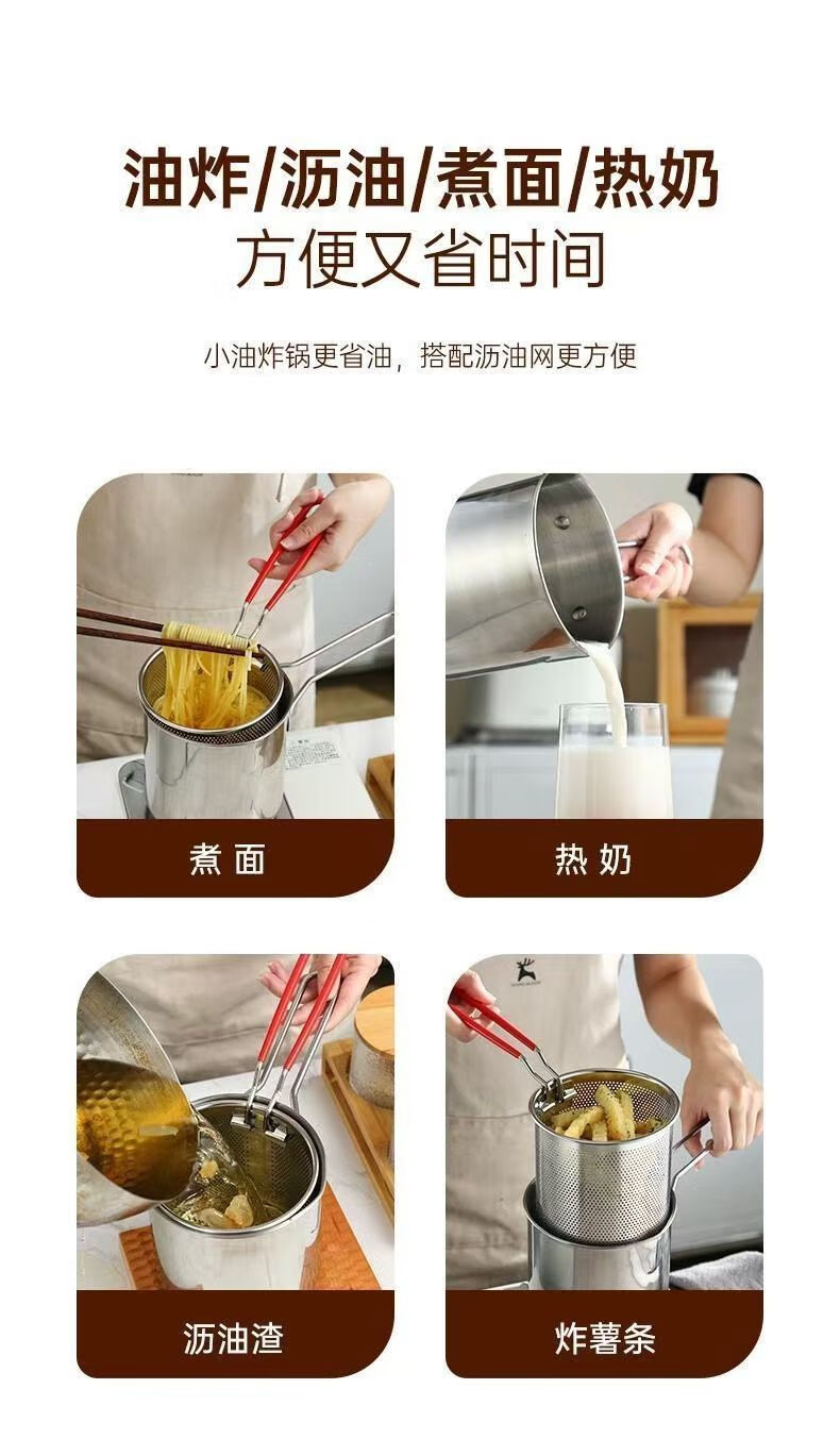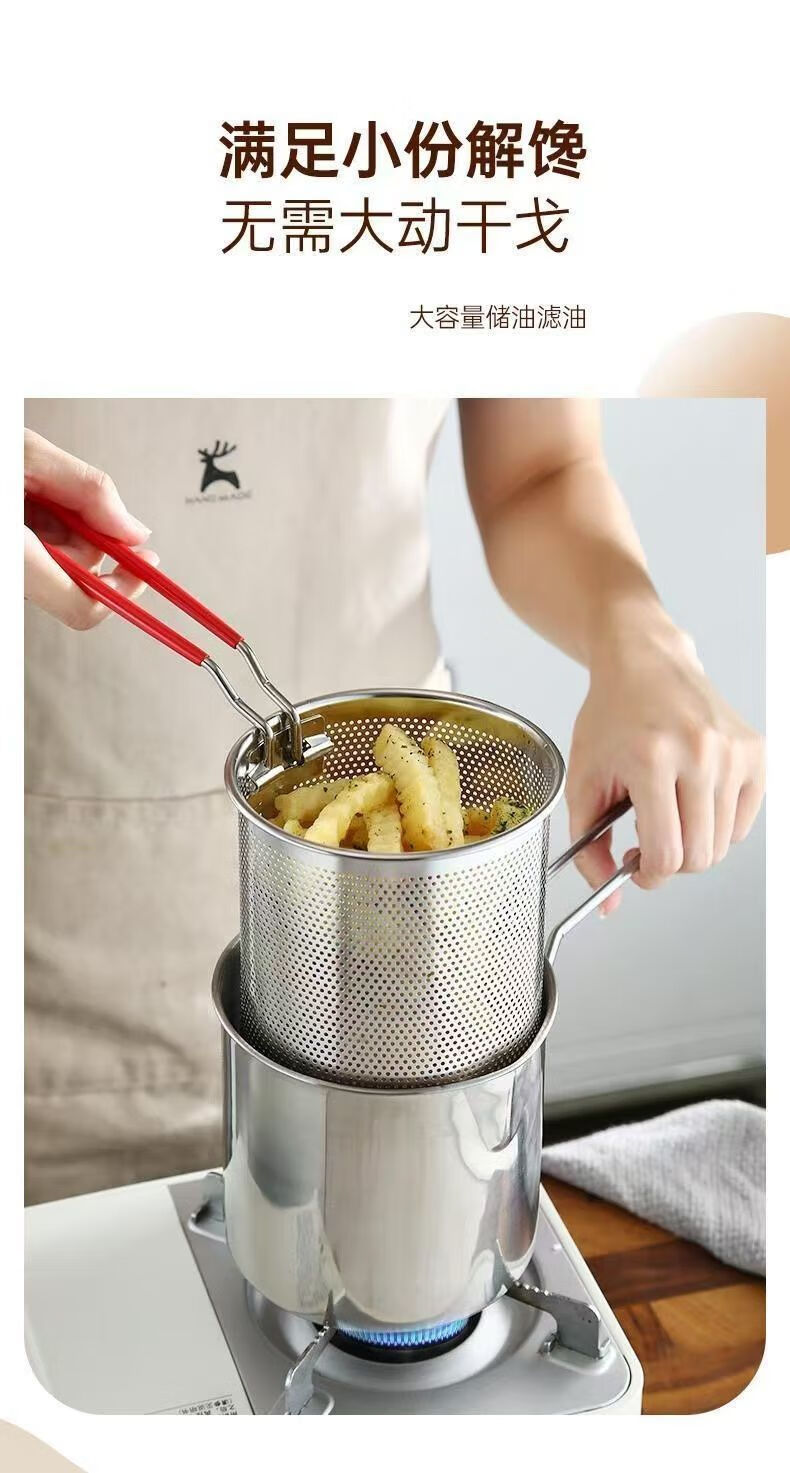 Stainless steel mini fryer household fuel-saving artifact fryer multi-function induction cooker fuel-saving gas universal small pot fryer + frying pan + lid three-piece set 10cm 1200ml
