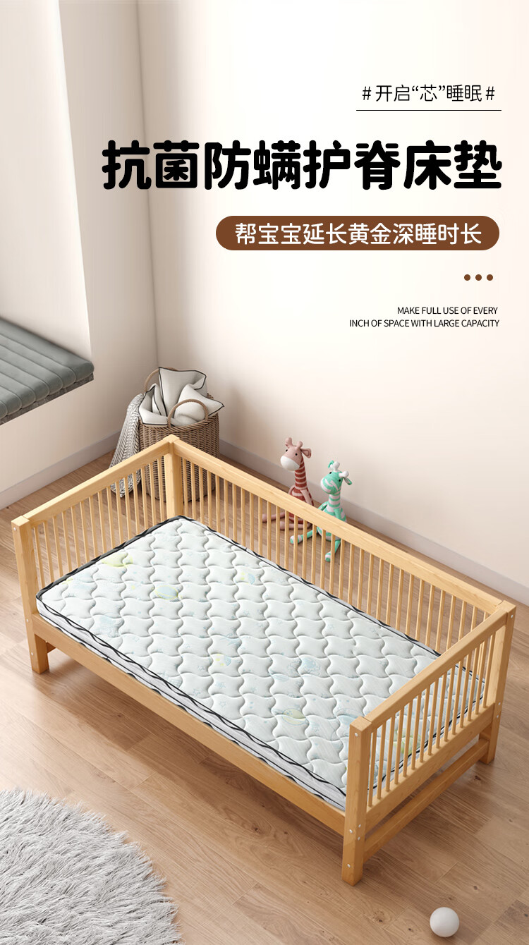 Children's mattress removable, washable and foldable natural 3E coconut palm ultra-thick spine baby mattress splicing pad, universal for all seasons, 9 cm thickened, removable and washable + 180*70
