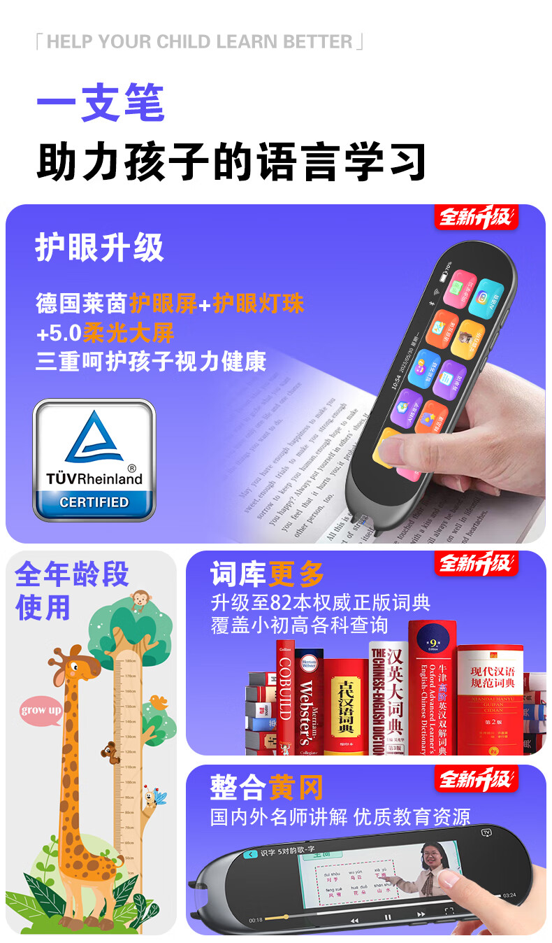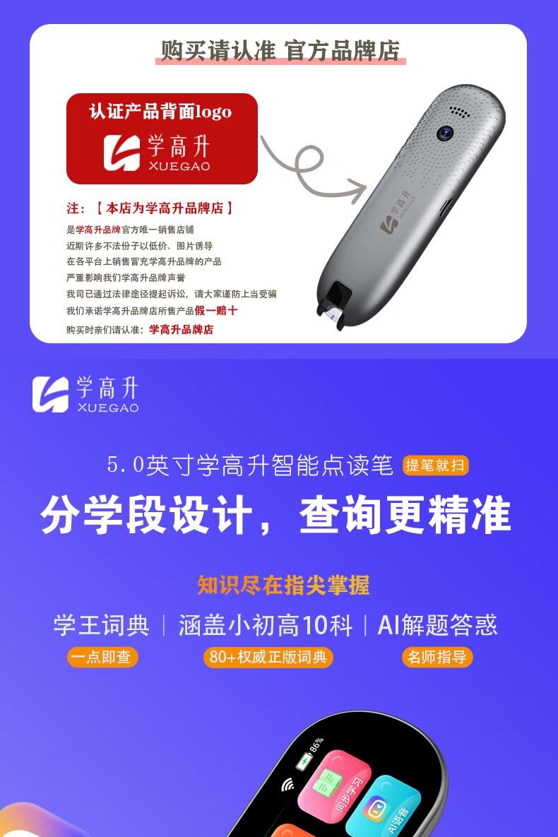 Xue Gaosheng Dictionary Pen Reading Pen Intelligent Primary School High School Electronic High-speed Translation English Learning Pen General Pen Professional Scanning Pen New Product Xue Gaosheng 64GB Primary School High School All-Subject Q&A