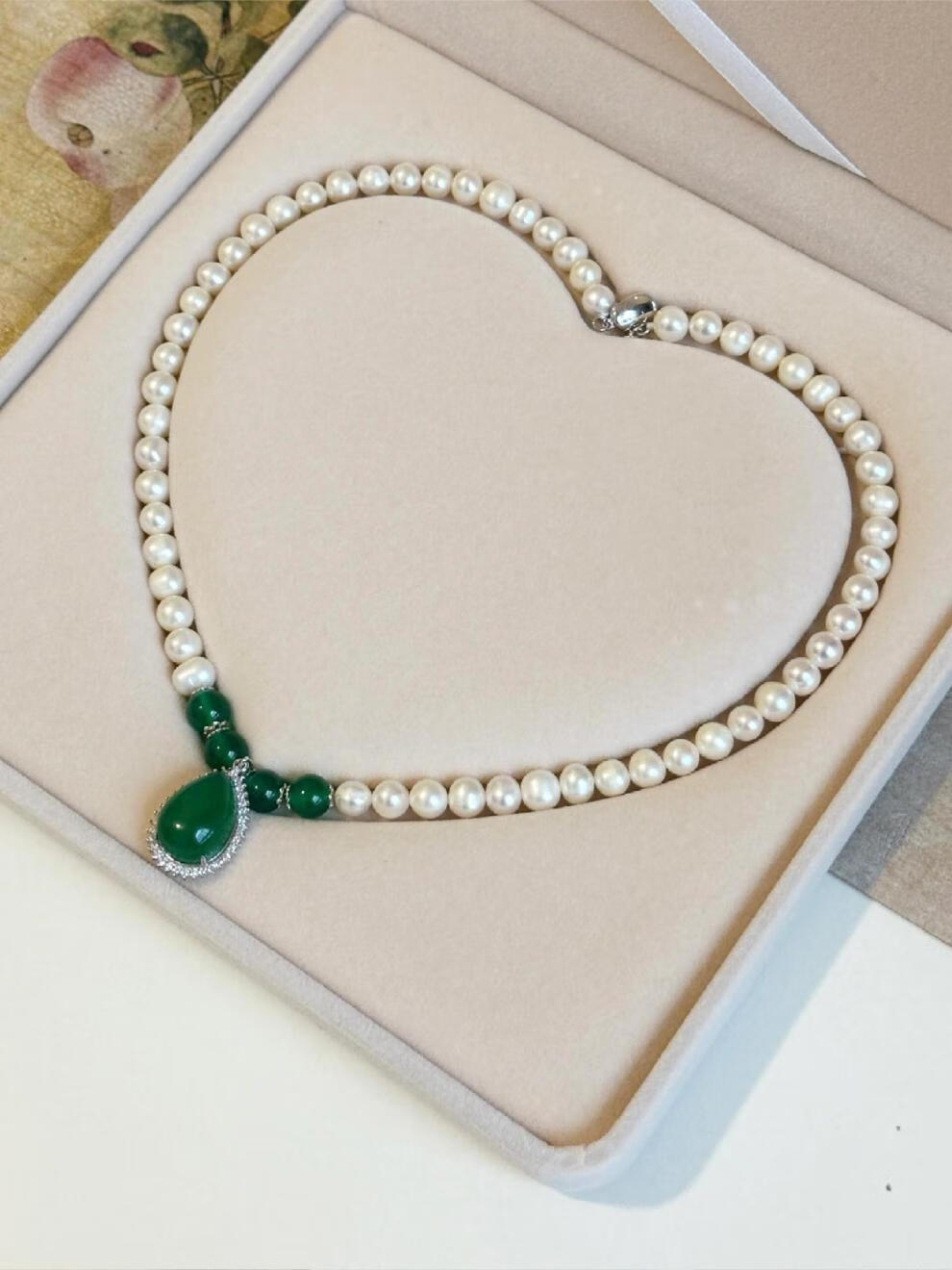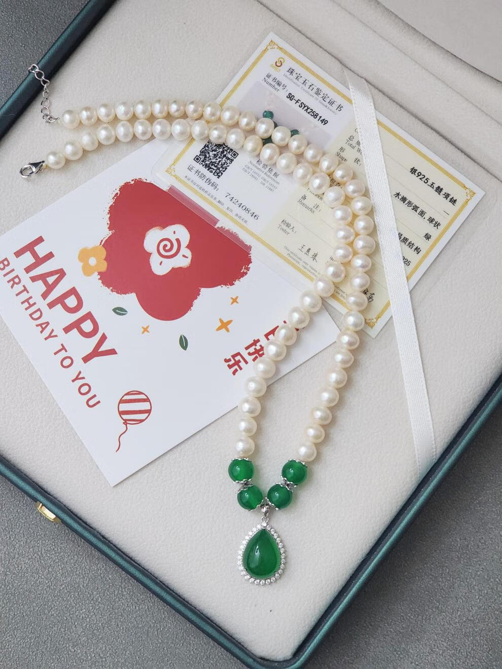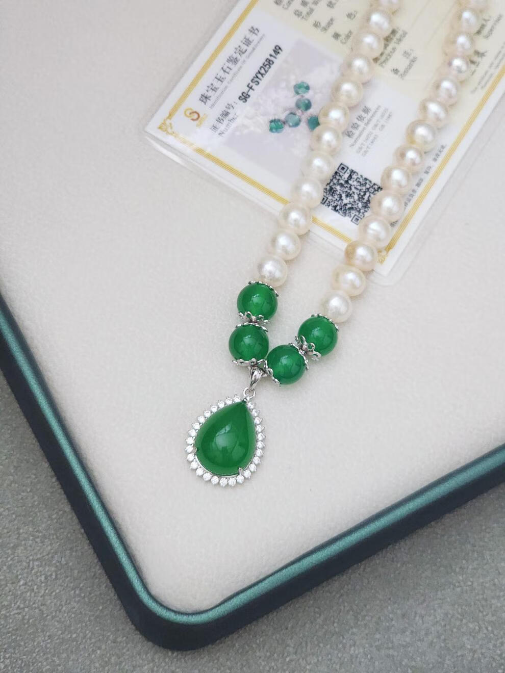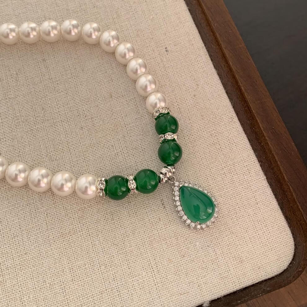 Fat Donglai's same romantic pearl pendant, natural necklace, mother's style, round crystal, elder sister's birthday, water drop agate + necklace 8-9mm 45CM