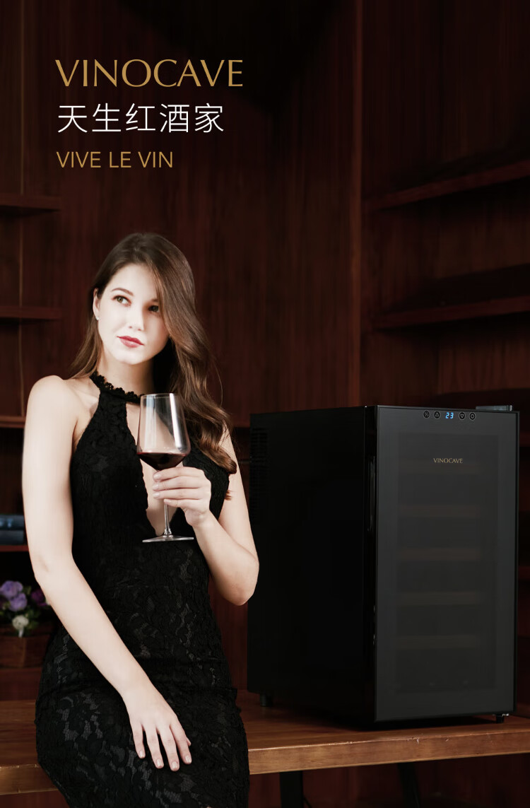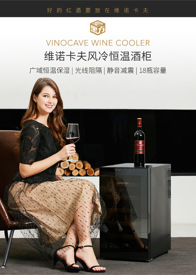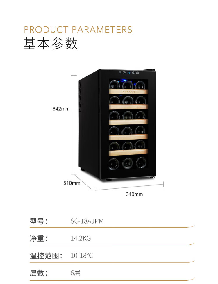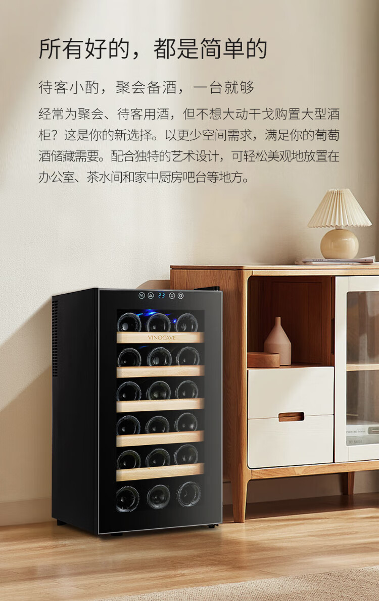 Vinocave wine cabinet constant temperature wine cabinet constant humidity small mini home living room white wine foreign wine wine glass beech wood shelf model SC-18AJPM- 18 bottles