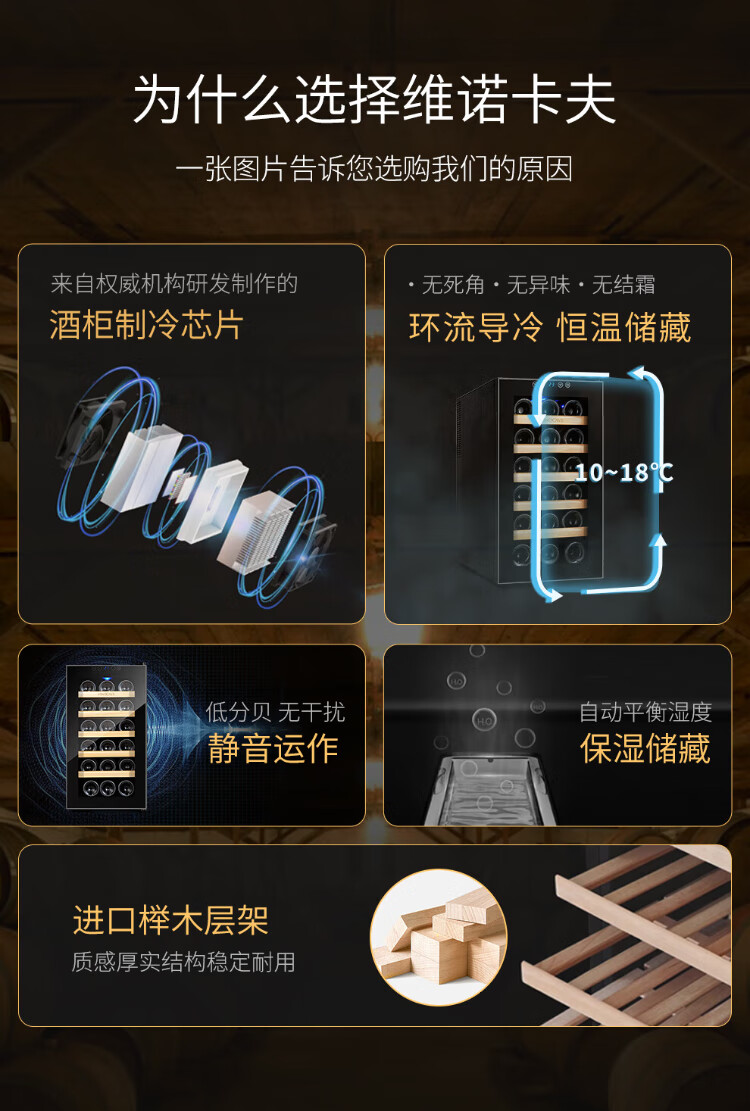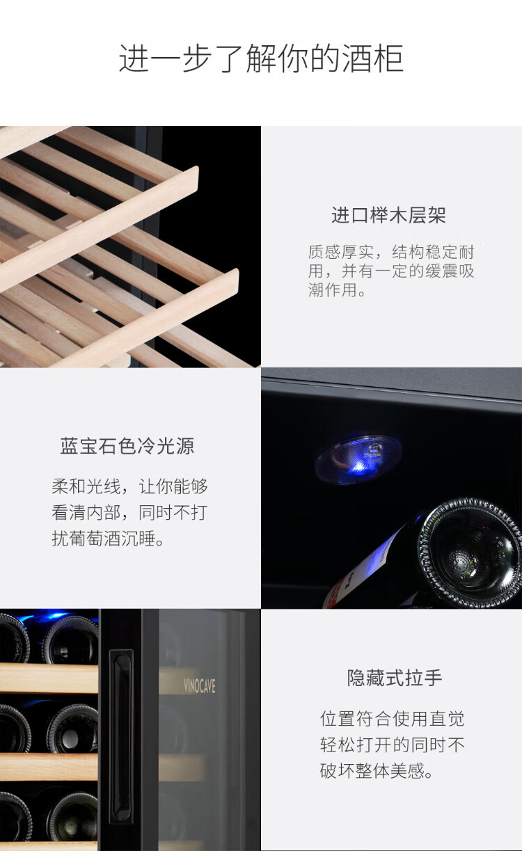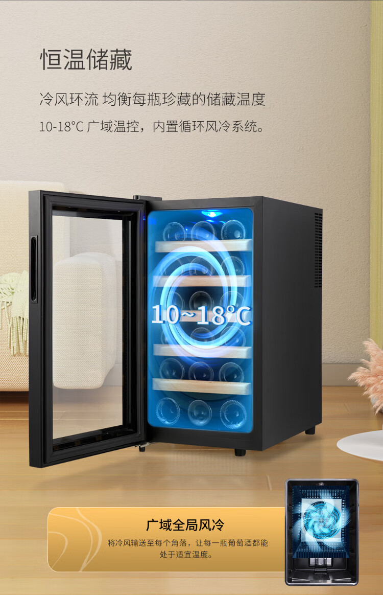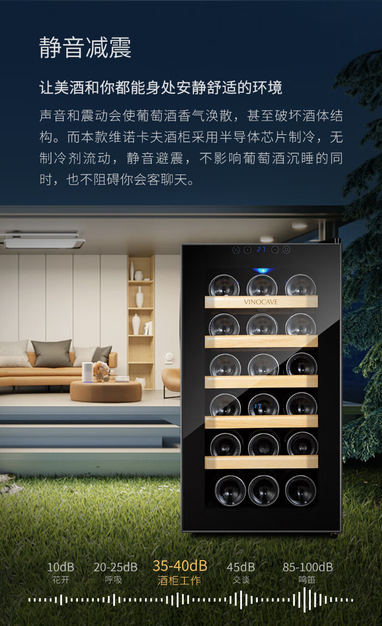 Vinocave wine cabinet constant temperature wine cabinet constant humidity small mini home living room white wine foreign wine wine glass beech wood shelf model SC-18AJPM- 18 bottles