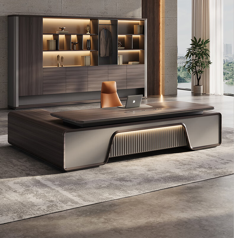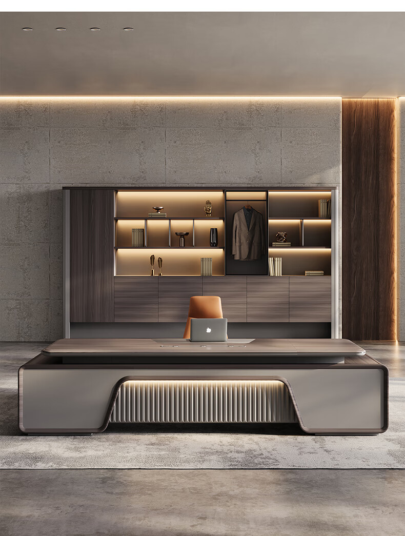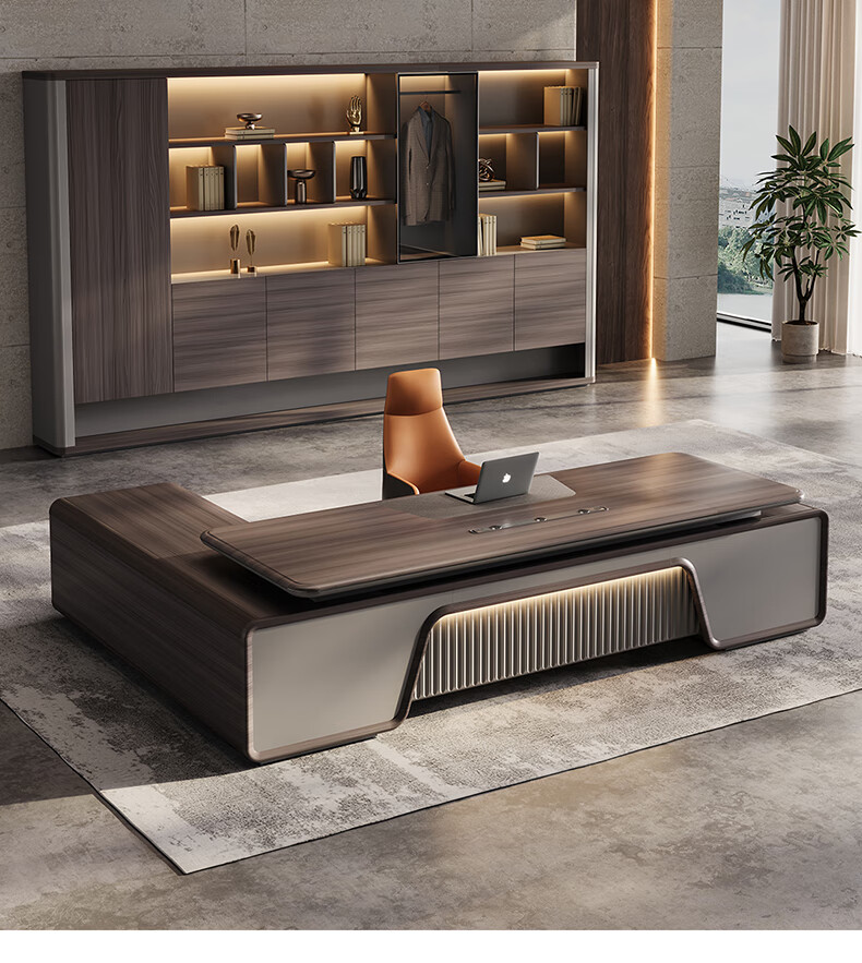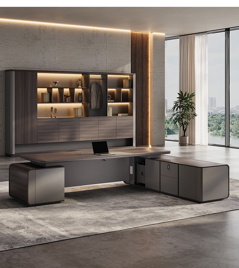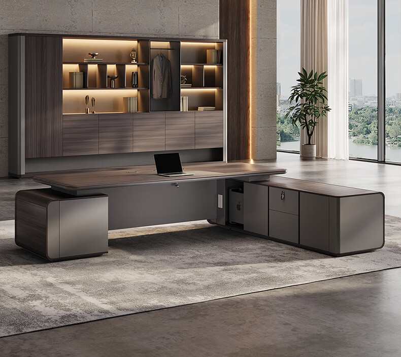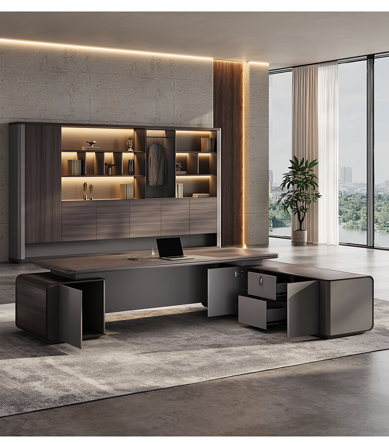 Aosenming boss desk desk light luxury chairman executive desk high-end leadership office furniture president desk workbench 2.4 meters double cabinet boss desk