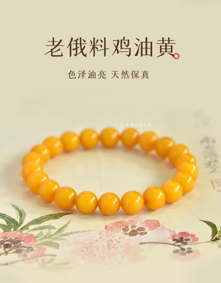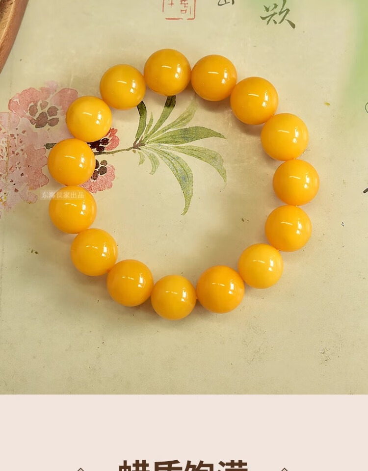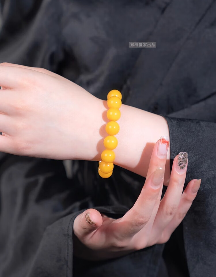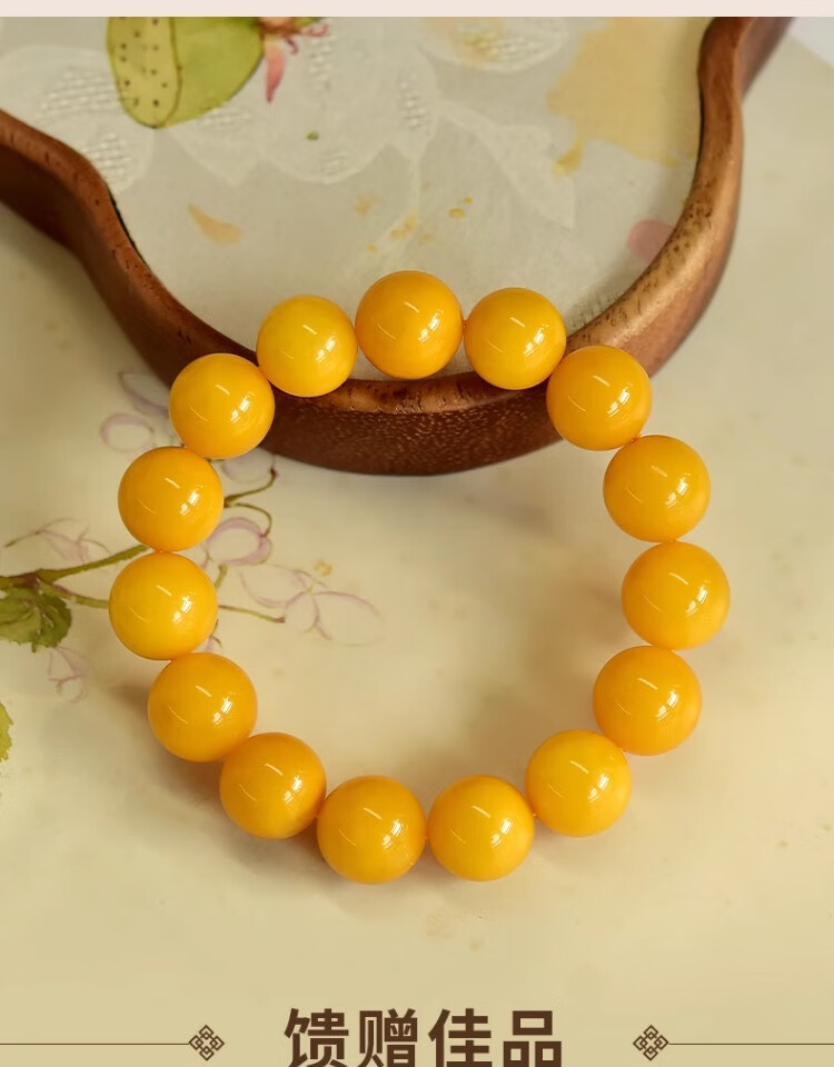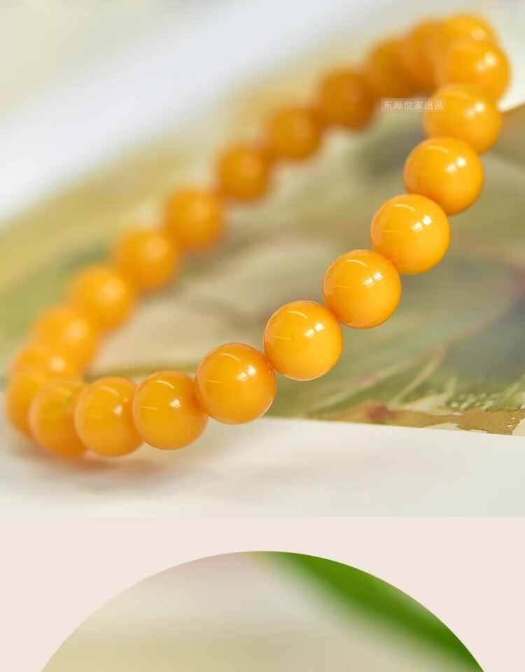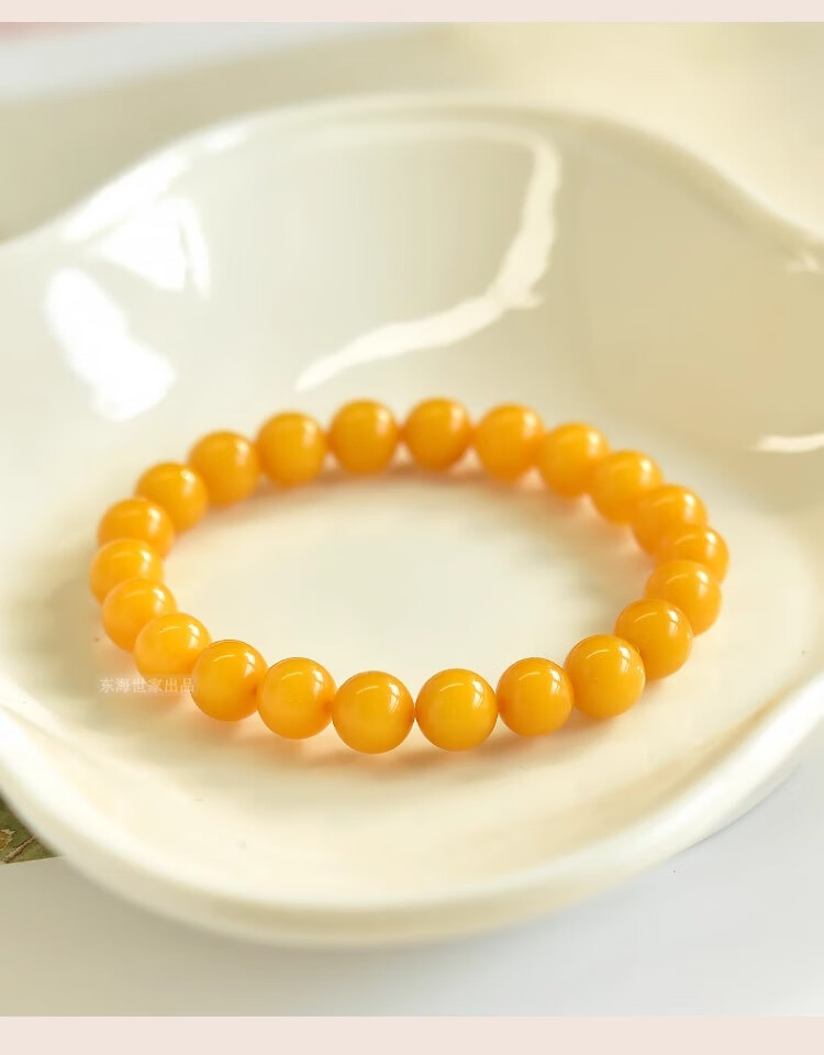 Ruoximeng beeswax bracelet for men and women, East China Sea yellow crystal, agate, jade, loose beads, amber raw stone, chicken oil yellow beeswax bracelet, collection grade chicken oil yellow, about 5mm
