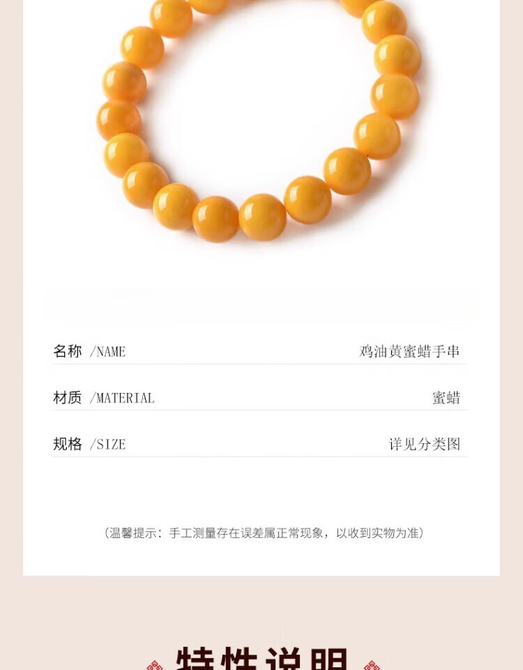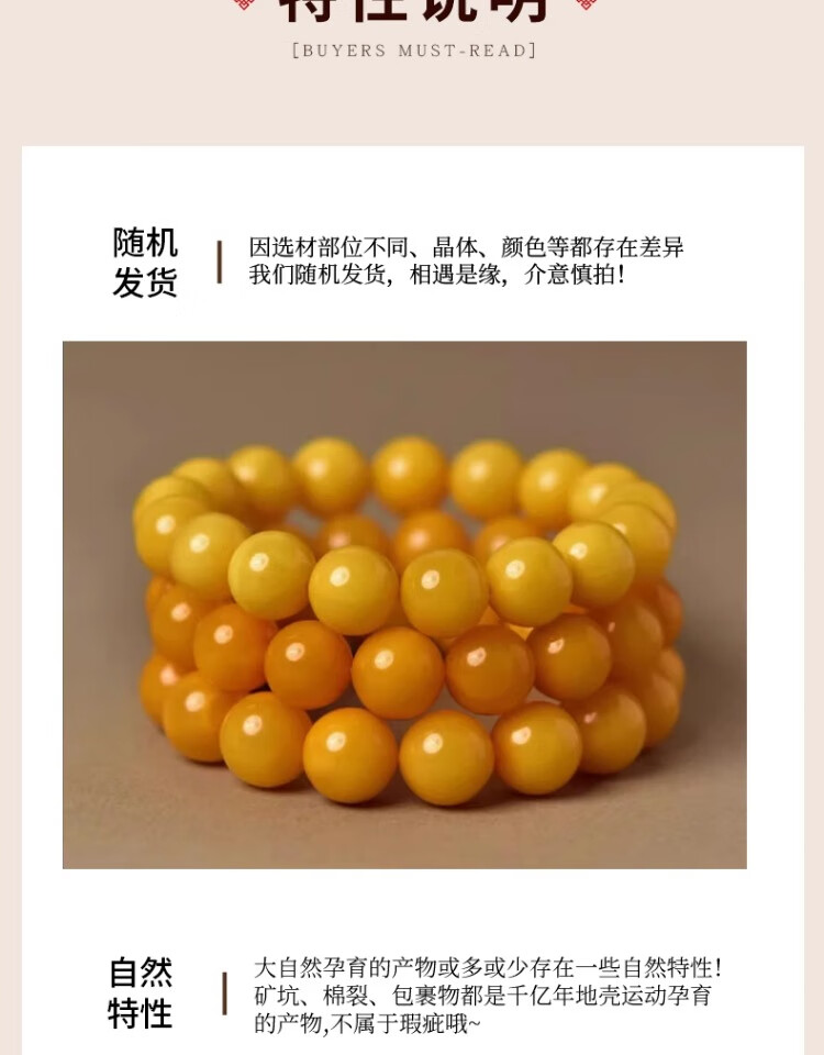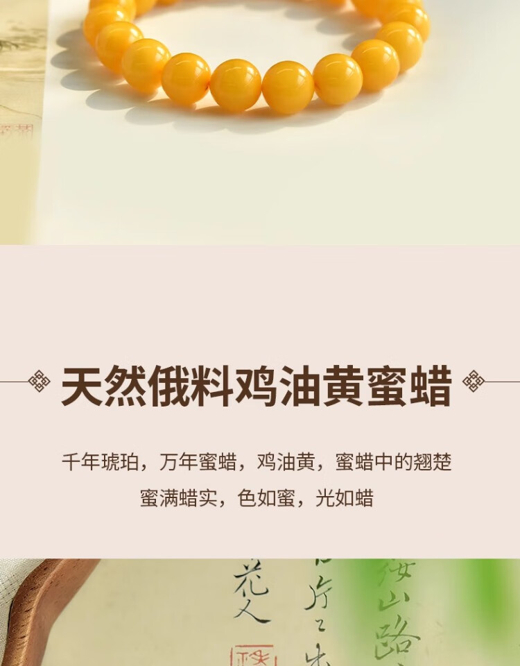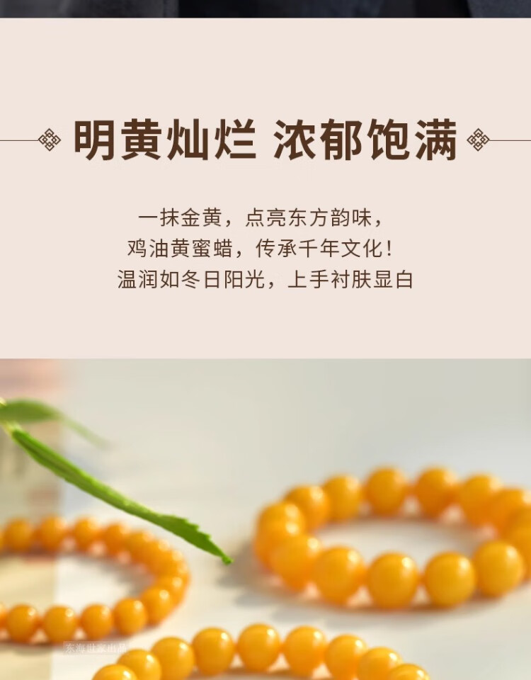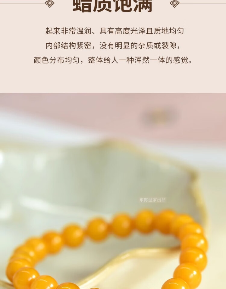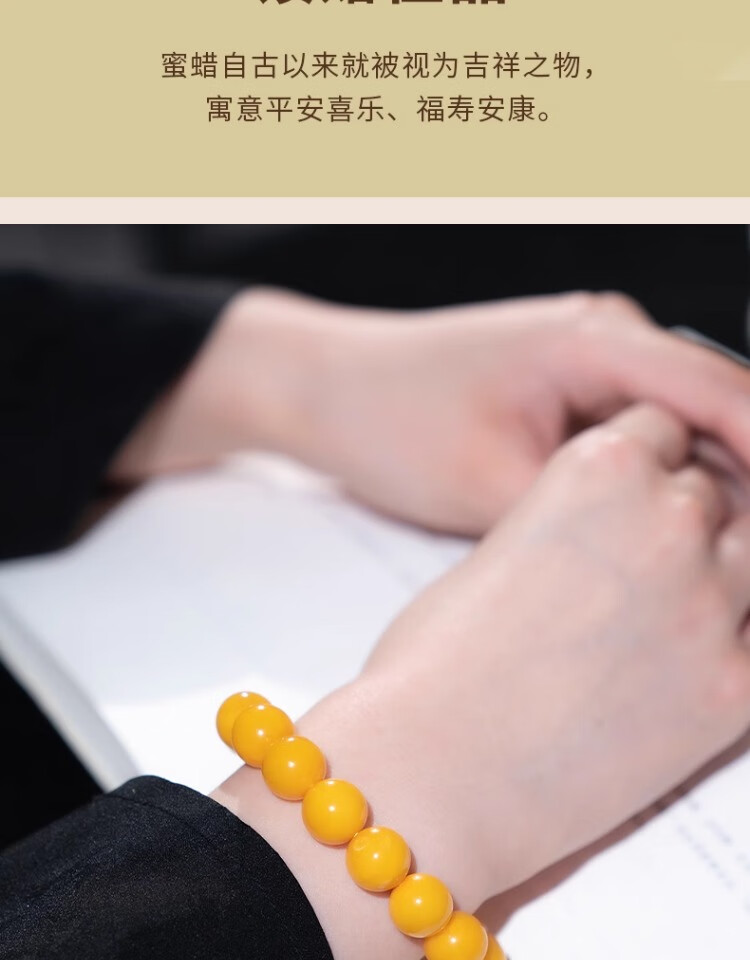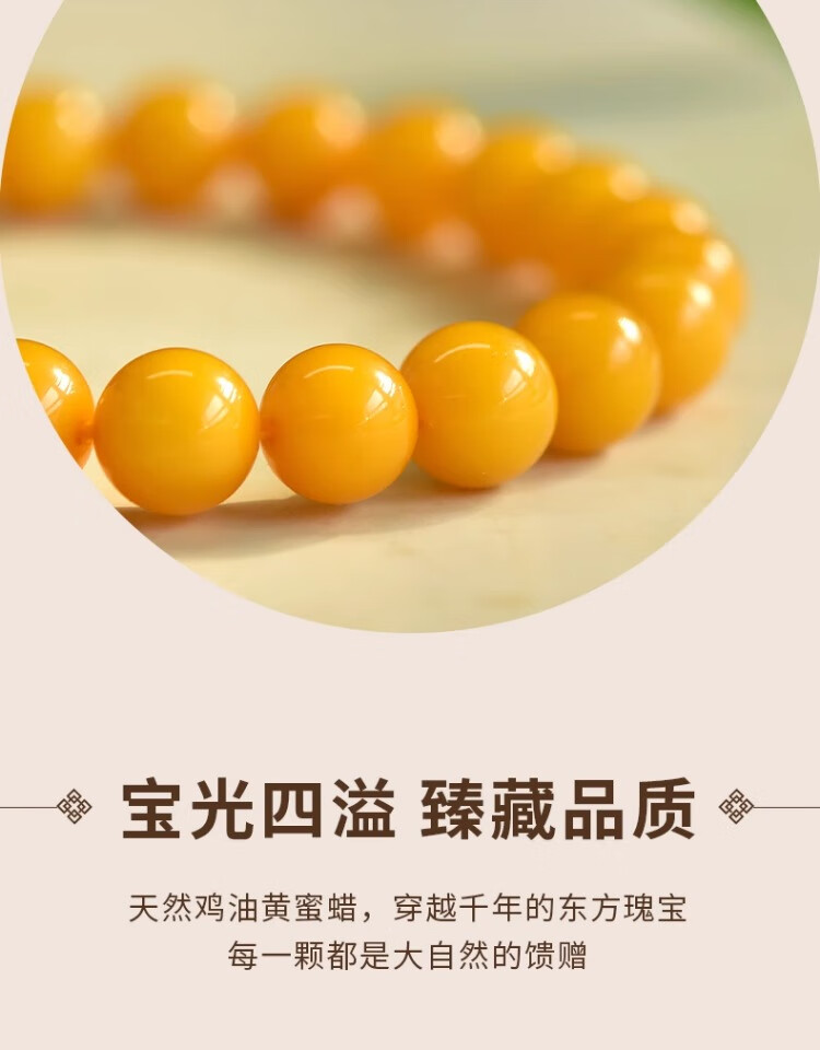 Ruoximeng beeswax bracelet for men and women, East China Sea yellow crystal, agate, jade, loose beads, amber raw stone, chicken oil yellow beeswax bracelet, collection grade chicken oil yellow, about 5mm