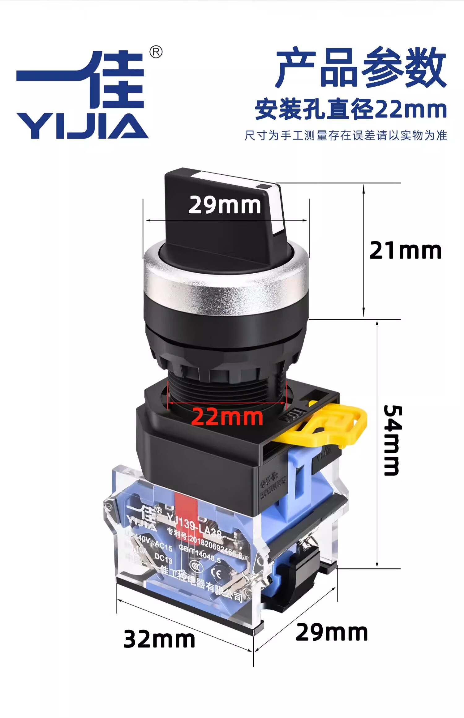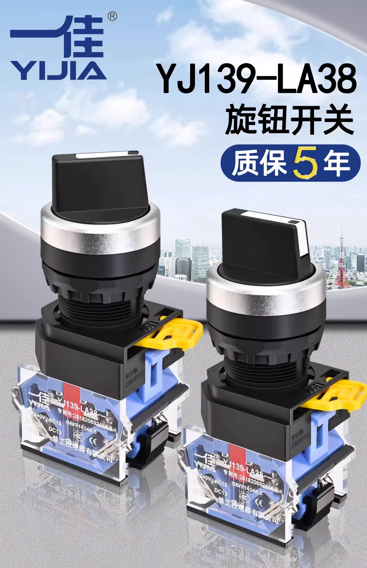 Yue Changsheng Yijia LA38-20X3 three-speed self-locking selector switch LA38-11X2 second-speed knob open second-speed 1 open 1 closed (reset)