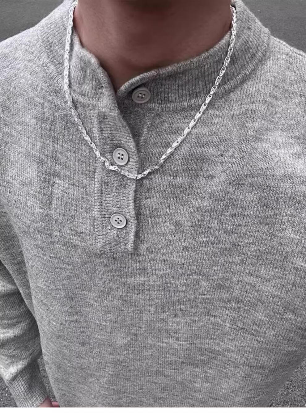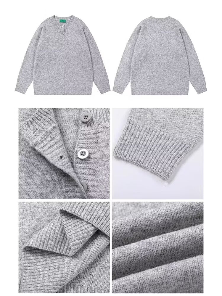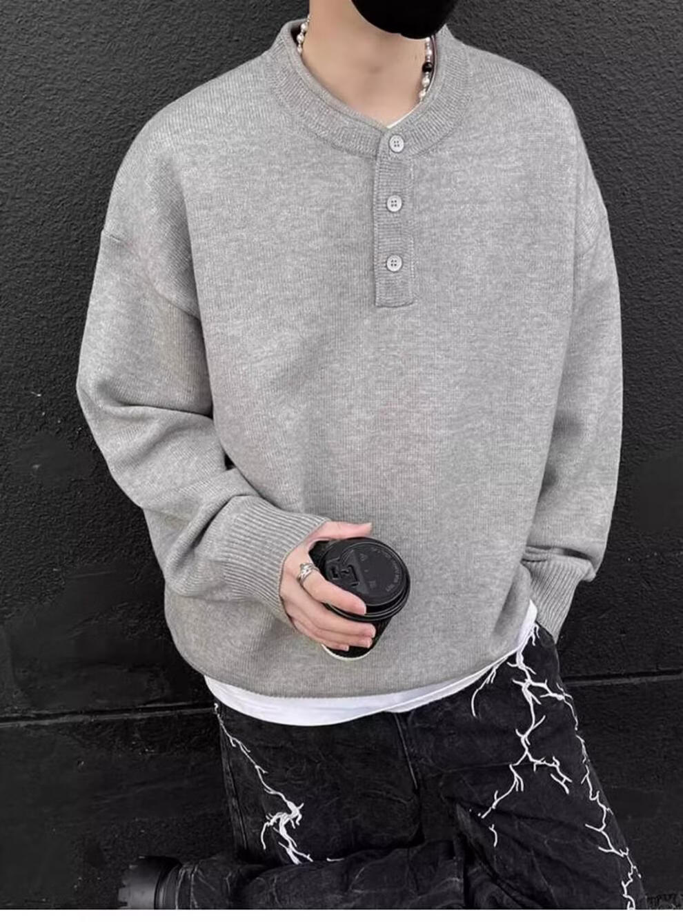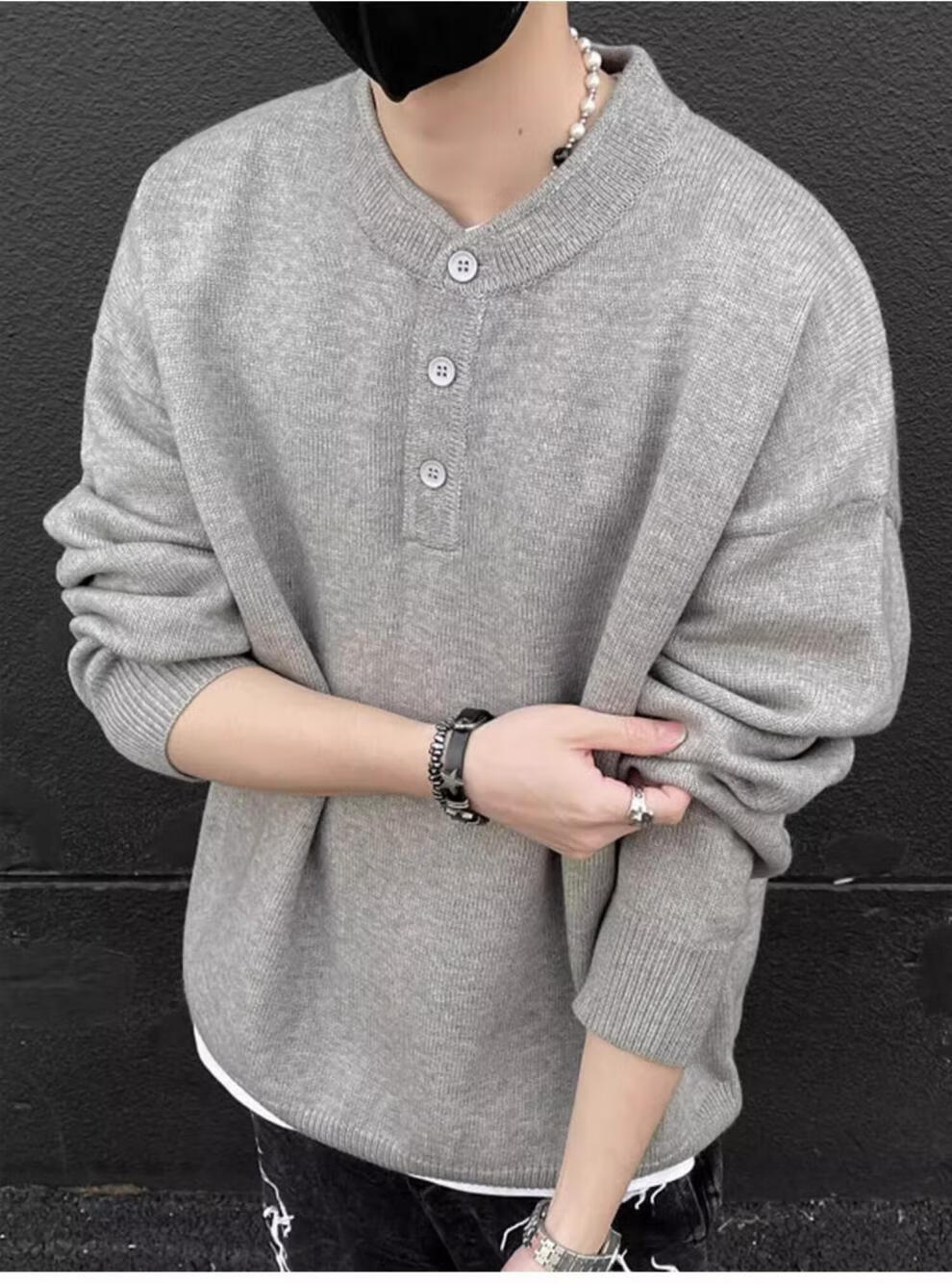An Chuxia Gray American Henley Collar Knitted Sweater Men's Long Sleeve Lazy Style Cleanfit Bottoming Sweater Jacket Light Gray XL