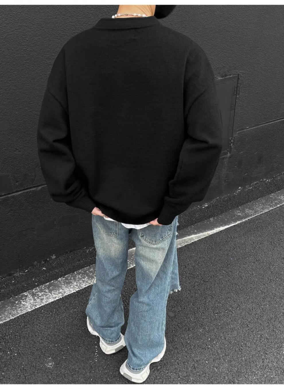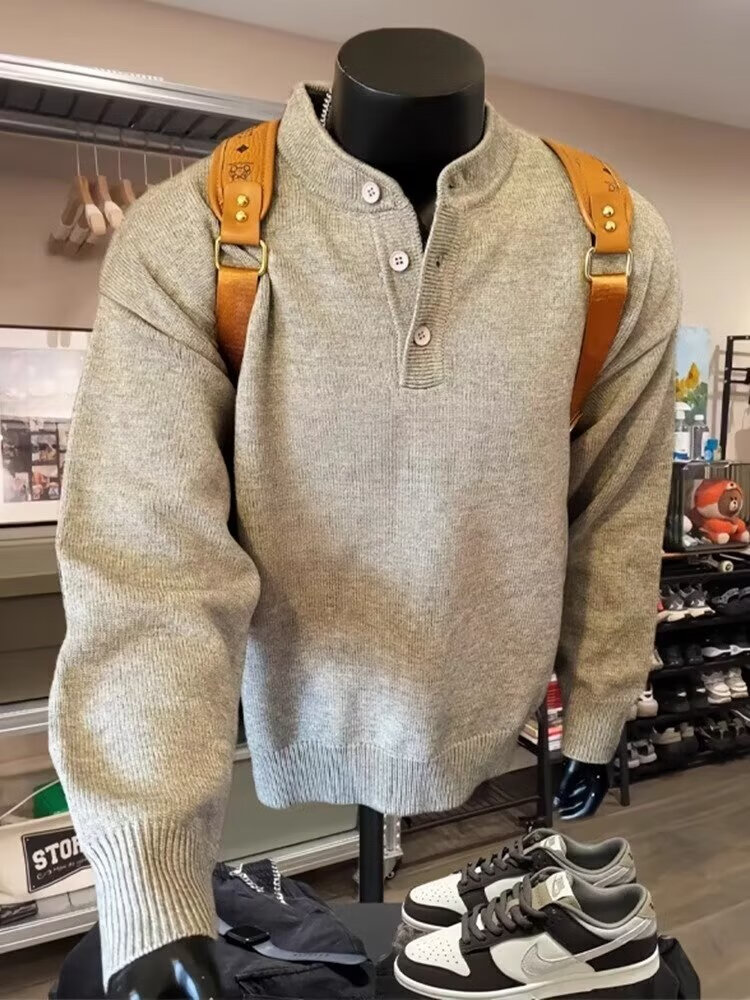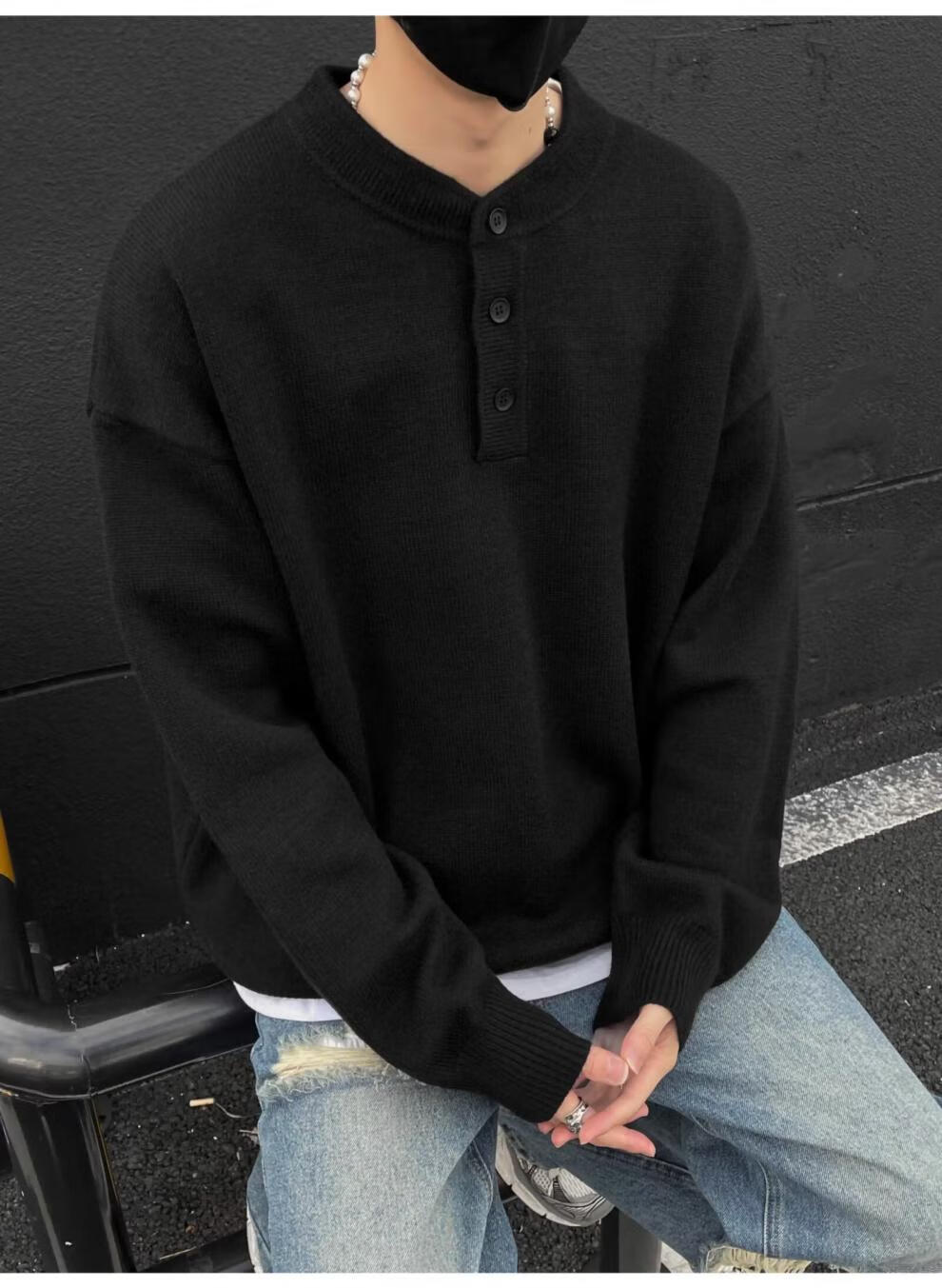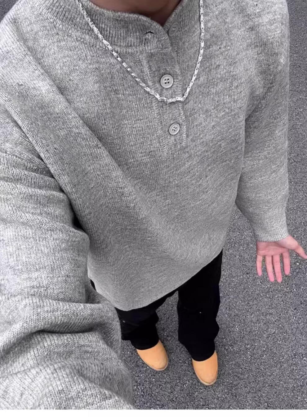 An Chuxia Gray American Henley Collar Knitted Sweater Men's Long Sleeve Lazy Style Cleanfit Bottoming Sweater Jacket Light Gray XL