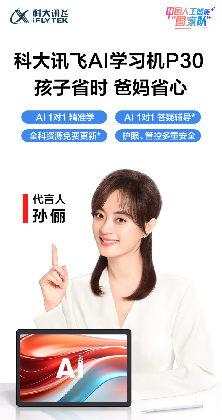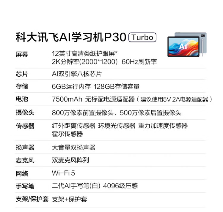IFLYTEK Artificial Intelligence Learning Machine P30Turbo Primary School Junior High School High School AI Accurate Question Answering Tutoring Students Tablet Learning Machine Eye Protection Tutoring Machine Point Reading Early Education Machine New Product Launch P30Turbo Learning Machine