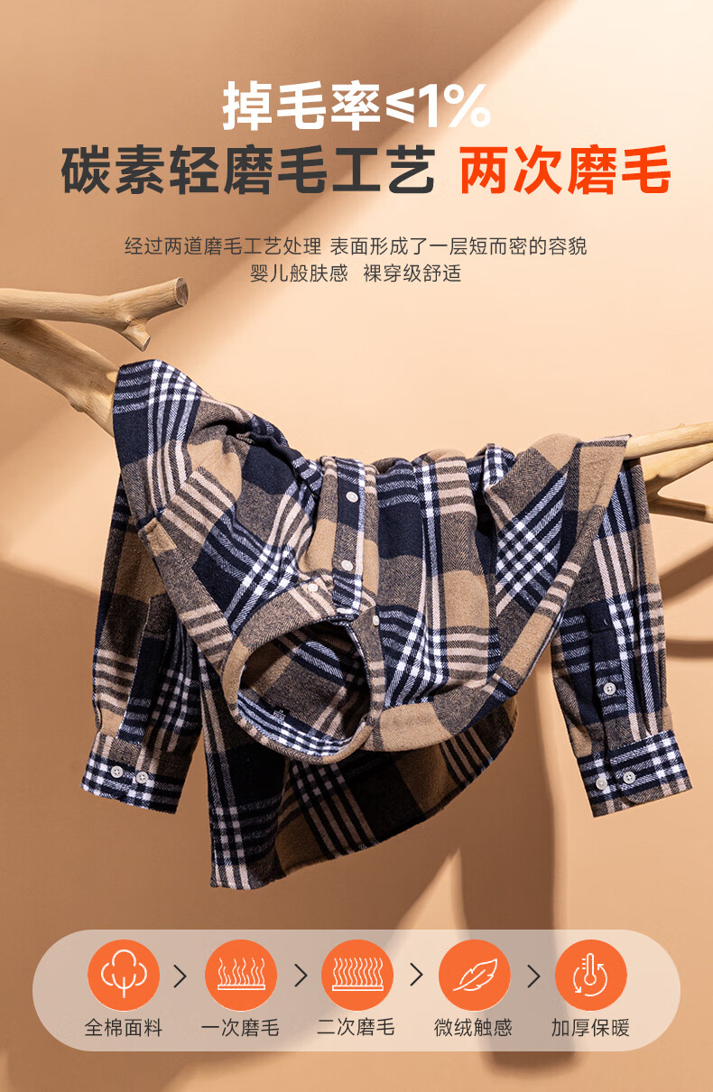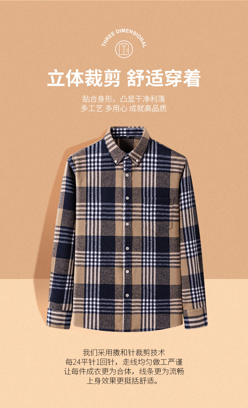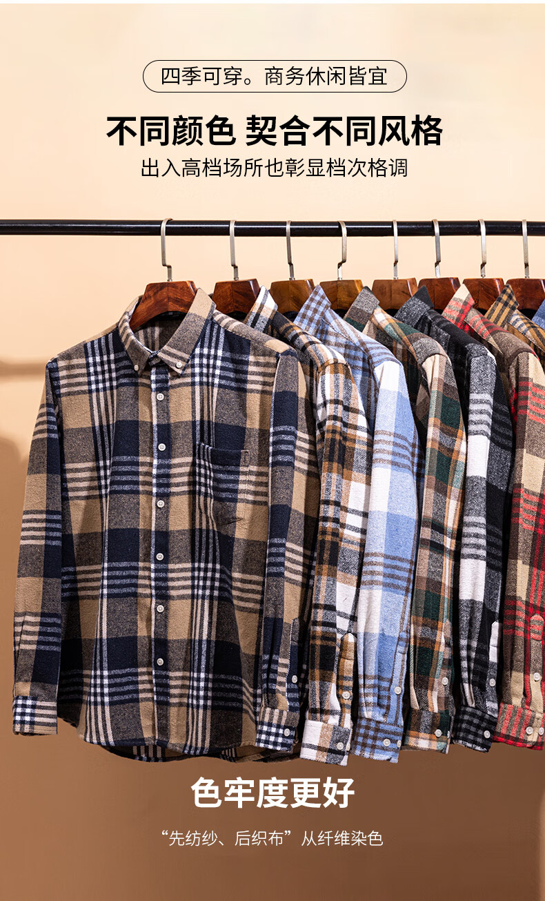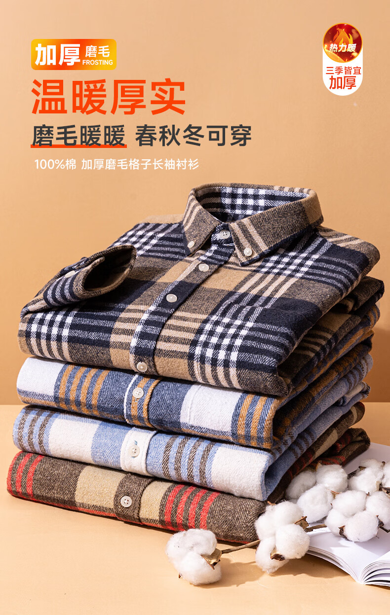 100% pure cotton thickened brushed plaid men's long-sleeved shirt casual loose large size autumn and winter warm and anti-lint 28-8 41 recommended 125-140 Jin Jin equals 0.5 kg
