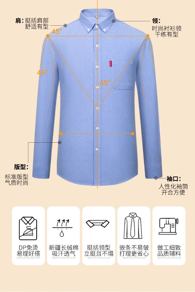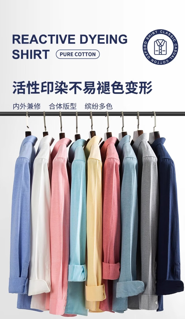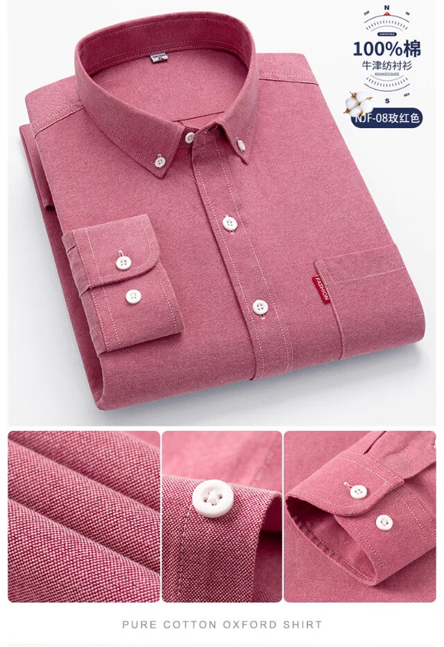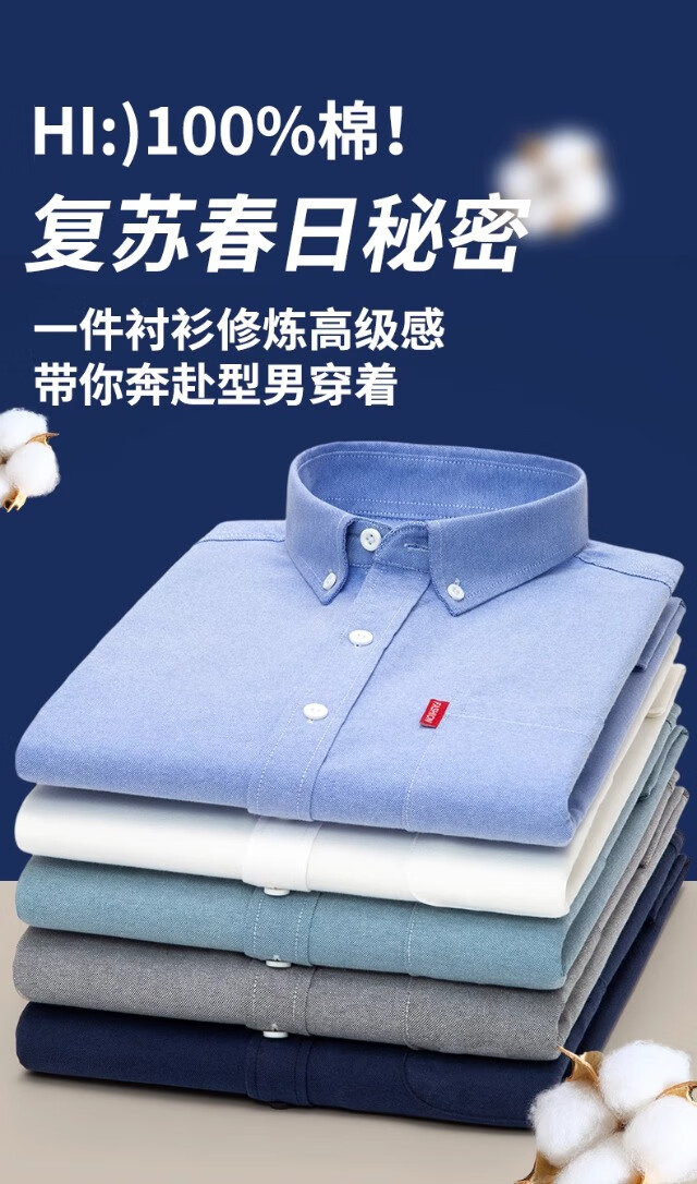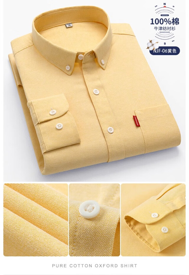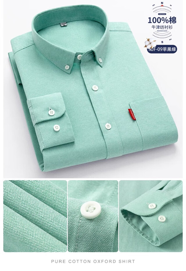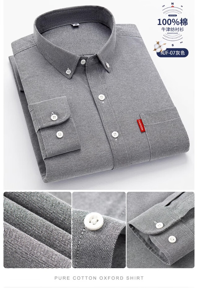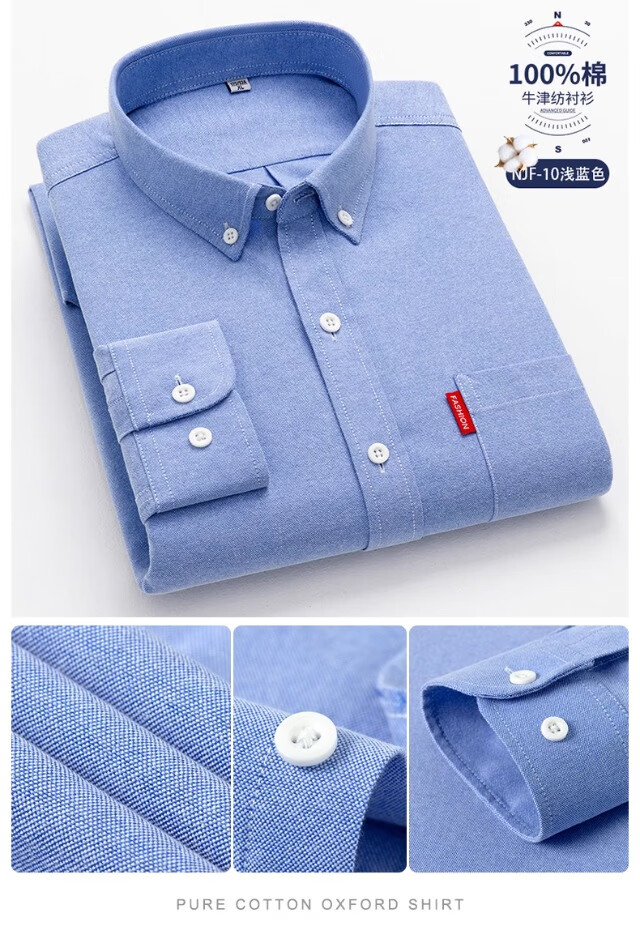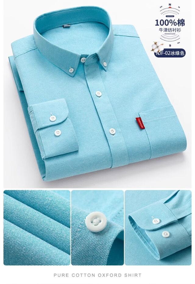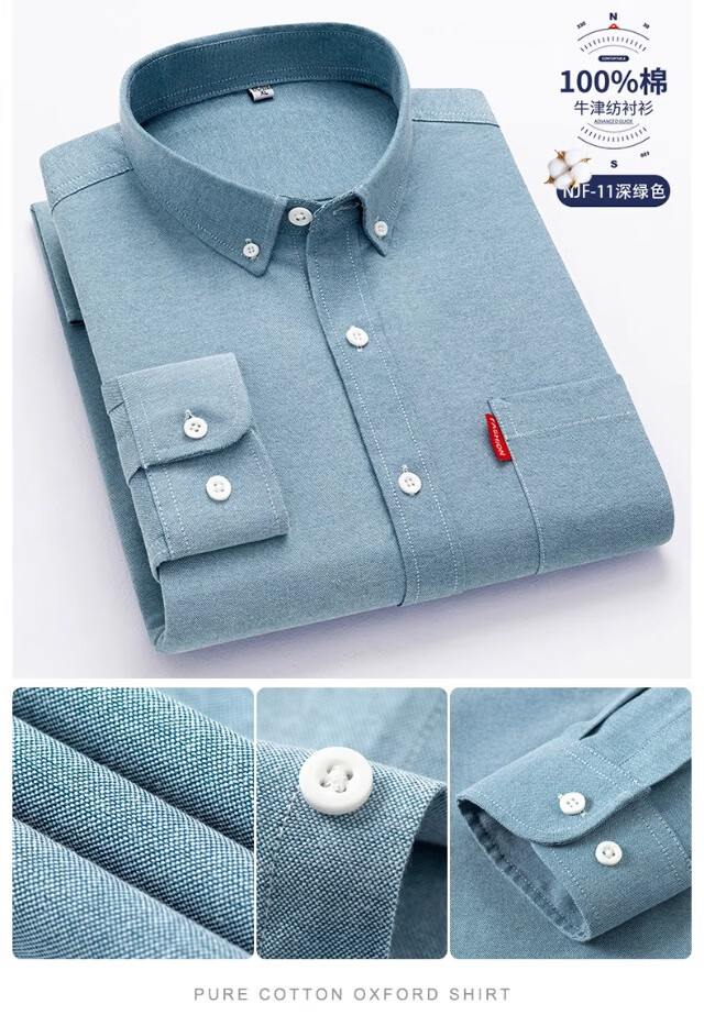 Мужская оксфордская рубашка из чистого хлопка с длинными рукавами, весна 2025, повседневная куртка-рубашка без глажки против морщин для людей молодого и среднего возраста 6813 Lake Blue 3XL Рекомендуется 150-160 Джин Джин равен 0,5 кг