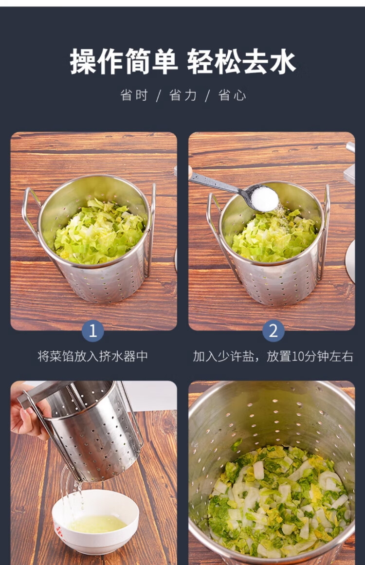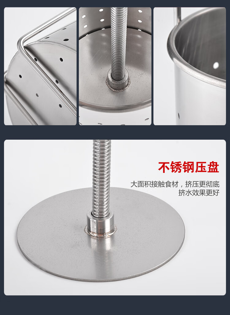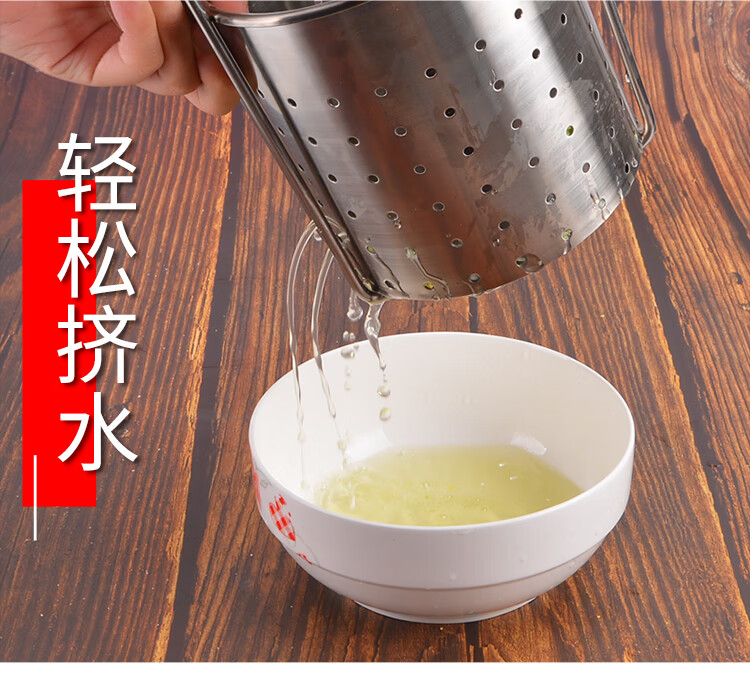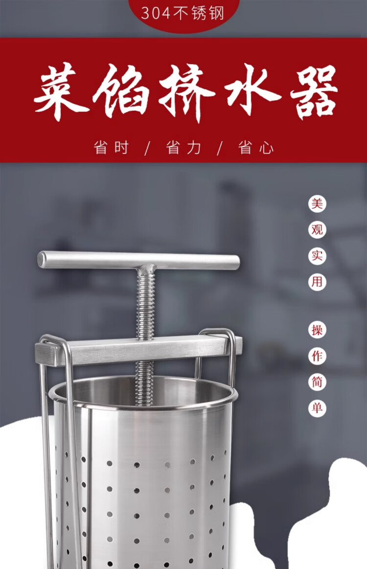 Shixishuo 304 stainless steel vegetable filling water squeezer household large manual commercial artifact press kitchen vegetable water squeezer 3 liters diameter 14cm height 20cm