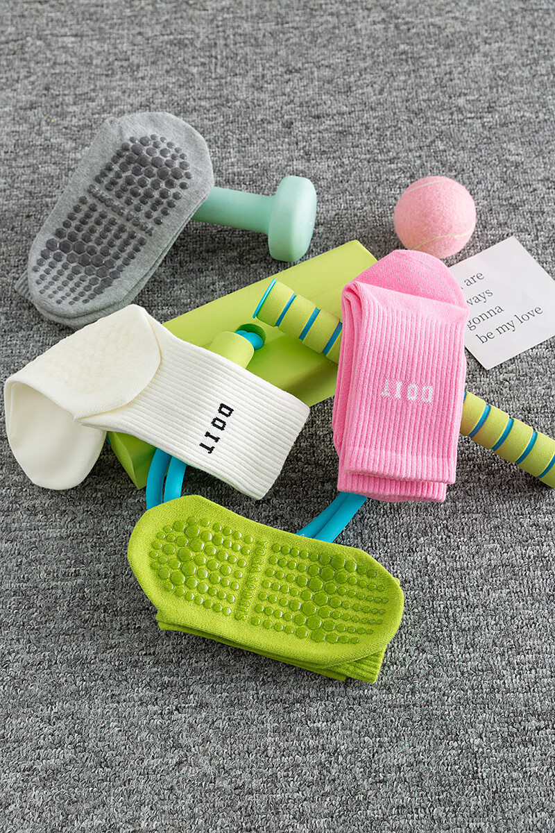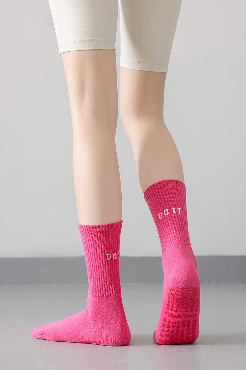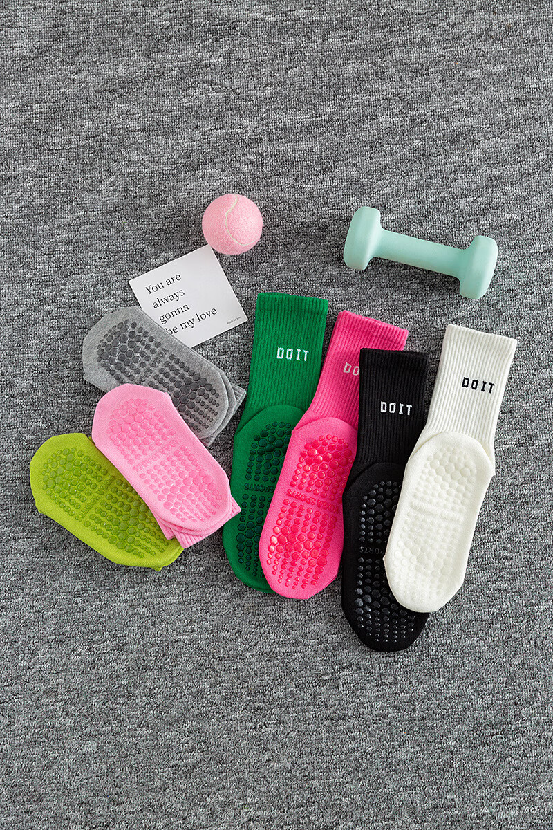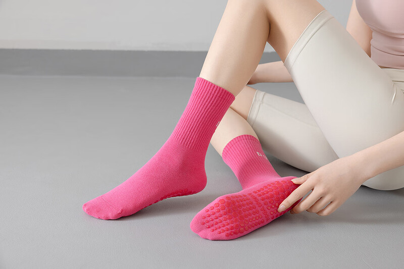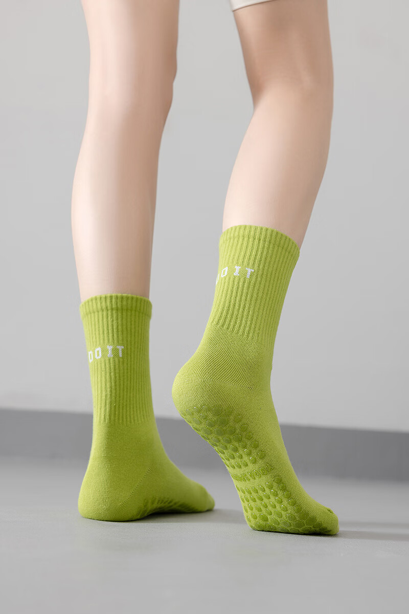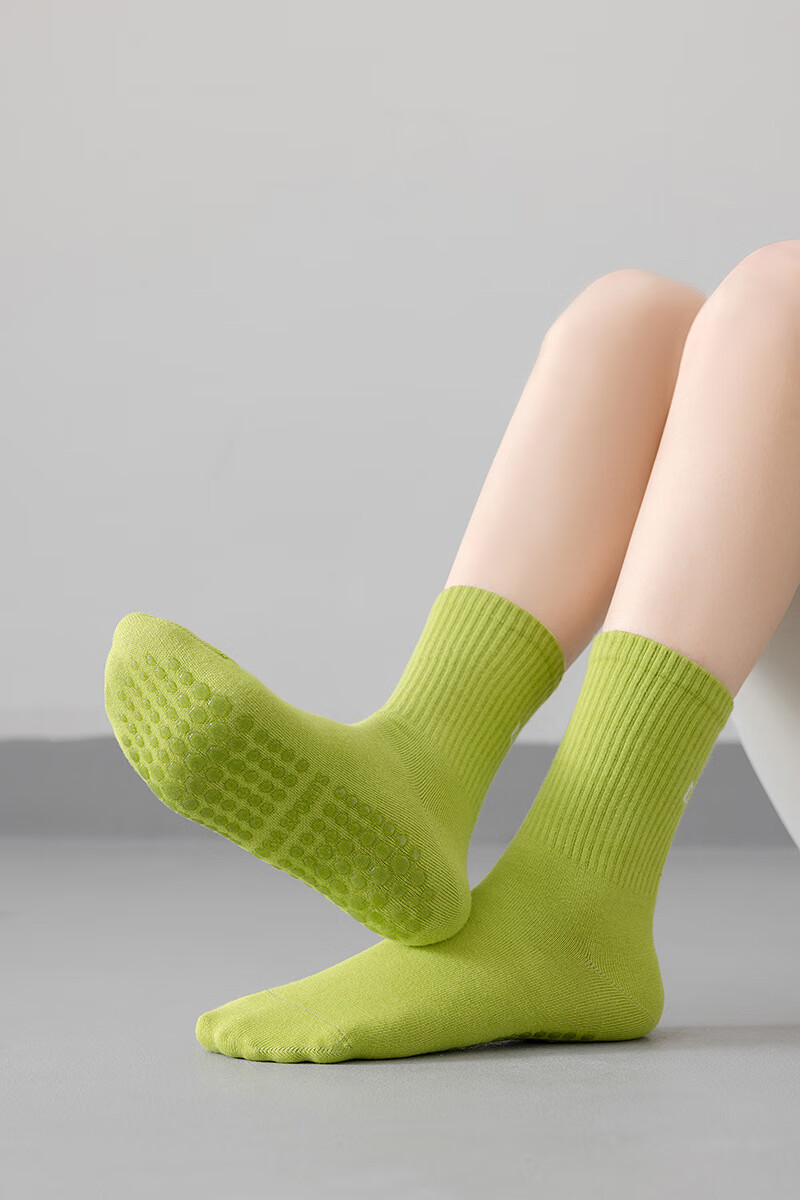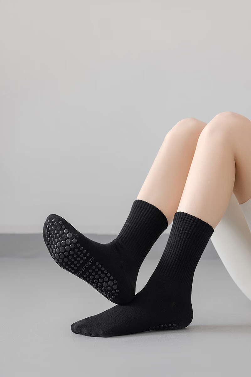Yoga socks mid-calf floor socks silicone indoor fitness Pilates women's sports socks 1 pair gray