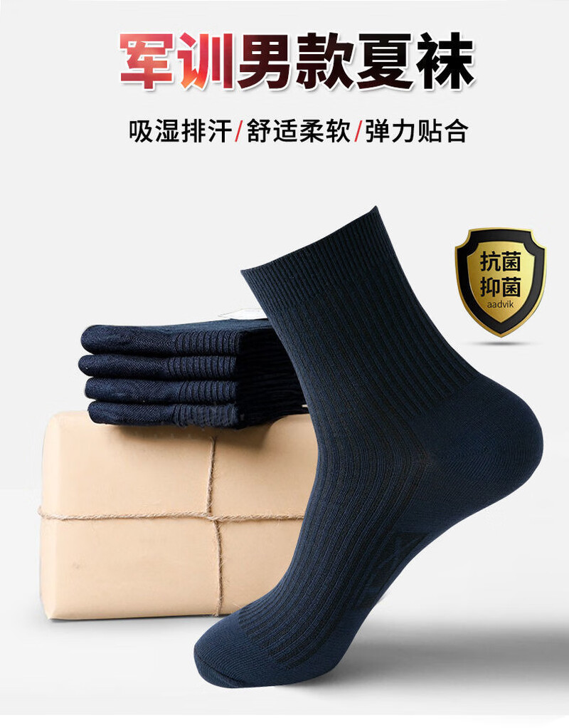 Military fan socks men's standard socks winter socks summer socks mid-calf military training navy black sports socks A30-07 5 pairs of winter socks blue