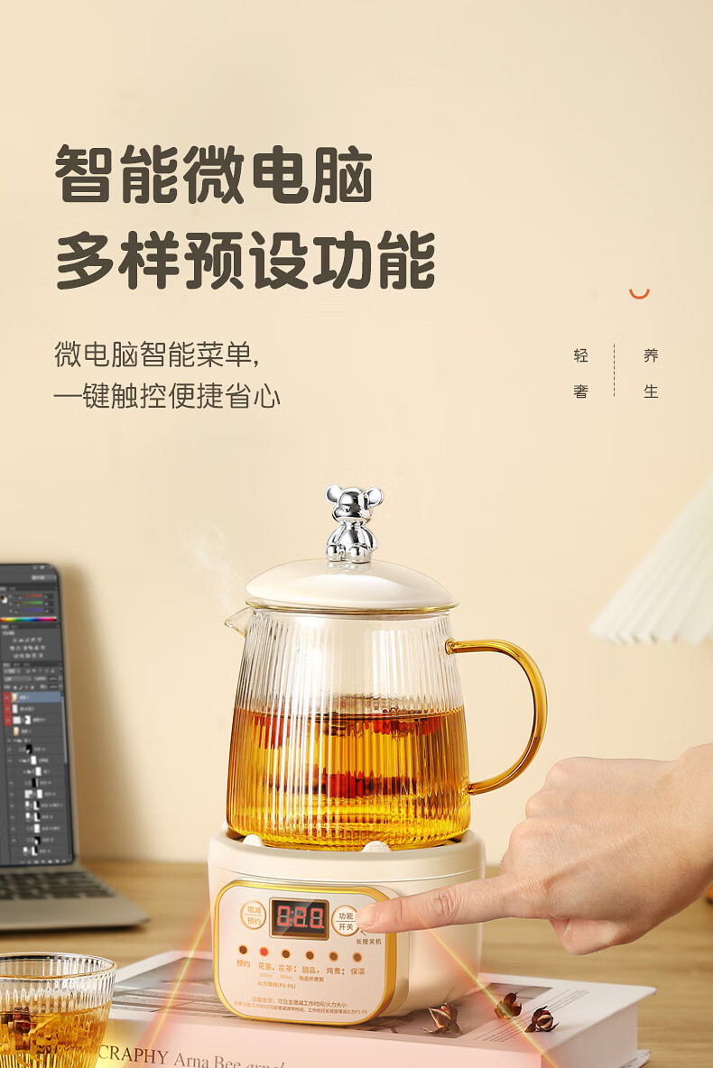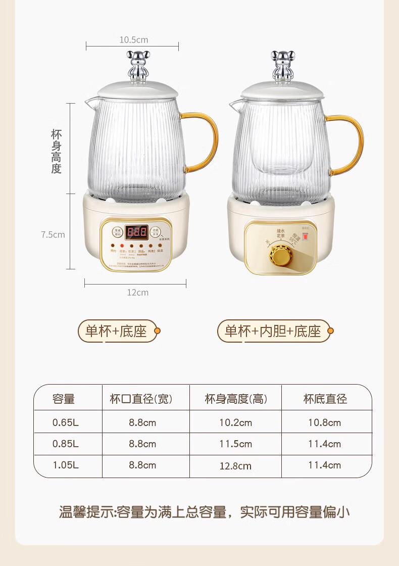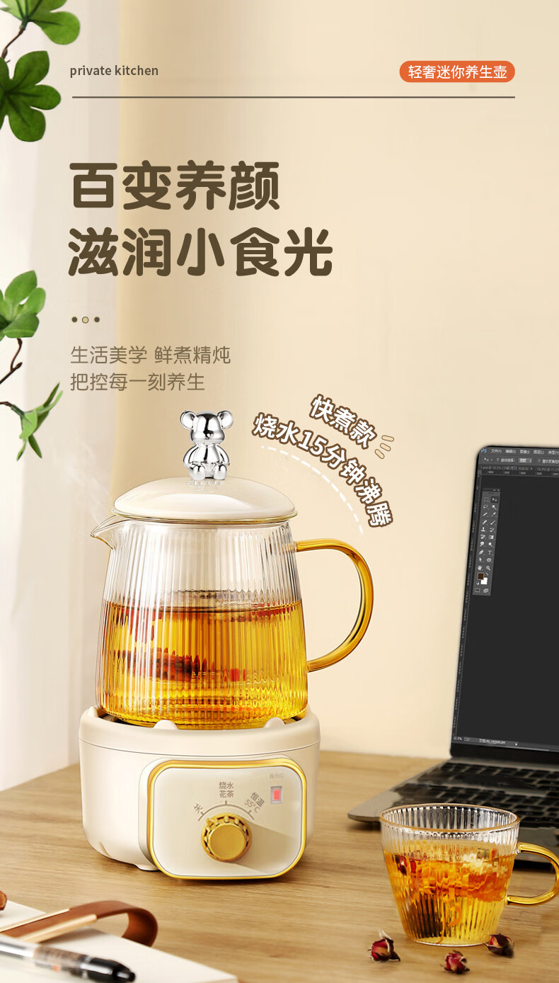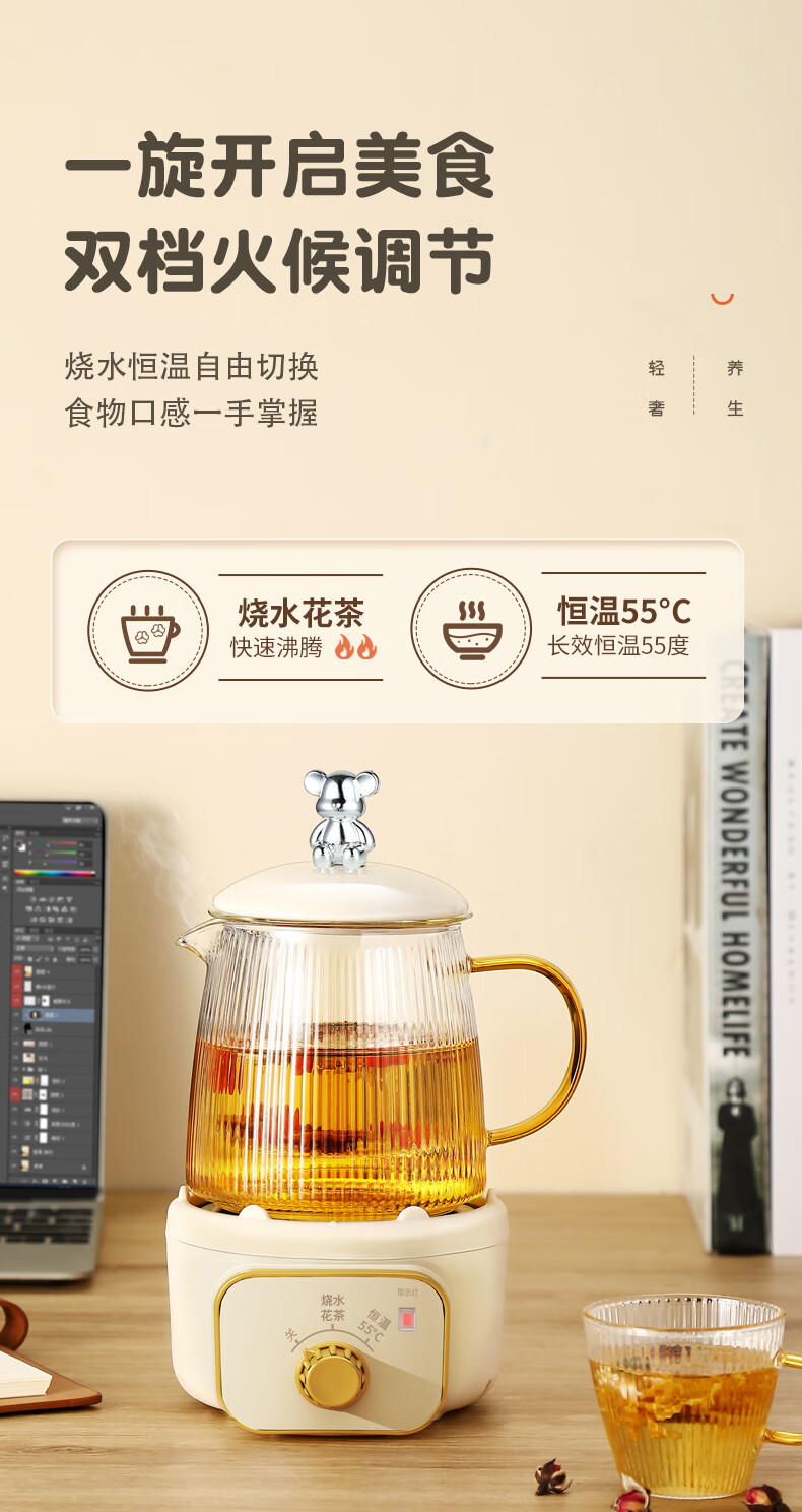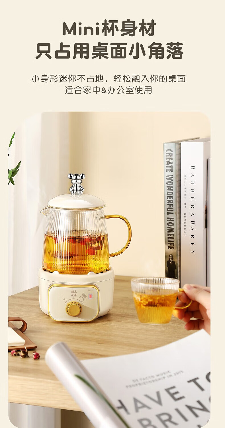 Mini fully automatic health pot tea kettle for stewing, all-in-one tea kettle, kettle, office small all-glass flower teapot, thermostatic kettle for one person, 2025 new kettle, smart model + automatic heat preservation 0.65L + glass tea leakage