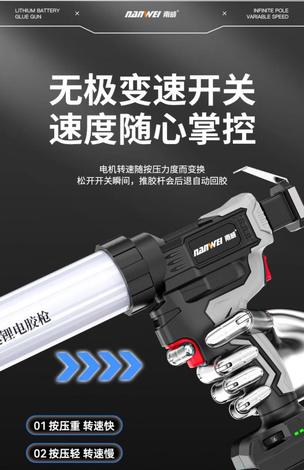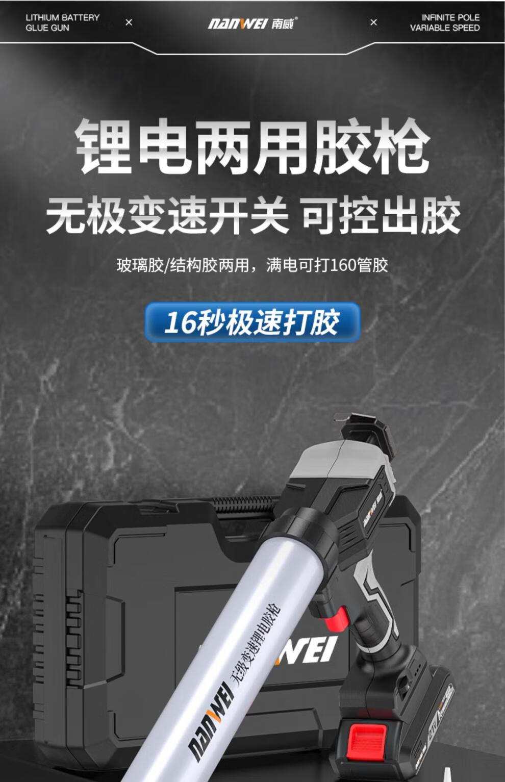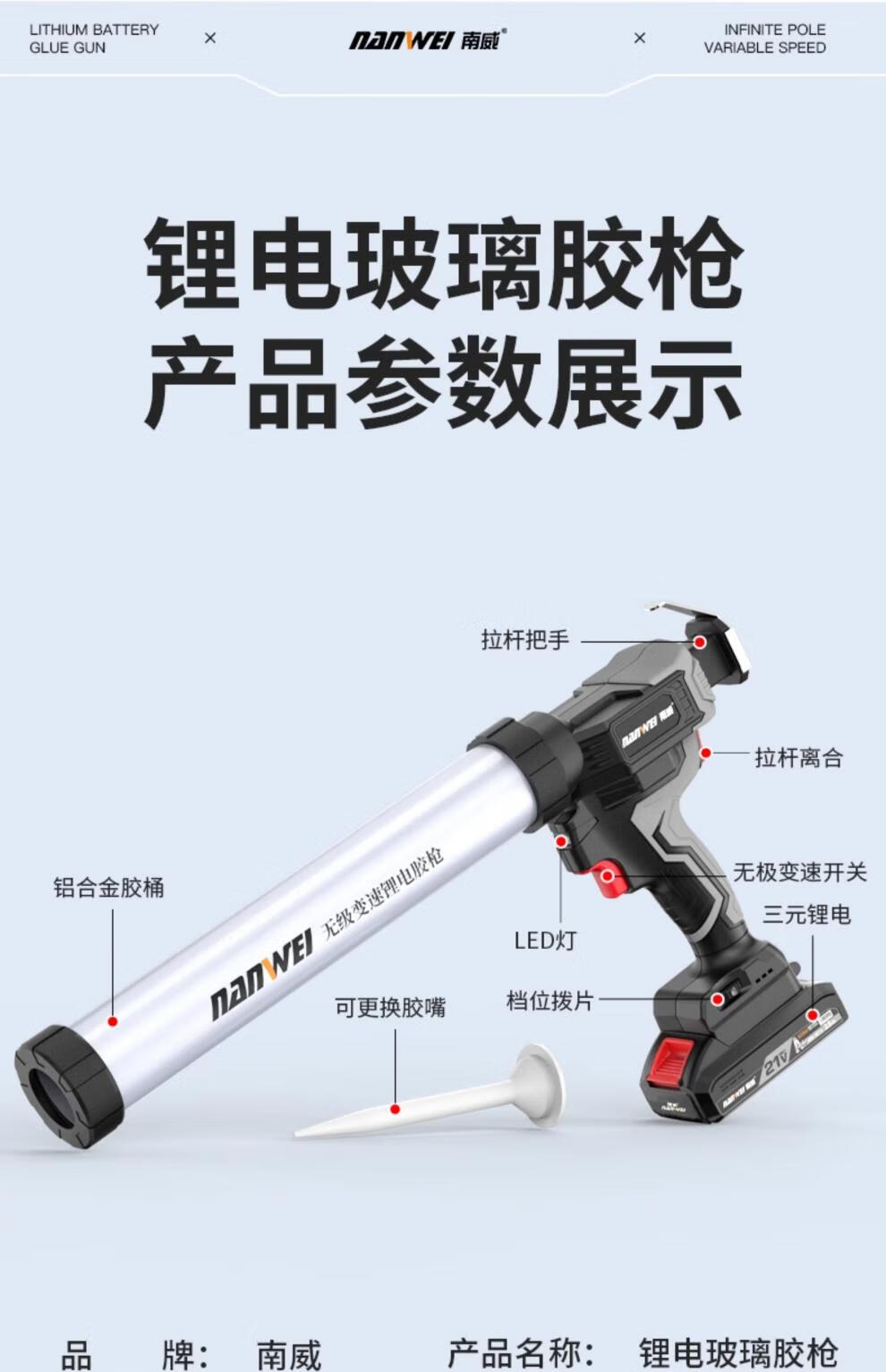 Nanwei wireless lithium glue gun household door and window glass glue structural glue soft and hard glue dual-use glue tool new product electric glue gun + brushless electric drill 5.0Ah two batteries