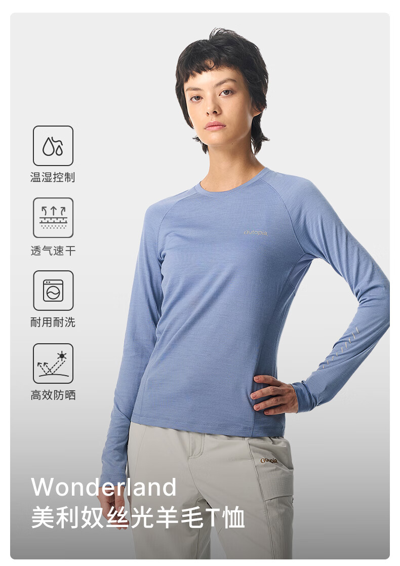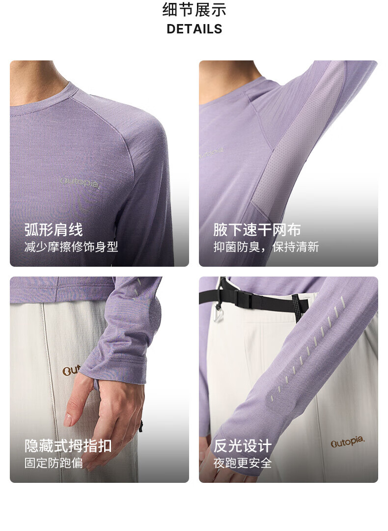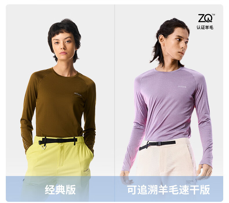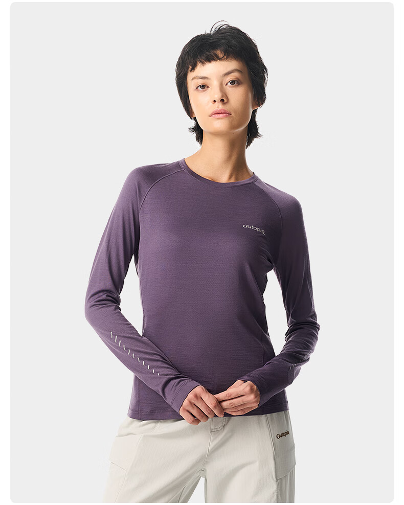 OUTOPIA Wonderland Miracle Wool Merino Mercerized Breathable Quick-Drying Outdoor Cross-Country Hiking Women's Long Sleeve Grape Purple ZQ Quick-Drying Version M