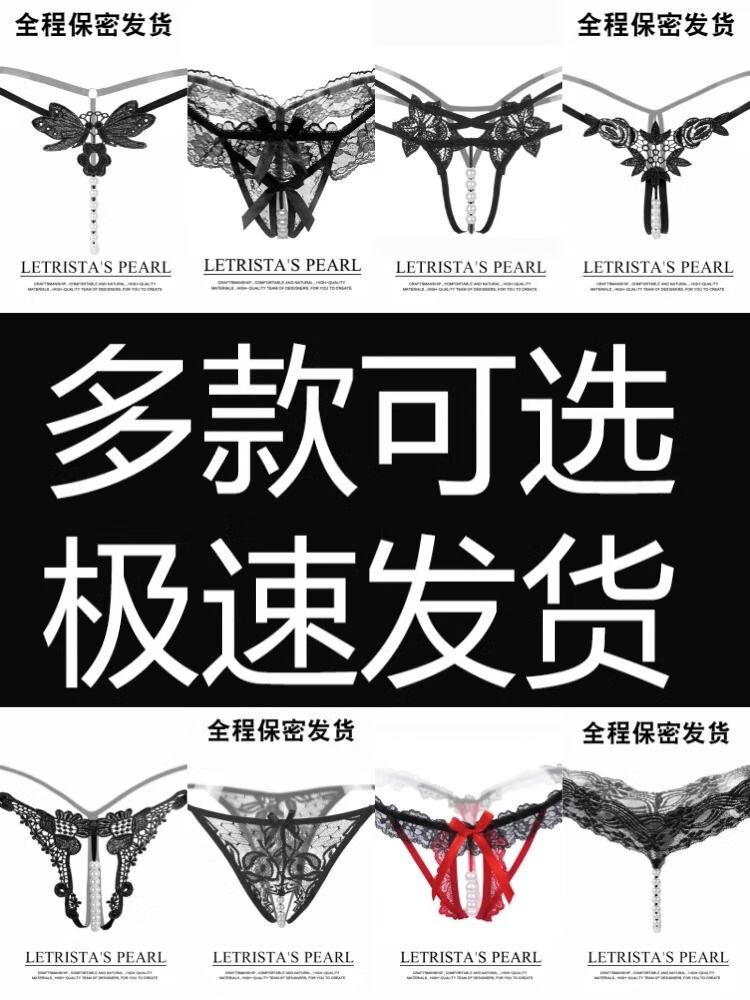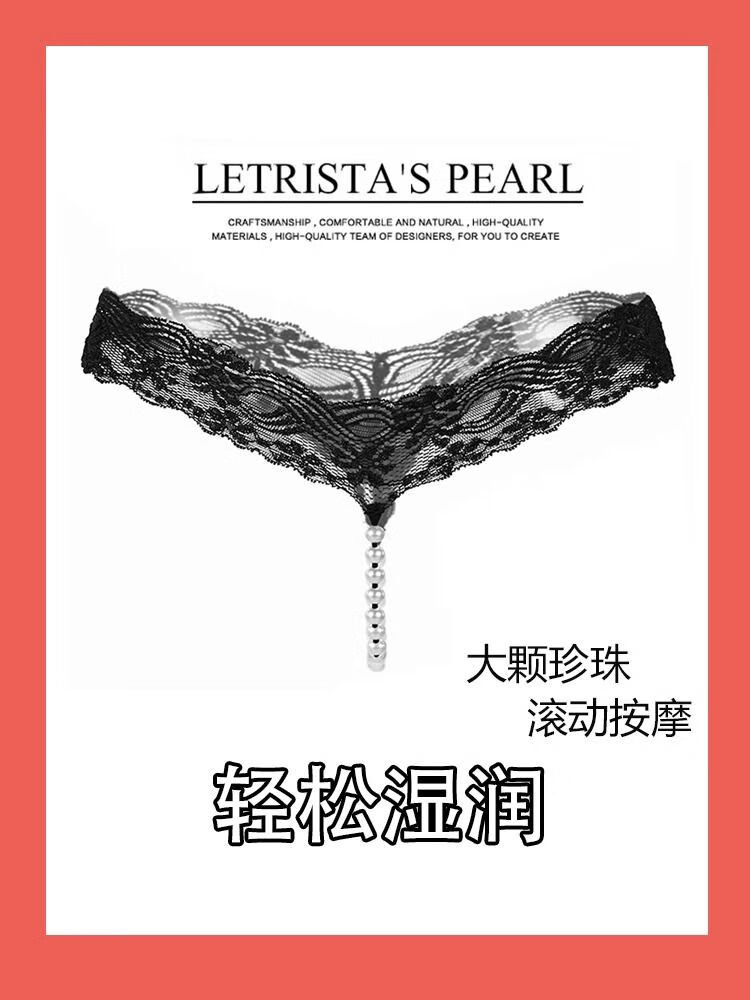 Sexy self-made underwear for women, transparent lace underwear, super hot vaginal intercourse, pearls for girls in thong panties, elastic pearl black, one size fits all