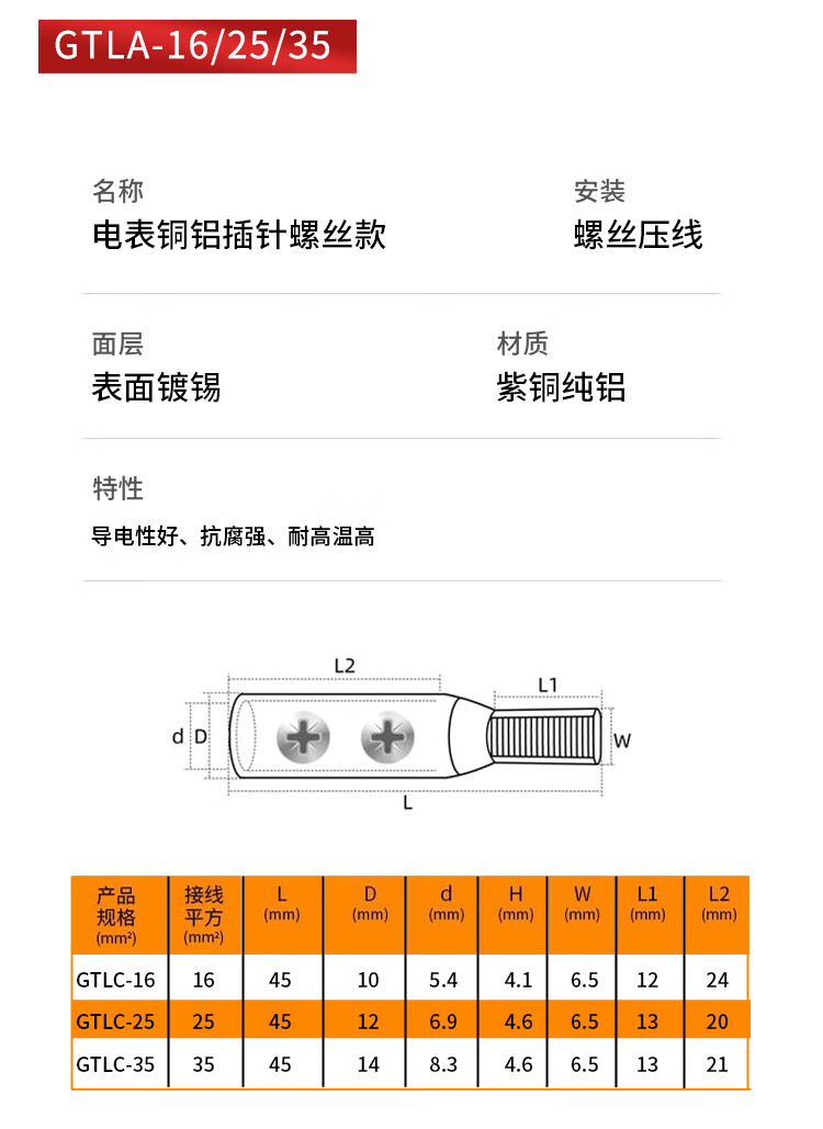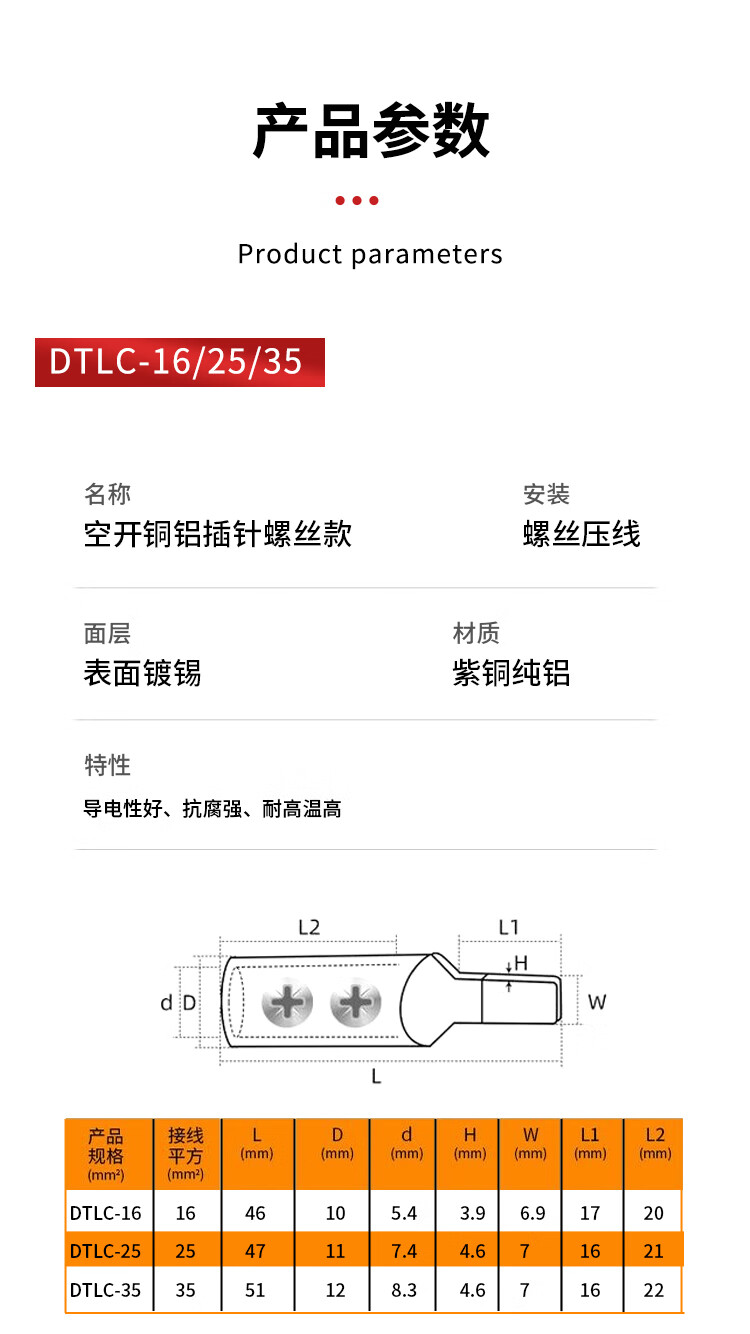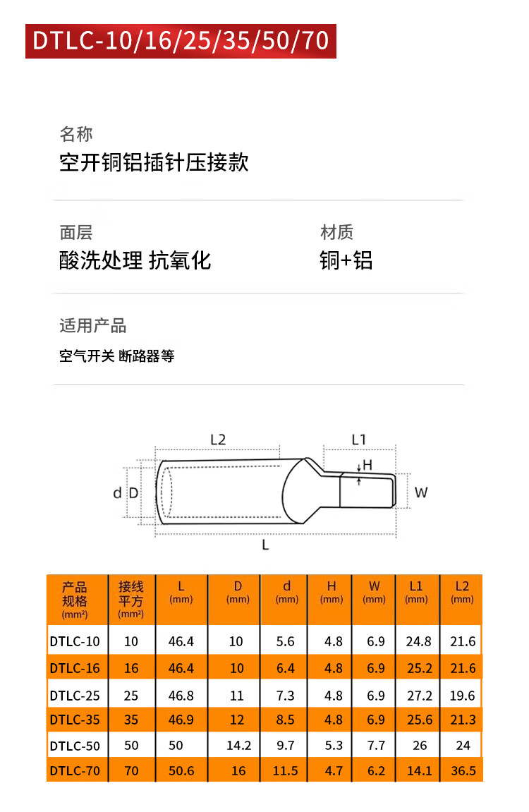 Zejie C45 air-opening circuit breaker electric meter special copper-aluminum connector transition connection aluminum wire nose pin terminal block air-opening copper-aluminum pin crimping model DTLC-10 No Specifications