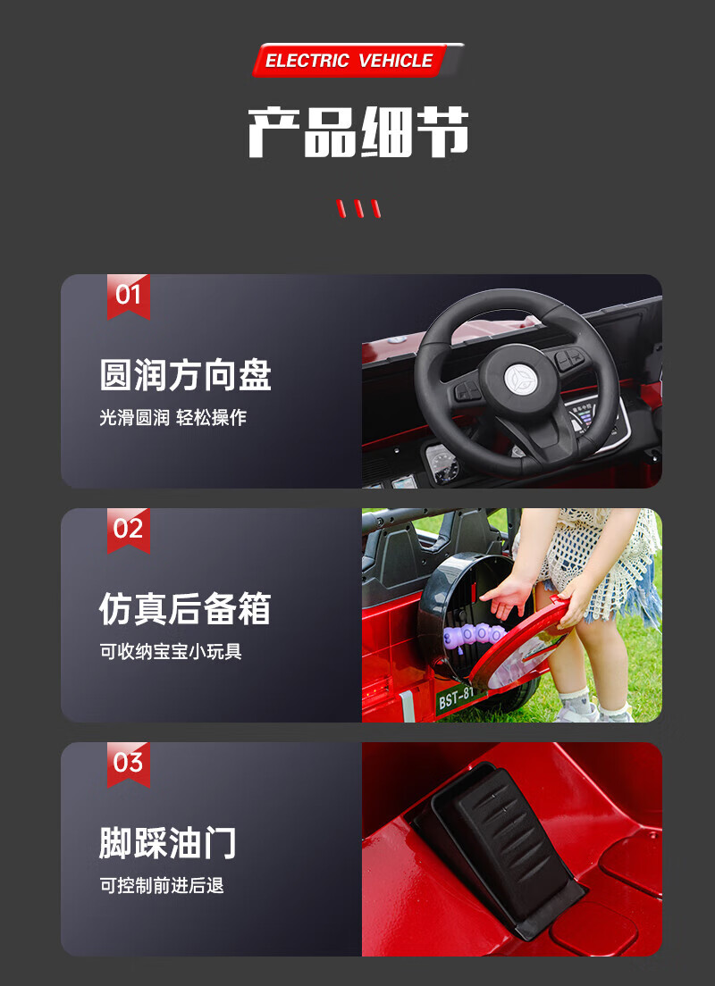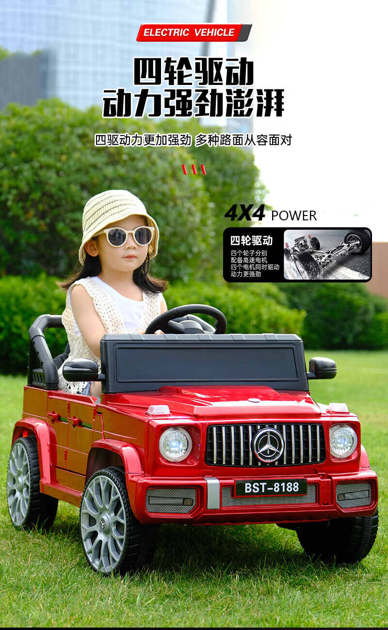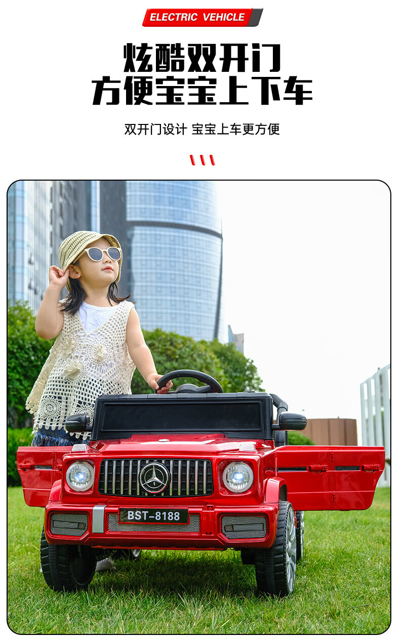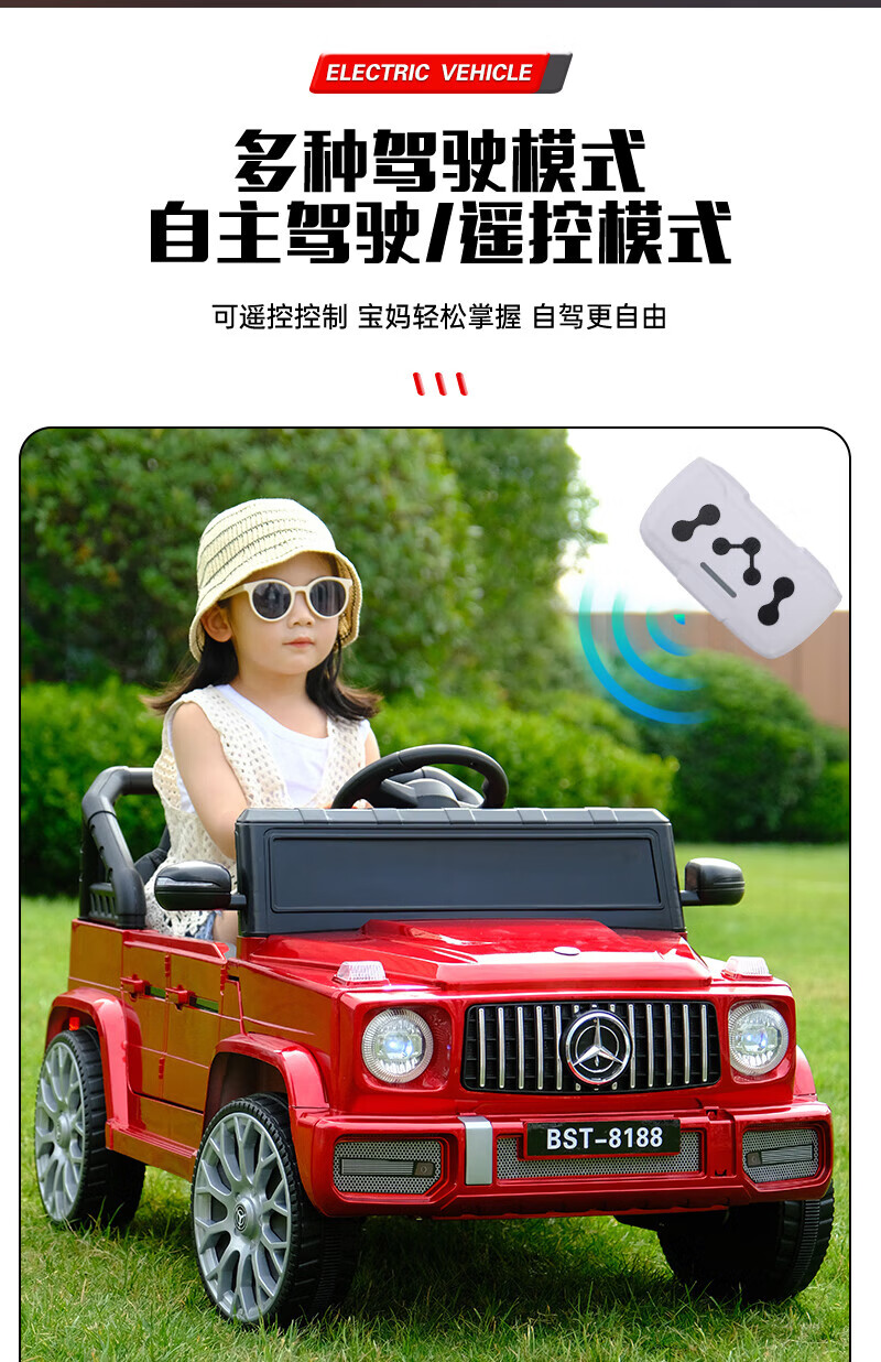 No Angel's new children's electric car four-wheeled off-road vehicle with remote control baby toy car men's and women's charging stroller black dual drive + remote control + early education + trunk