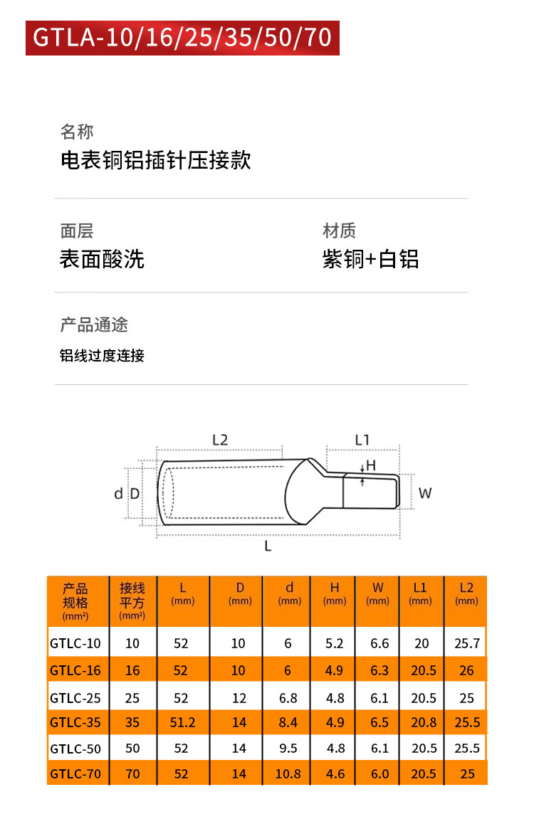 C45 circuit breaker special copper and aluminum connector transition connection aluminum wire nose pin terminal block air switch copper and aluminum pin crimping type DTLC-50 No Specifications